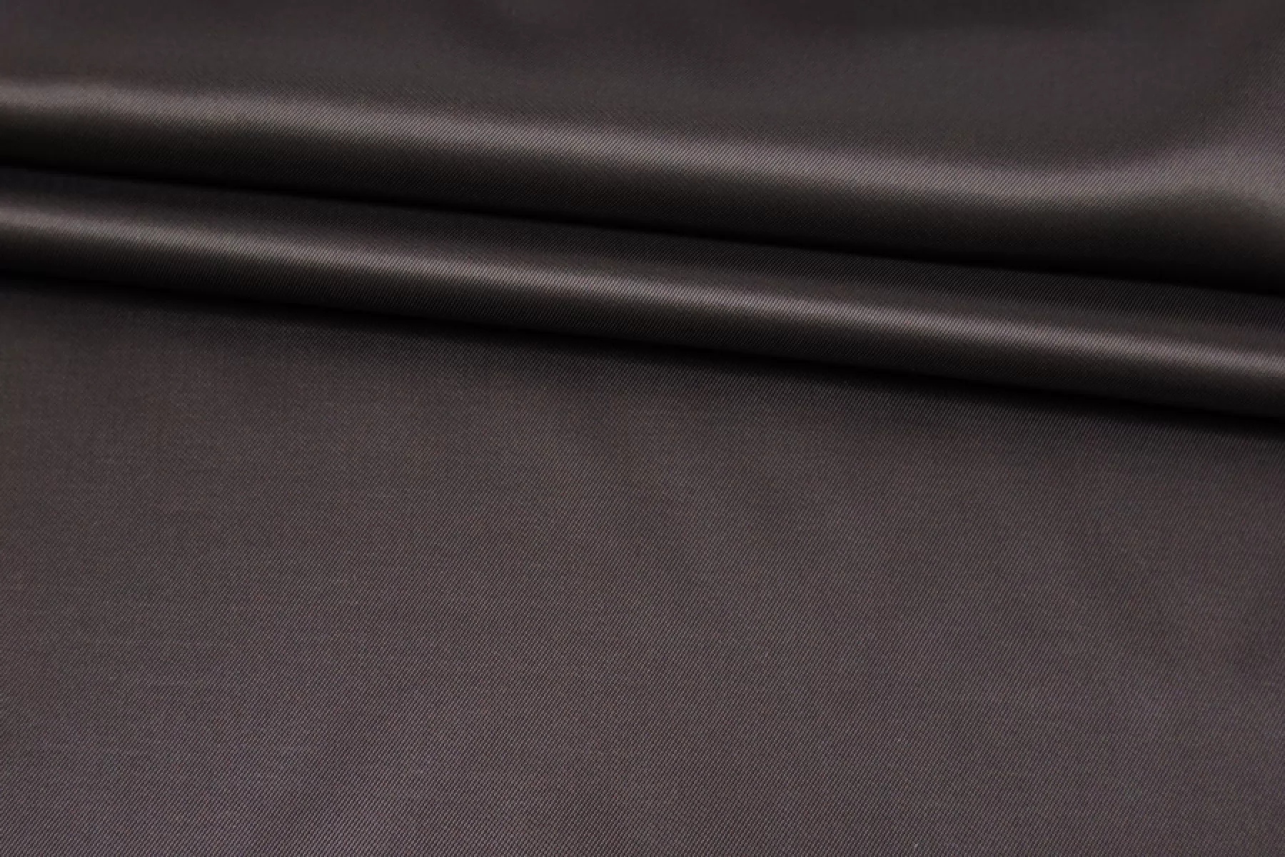 На отрезе уплотнение нити по всему отрезу! Подкладочная вискоза очень тёмного коричневого (холодного) цвета, саржевое плетение. Гладкая, тонкая, обладает красивым лоском. Не тянется. Мнется. Подойдет как подкладочный материал к костюмной группе, демисезонным пальто, курткам. Обязательно учитывайте возможную усадку 5-10%