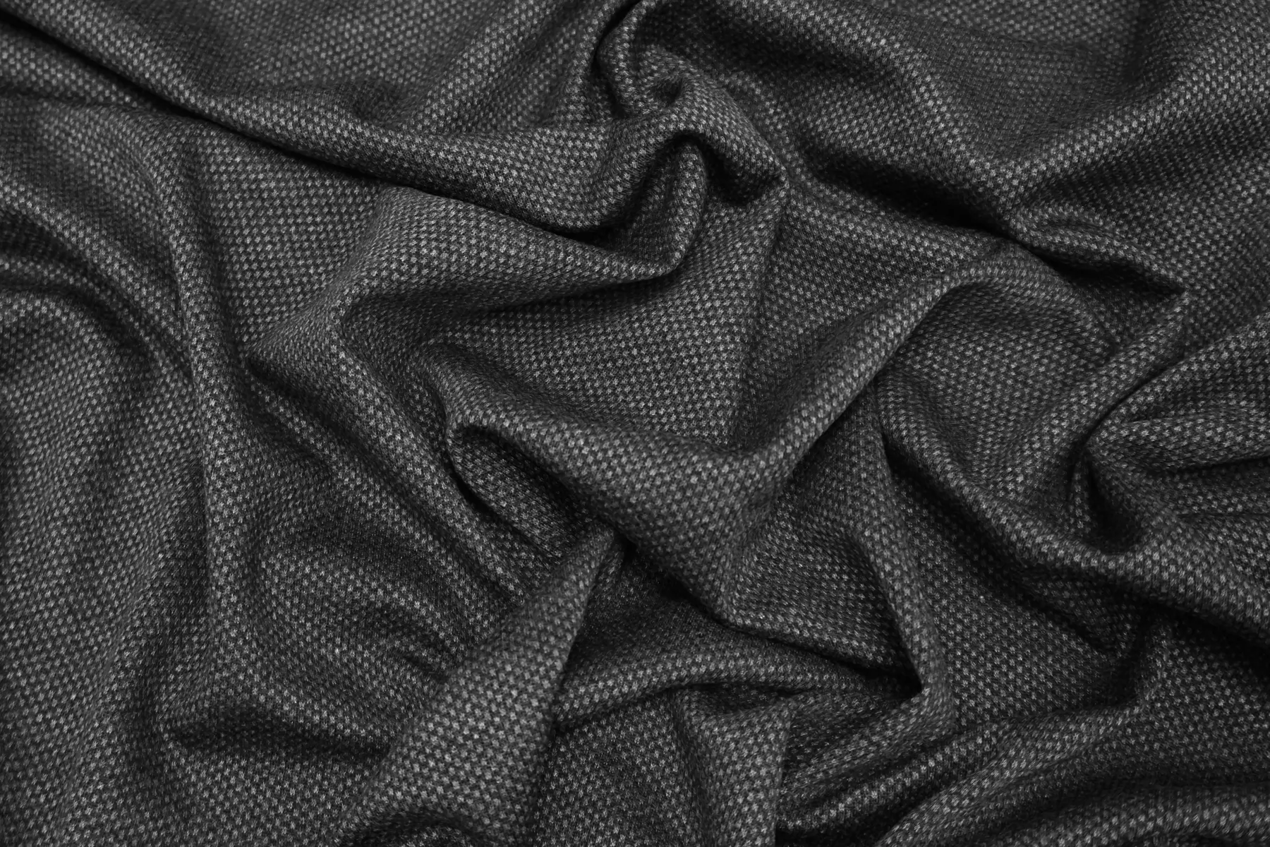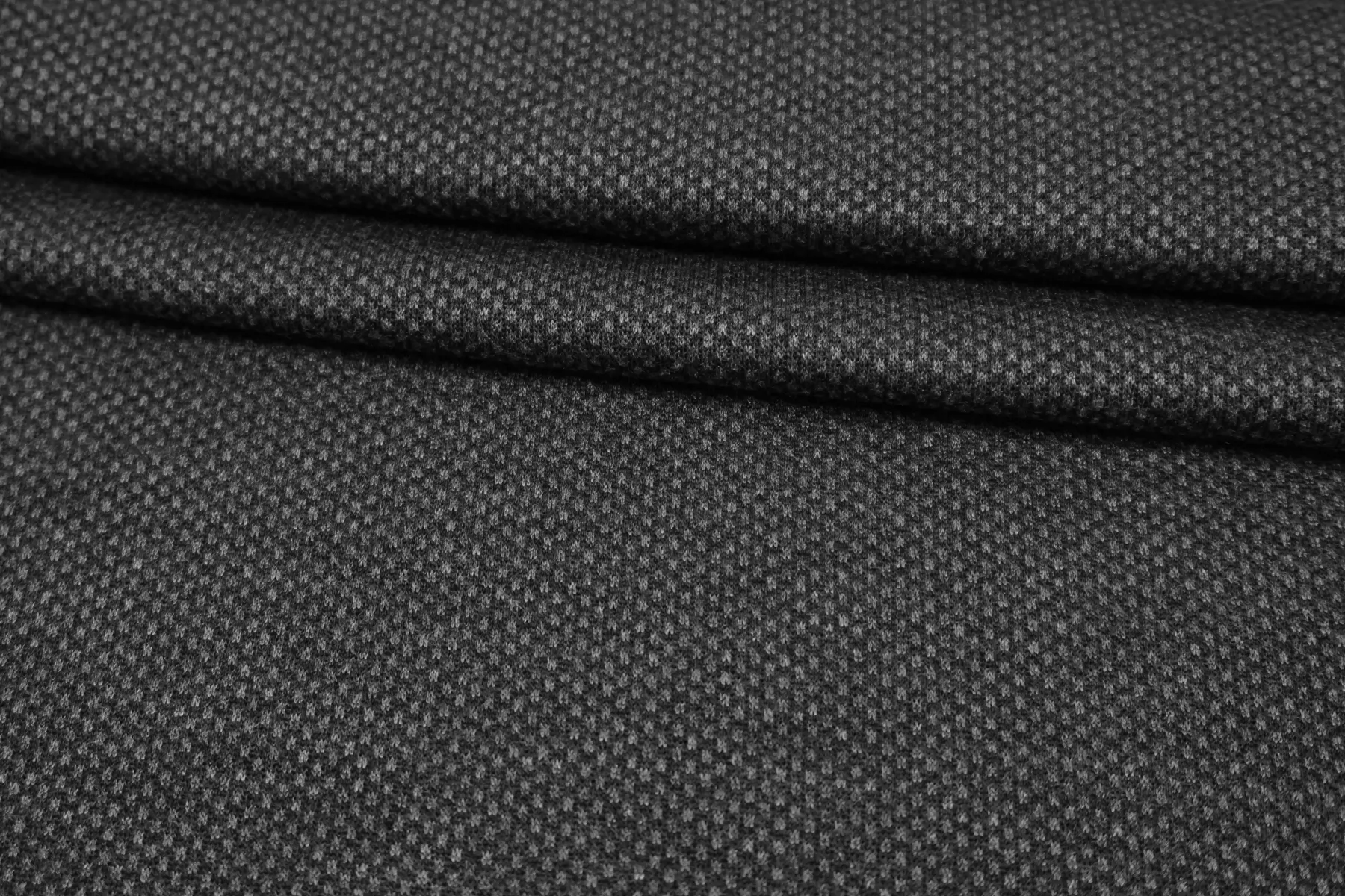 ЦЕНА УКАЗАНА ЗА ОТРЕЗ! (При заказе в метраже указывать 1) Прекрасный трикотаж-джерси из вирджинской шерсти и вискозы. Цвет тёмно-серый, мелкий ритмичный узор. Присутствует мягкий лоск. Тактильно приятный. Тянется. Немного просвечивает силуэт в один слой. Форму держит умеренно, пластичный. Подойдет для пошива тёплых платьев, комфортных брюк, юбок. Учитывайте возможную усадку. Уход деликатный.