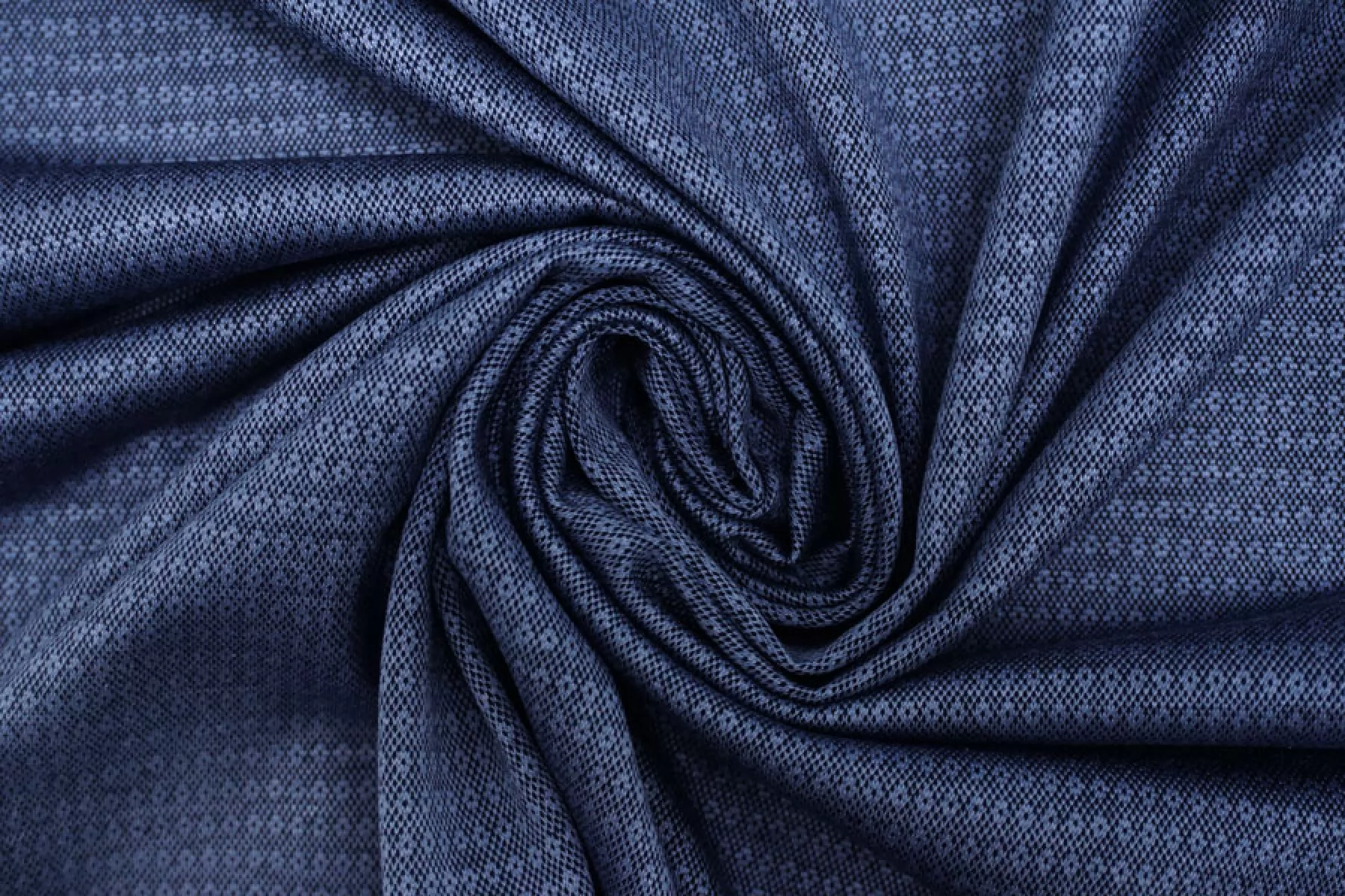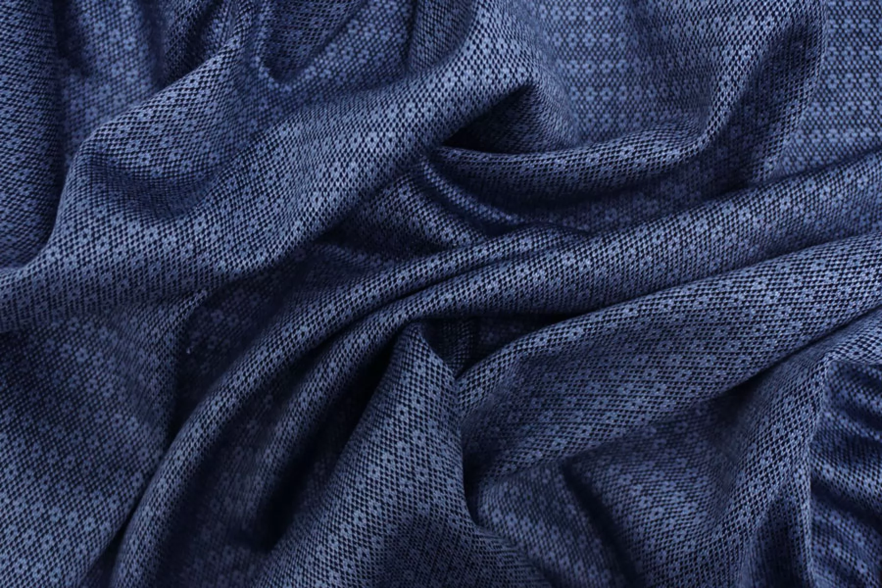 ЦЕНА УКАЗАНА ЗА ОТРЕЗ! (При заказе в метраже указывать 1) Прекрасный трикотаж из шёлка и хлопка, нити чёрного и сиреневато-голубого цвета. Интересный мелкий узор. С лёгким лоском, очень приятный тактильно, гладкий. Немного просвечивает силуэт в один слой. Хорошо тянется за счет плетения. Пластичный, форму не держит. Очень комфортный к телу. Можно использовать для пошива маек, футболок, платьев, туник. Уход деликатный.
