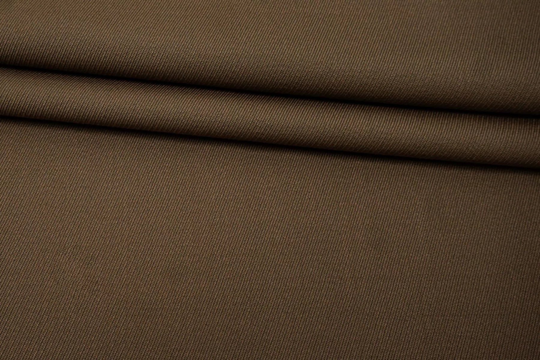 На отрезе белесые полосы от хранения! Костюмно-плательная шерсть качества virgin с добавлением кашемира выраженного диагонального плетения в коричневом цвете. Тактильно очень мягкая, с легким ворсом, пластичная, не толстая. Будет очень комфортна в носке. Не колется. Обладает очень легким приятным лоском. Не просвечивает. Слегка тянется плетение. Хорошо драпируется и немного держит форму. Прекрасный вариант на костюмные варианты, платья, юбки. Уход деликатный.