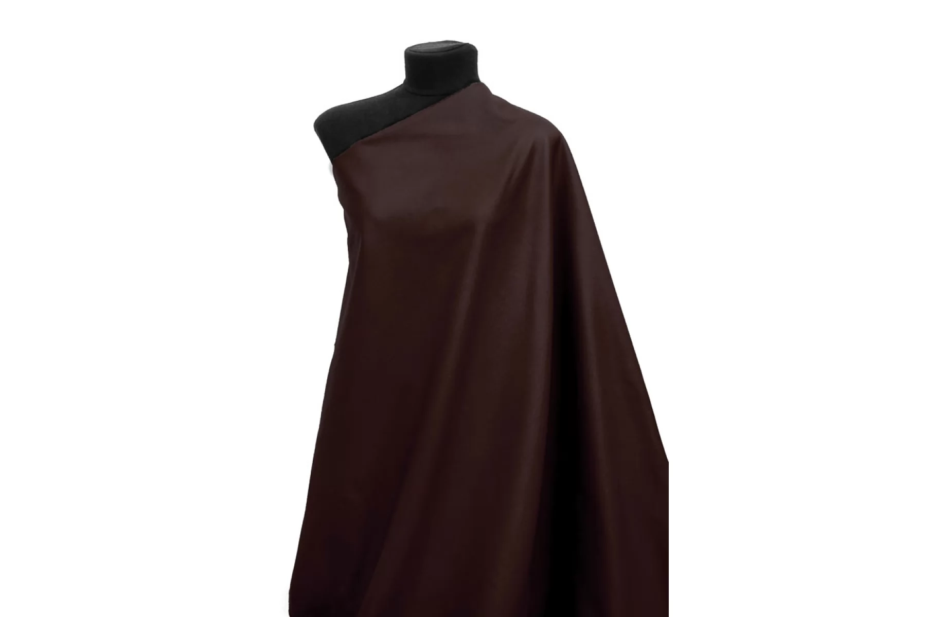 ЦЕНА УКАЗАНА ЗА ОТРЕЗ! (При заказе в метраже указывать 1) Шикарный хлопок в оттенке горький шоколад с накатом под экокожу. Плетение диагональное. Тянется по нити основы!! Гладкий и приятный наощупь. Хорошо держит форму Сминается. Не просвечивает. Тонкий и пластичный. Отличный вариант на костюмы, платья, брюки.