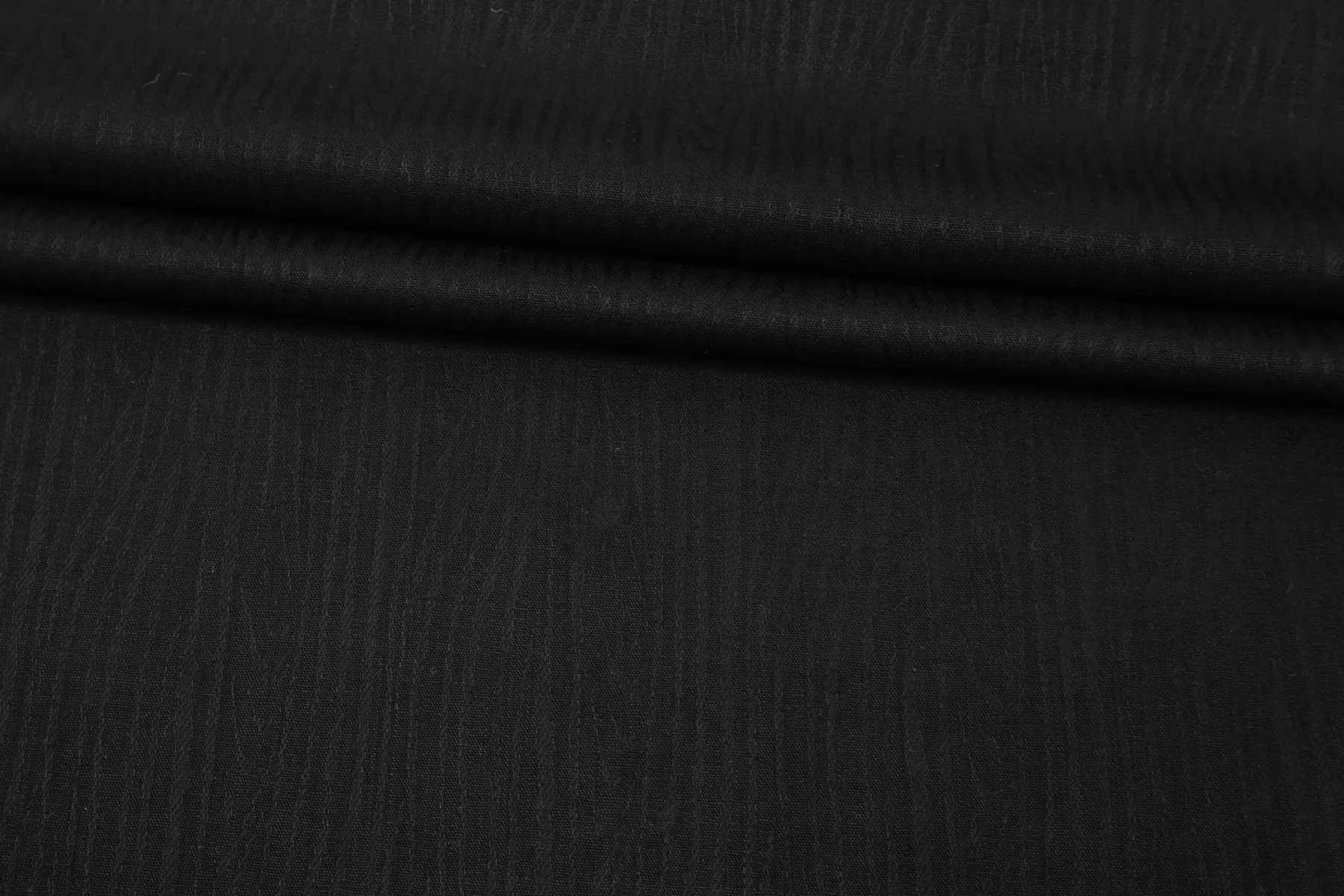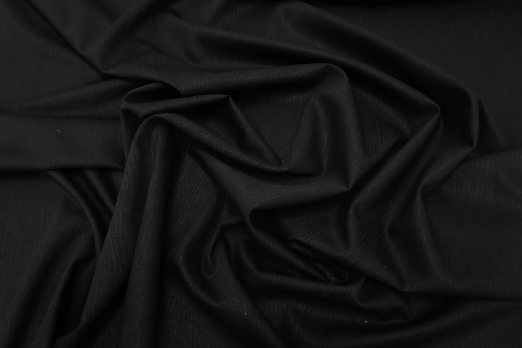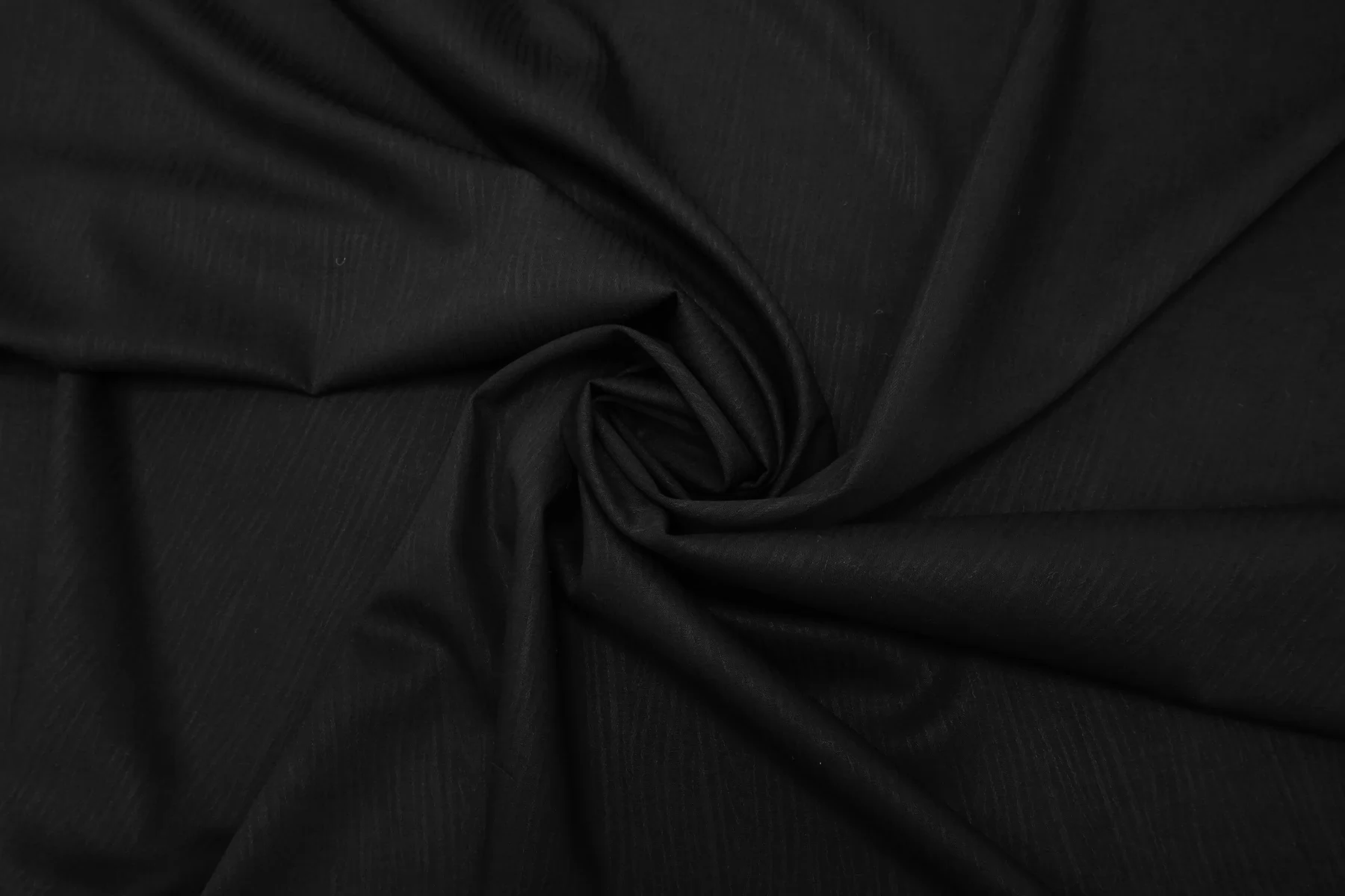 ЦЕНА УКАЗАНА ЗА ОТРЕЗ! (При заказе в метраже указывать 1) Костюмно-плательная шерсть в чёрном цвете, с интересным фактурным узором (чередование матовых нитей и нитей с лёгким лоском, напоминает узор коры). Материал приятный и гладкий тактильно, слегка сухой. Слегка просвечивает в один слой, в изделии заметно не будет. Немного тянется благодаря плетению. Не мнется. Тонкая, но плотная ткань. С хорошей пластикой, красиво драпируется. Форму не держит. Шьем зимние рубашки, платья, юбки, брюки. Уход деликатный.