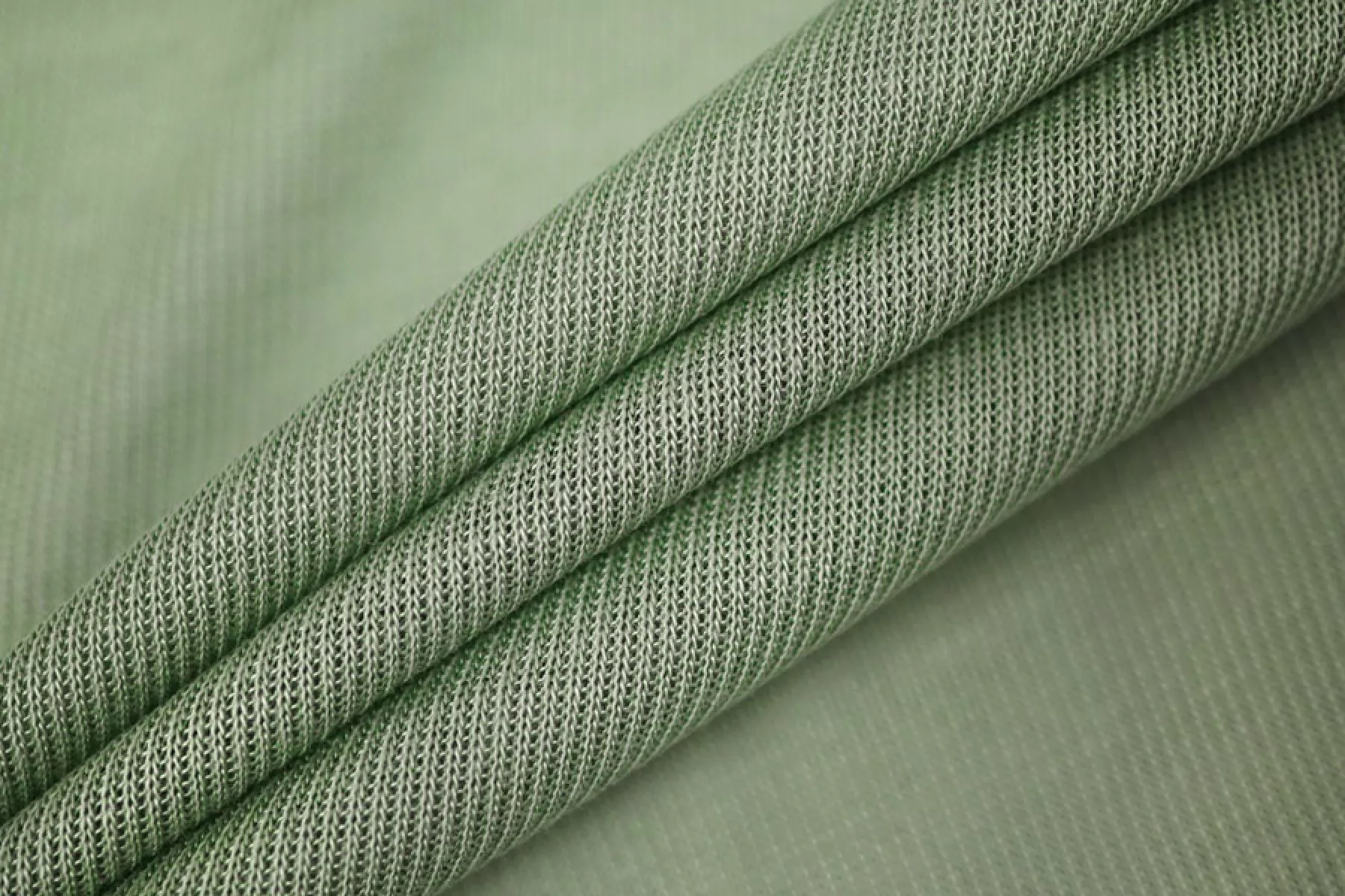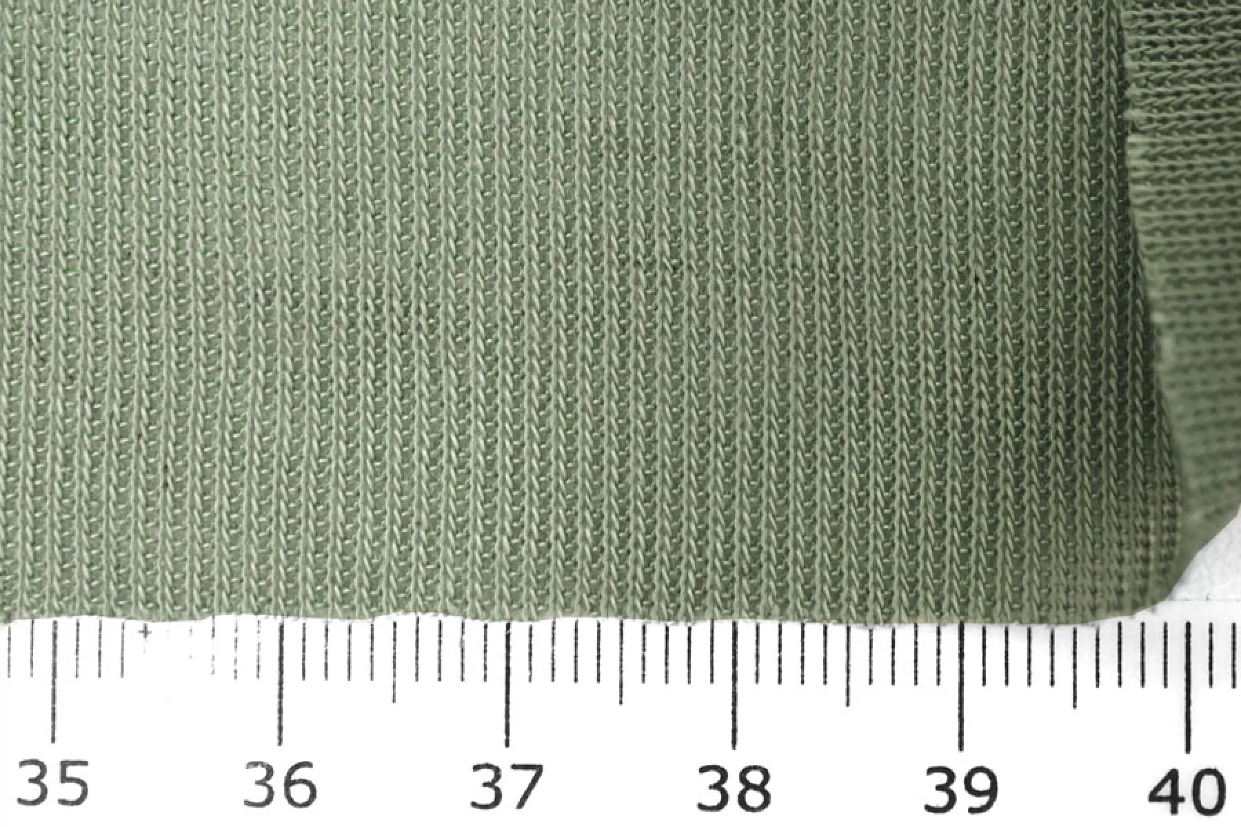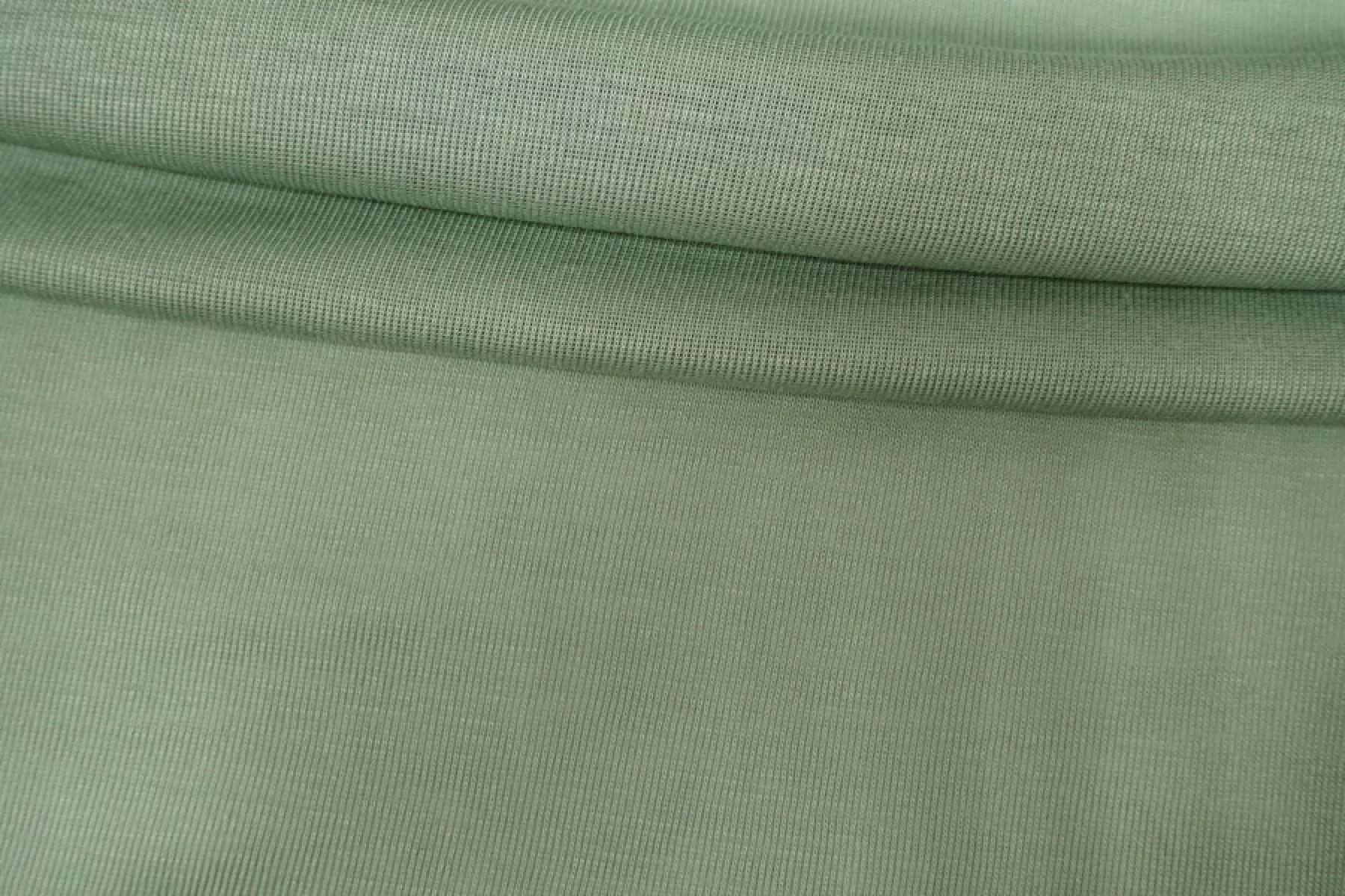 На отрезе в начале следы загрязнения! Трикотаж, вязка кашкорсе, оттенка шалфей. Эластичный, пластичный. Тонкий, гладкий, мягкий. С красивым блеском. Хорошо тянется и при растяжении просвечивает. Подойдет для пошива майки или топа, манжет, подвязов.