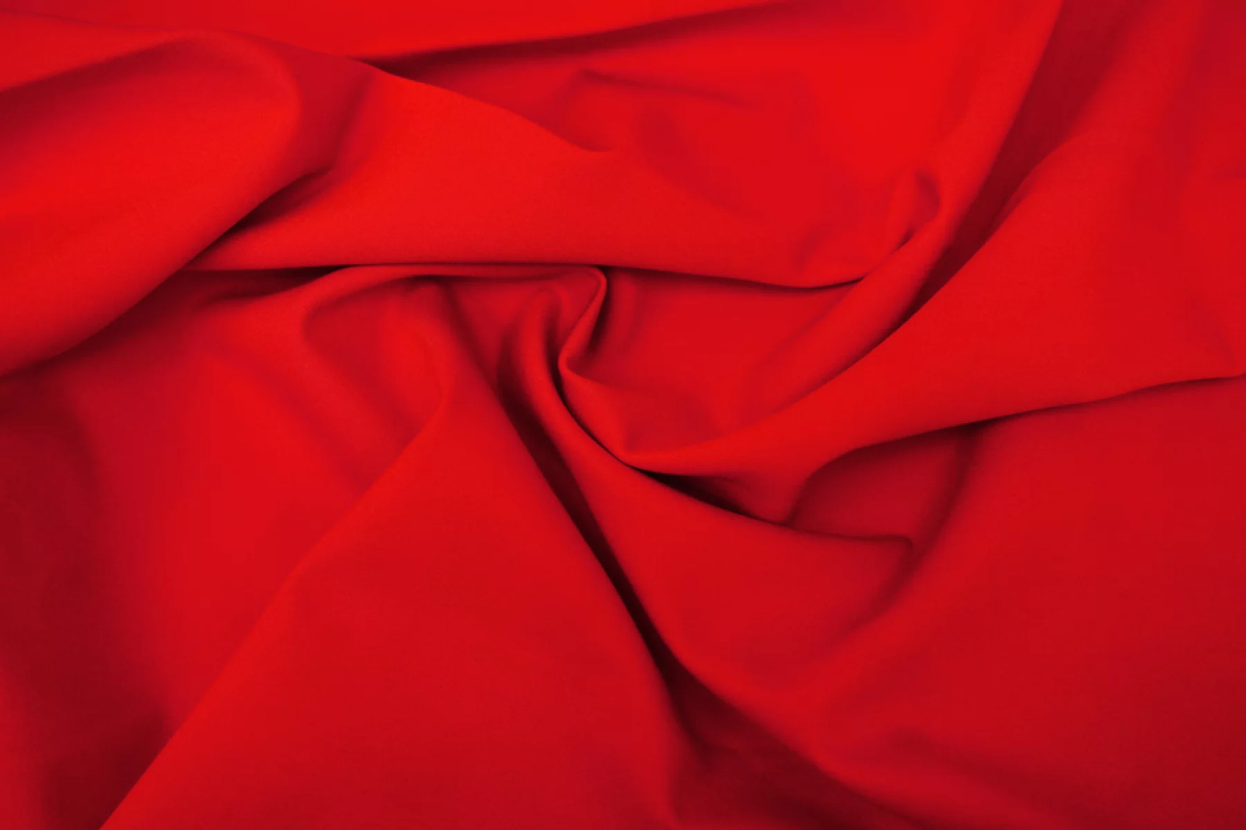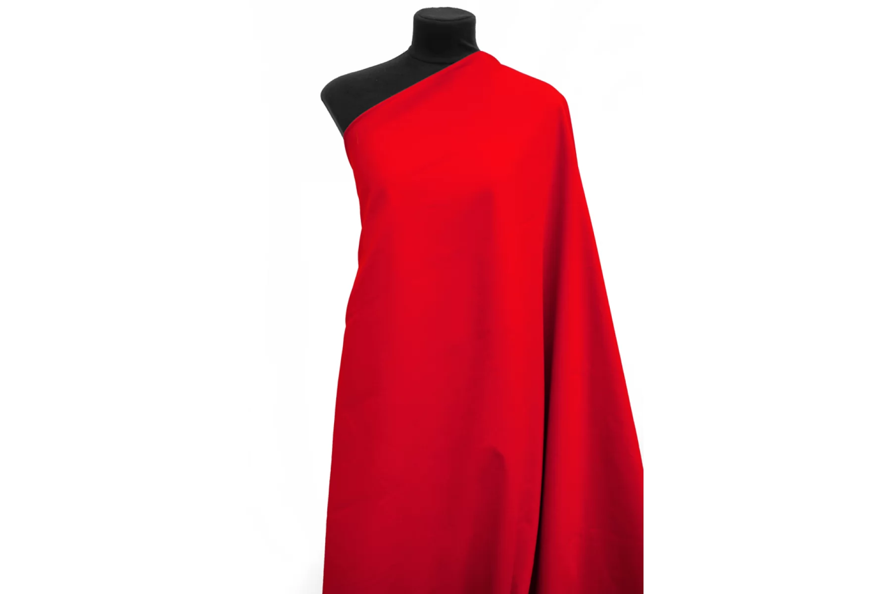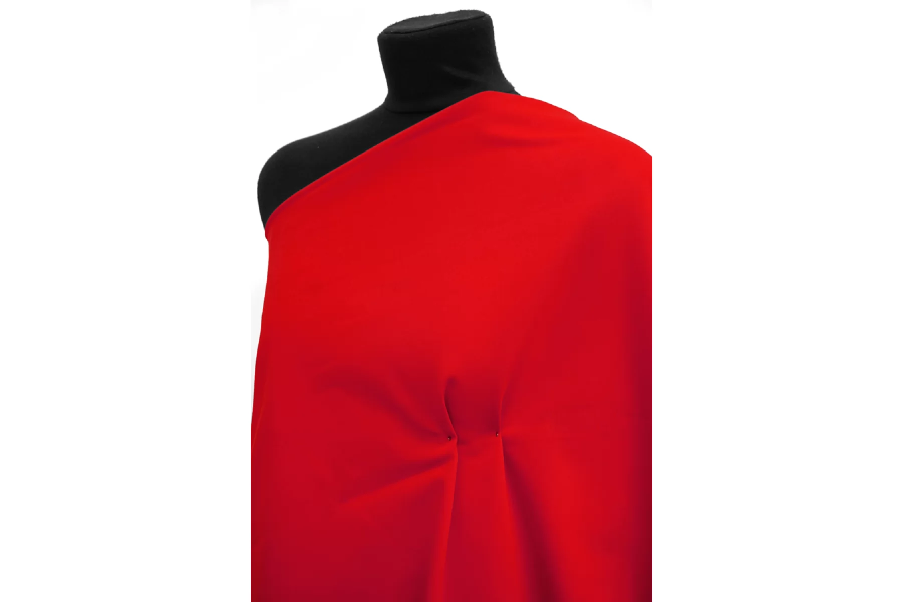 На отрезе мелкие черные точки! Очень яркая позиция! Костюмный поликоттон в алом оттенке. Очень приятный, мягкий и пластичный, гладкий. Достаточно толстенький. Хорошо и упруго тянется за счет эластана. Не просвечивает. Немного мнется. Хорошо драпируется и неплохо держит форму. Отлично подойдет для костюмных вариантов, жакетов мягкой формы, платья, юбки, брюк и не только.