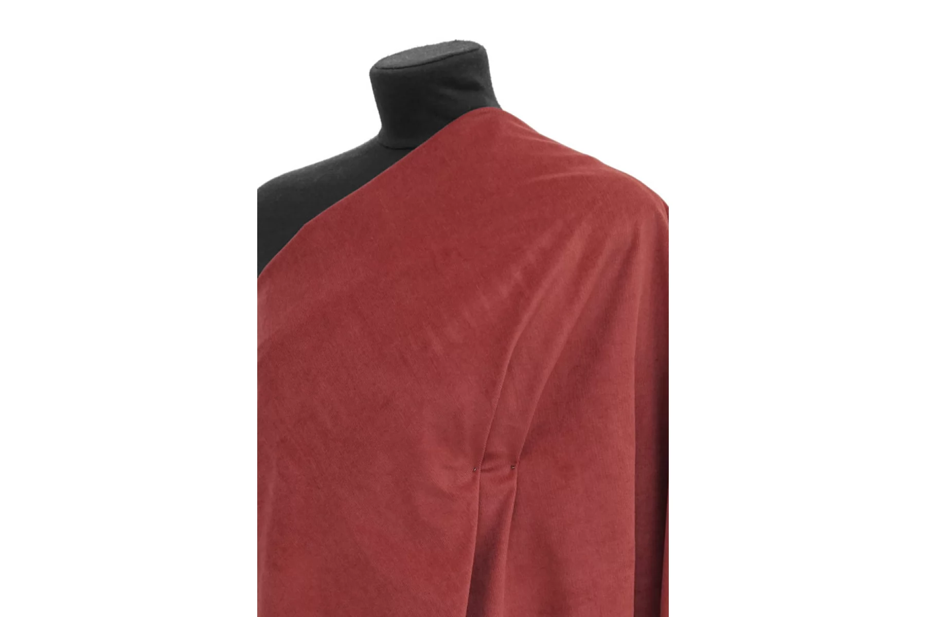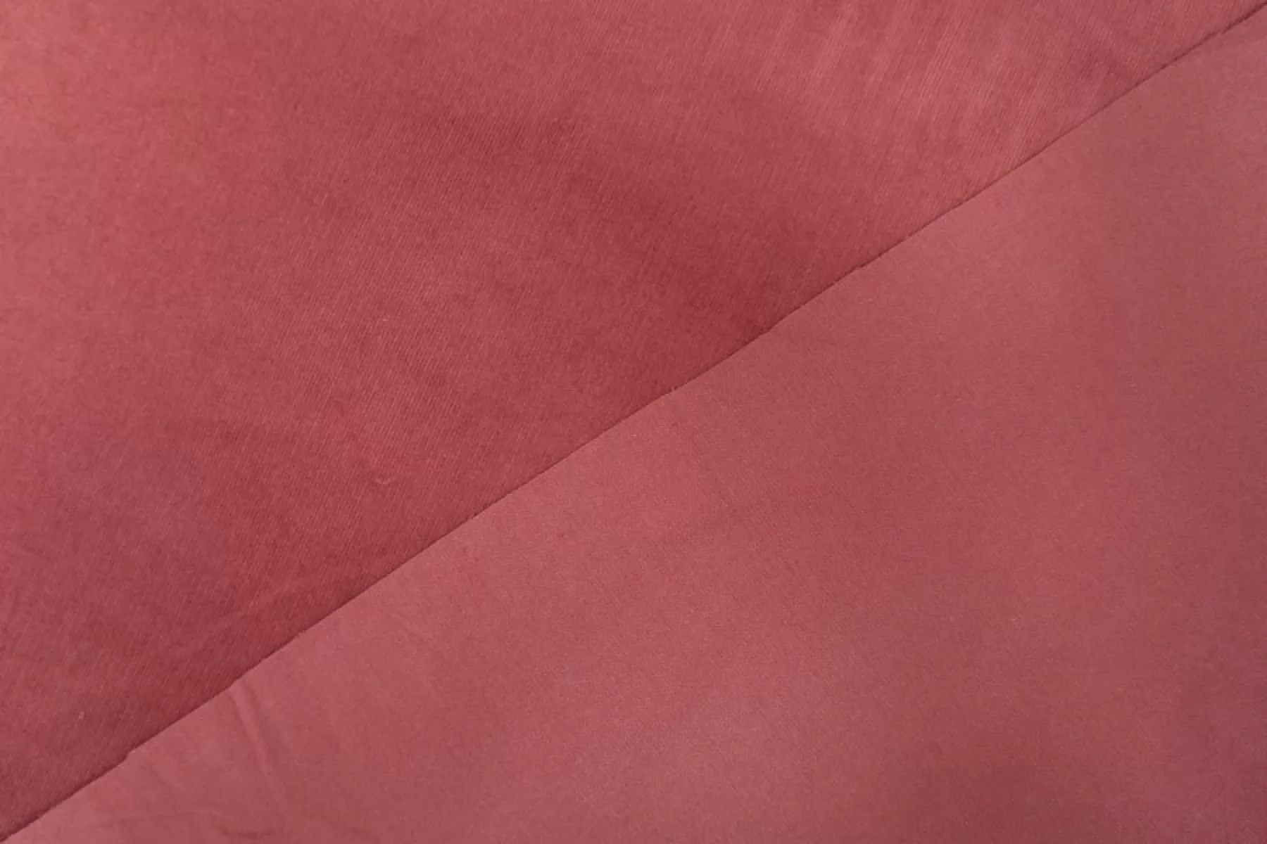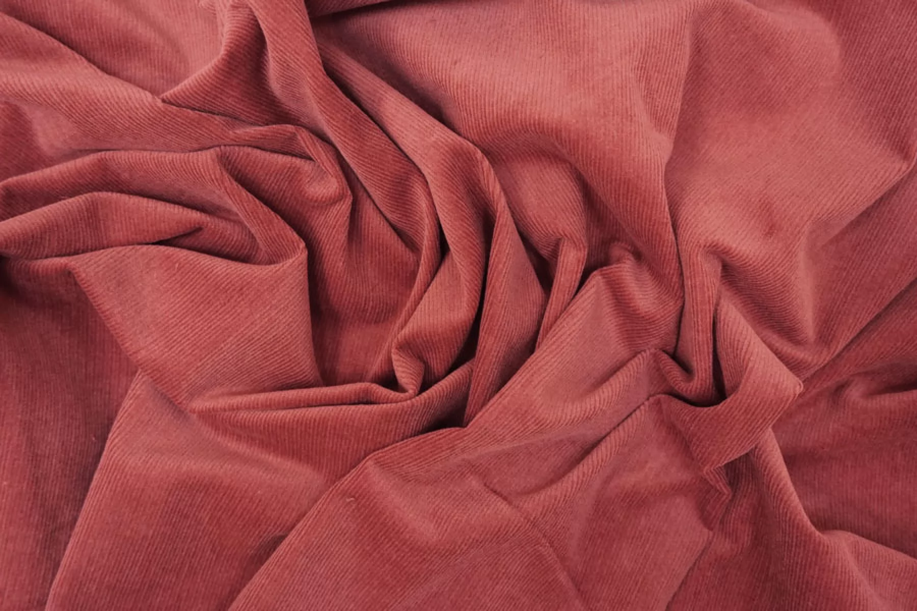 ЦЕНА УКАЗАНА ЗА ОТРЕЗ! (При заказе в метраже указывать 1) Шикарный костюмно-плательный микровельвет брусничного оттенка. Ширина рубчиков до1 мм. Материал плотный, но тонкий. Приятный и мягкий тактильно, хорошо тянется. Пластичный. Практически не мнется. Хорошо драпируется и неплохо держит форму. Отличный вариант для пошива костюма, шорт, юбки, мягкого жакета, рубашки. Кроить в одном направлении.
