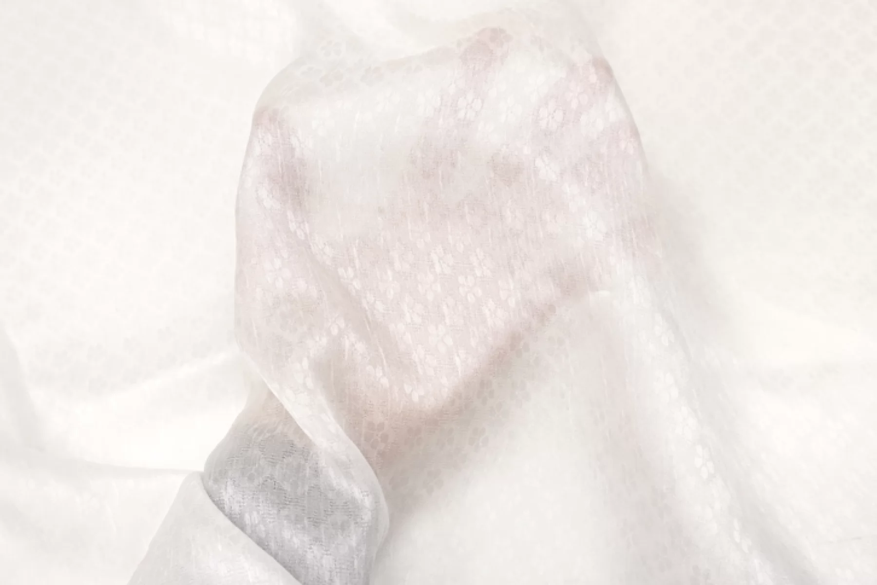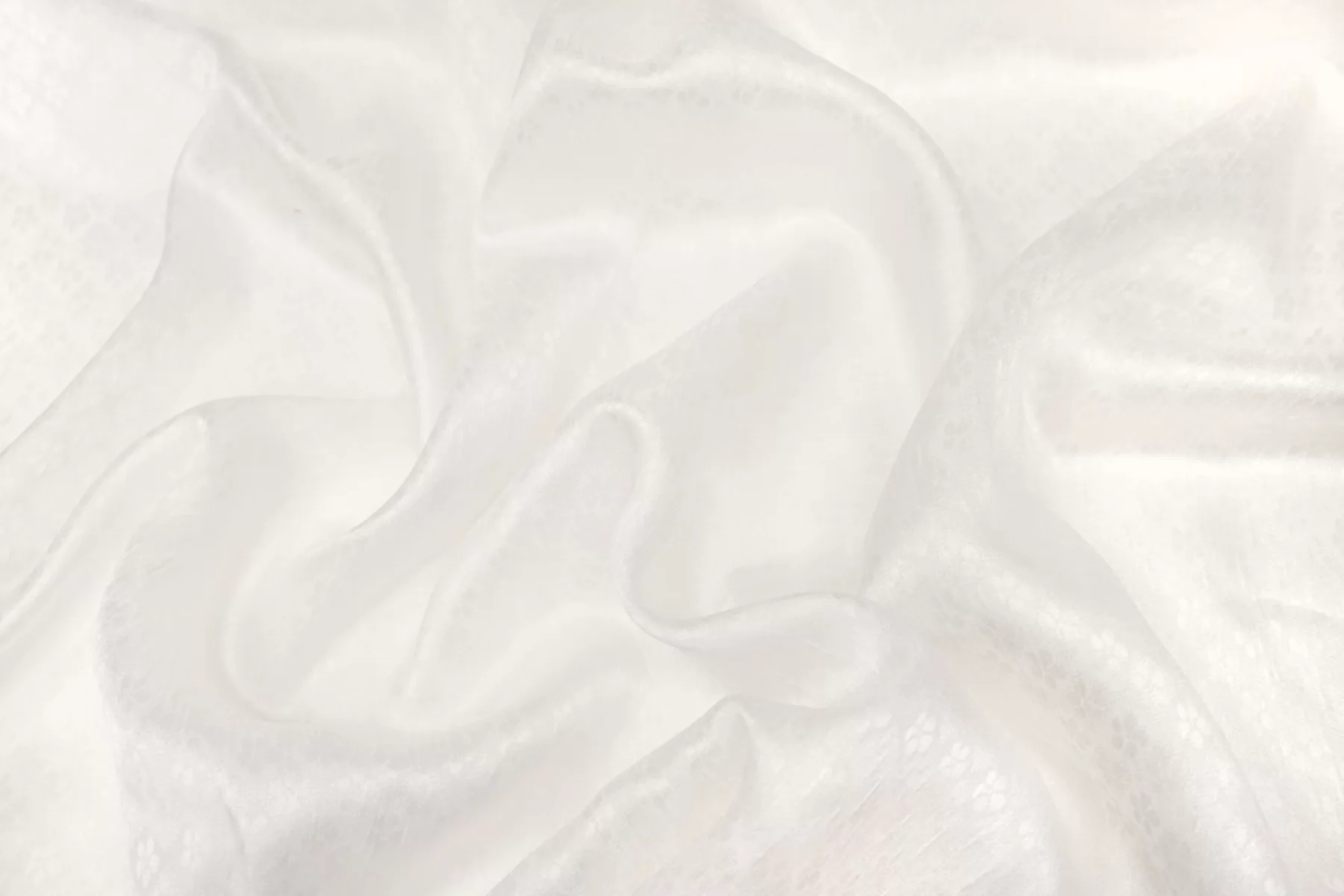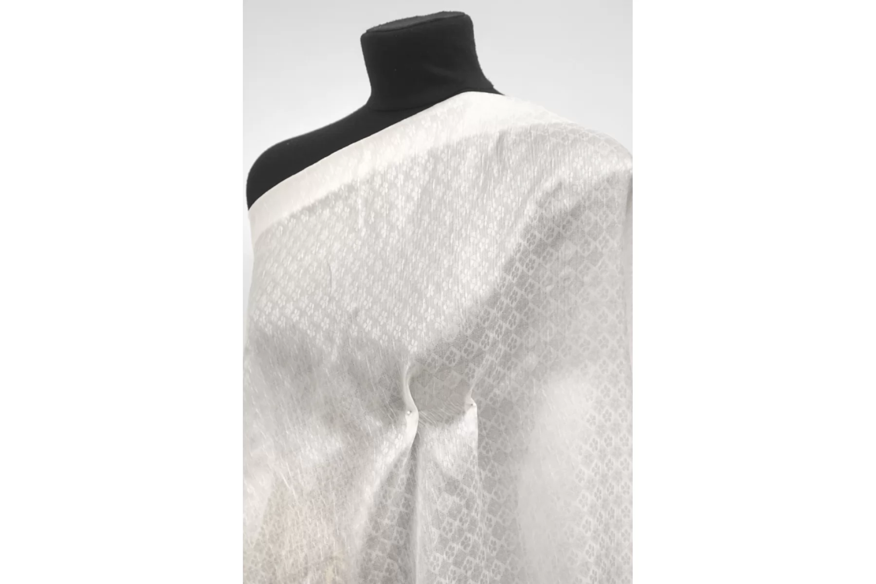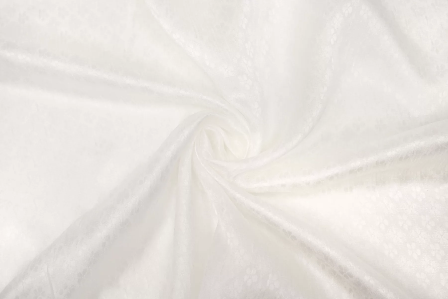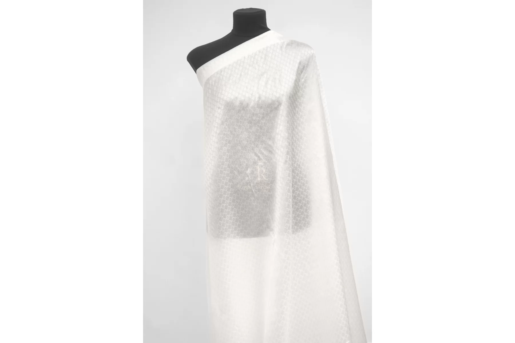 ЦЕНА УКАЗАНА ЗА ОТРЕЗ! (При заказе в метраже указывать 1) Белый жаккардовый шелк в мелкий цветочный орнамент от Stella McCartney. Материал гладкий, тонкий, полупрозрачный. Не тянется. Сминается, но не сильно. Обладает легким приятным блеском. Идеальный вариант на блузки и платья, даже подойдет на свадебные варианты. Уход деликатный.
