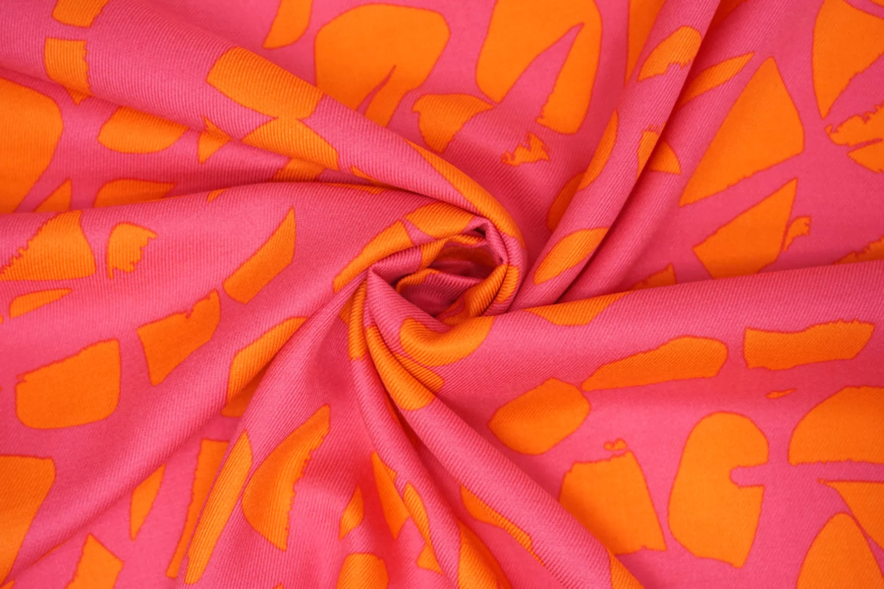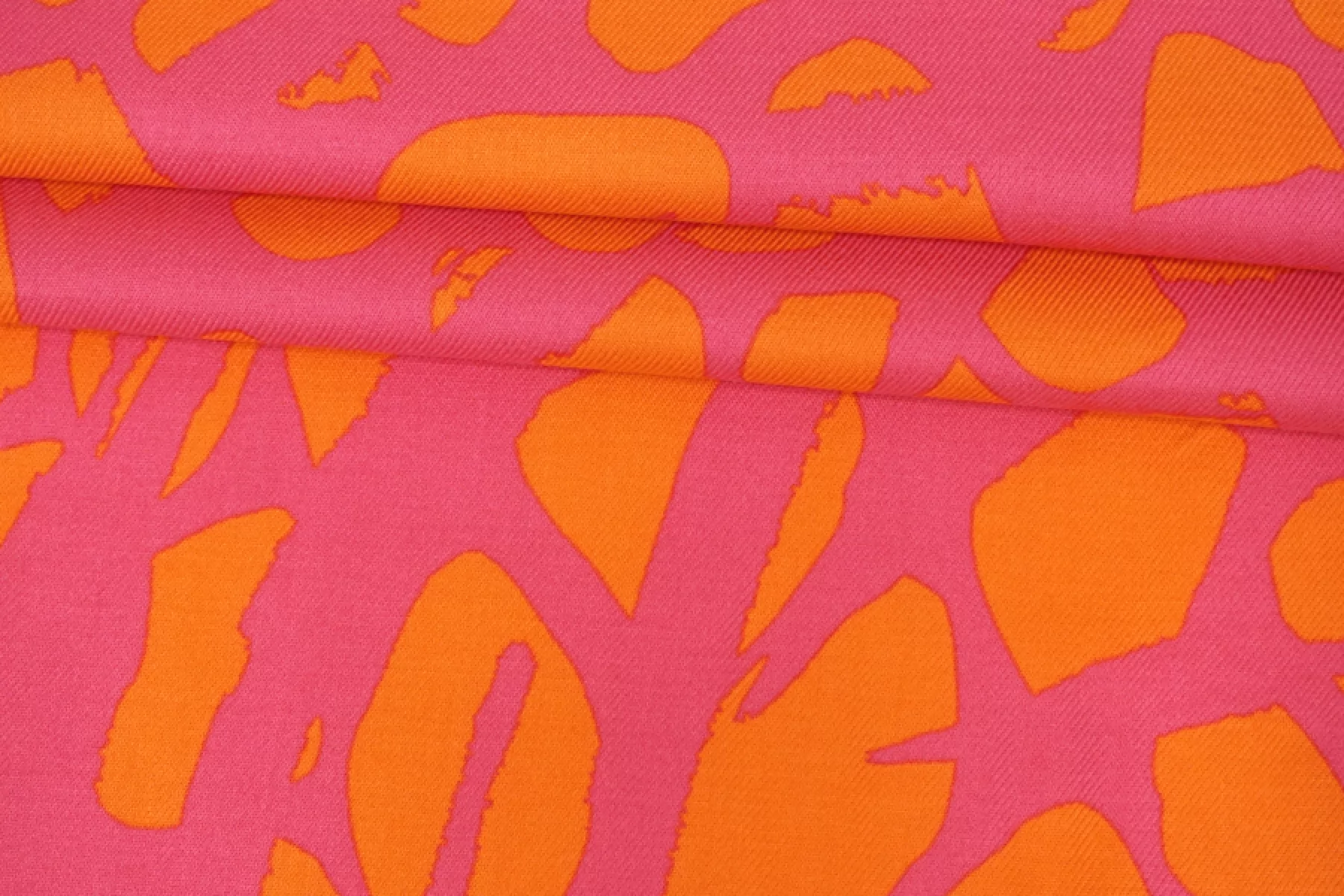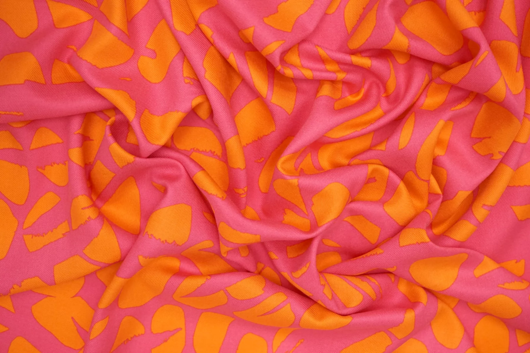 ЦЕНА УКАЗАНА ЗА ОТРЕЗ! (При заказе в метраже указывать ) Плательно-блузочная вискоза, твил, красивого и насыщенного сочетания оттенков розового и оранжевого в абстрактном принте. Приятная, мягкая, пластична. Слегка заметна тень силуэта, если смотреть прямо на просвет, не тянется, немного мнется. Красива в складках. Прекрасный вариант на платья, юбки, блузки и одежду в пижамном стиле. Выглядит ярко! Обязательно учитывайте усадку 5-10%