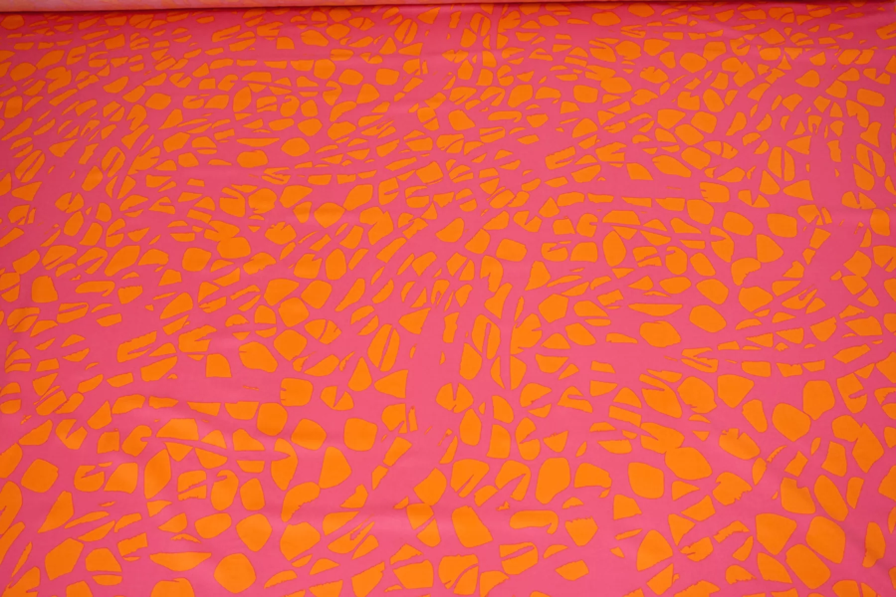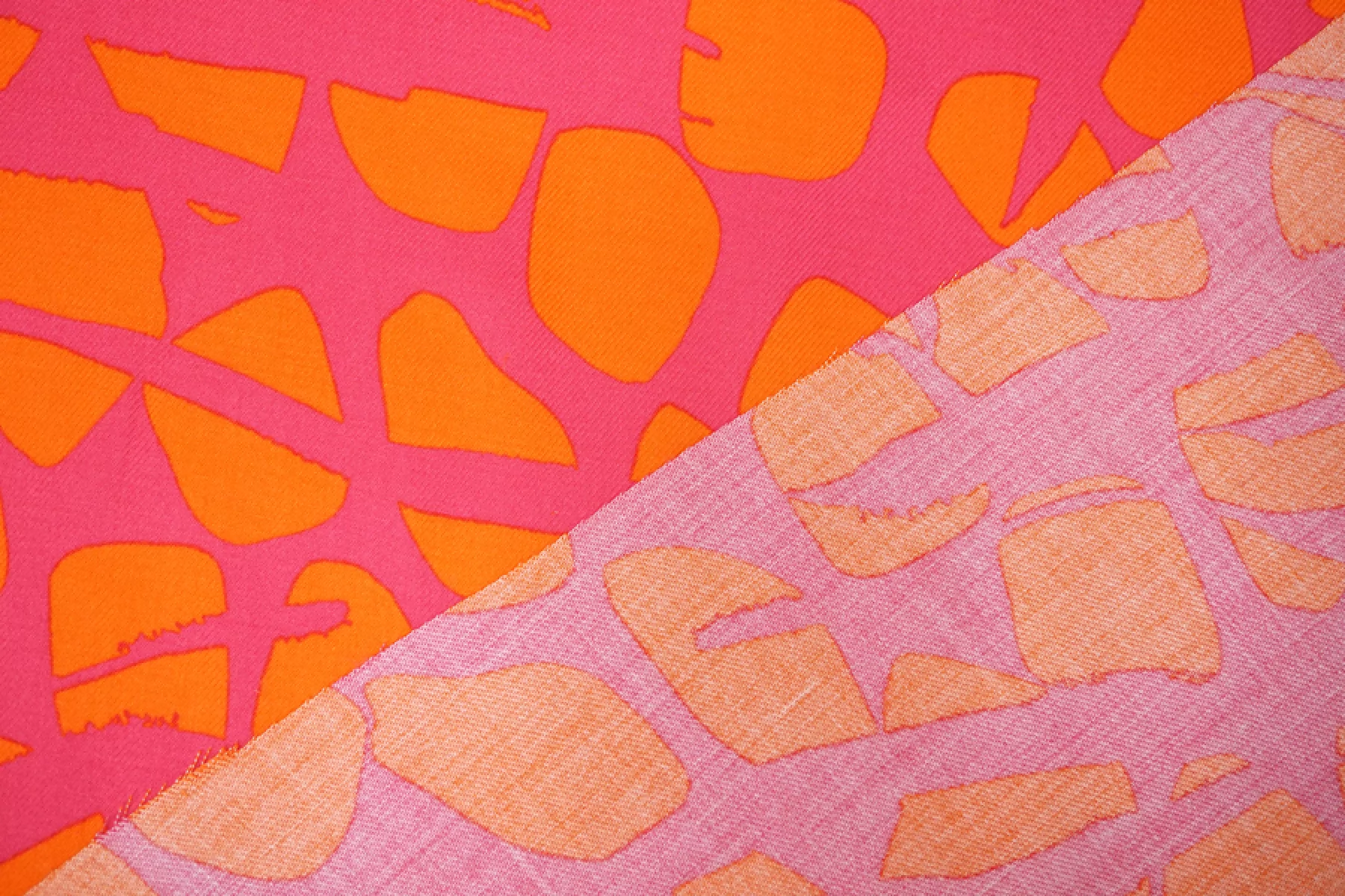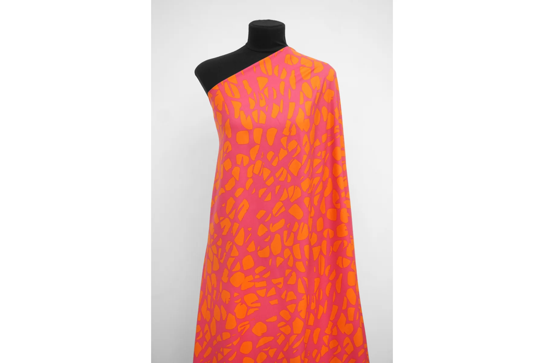 ЦЕНА УКАЗАНА ЗА ОТРЕЗ! (При заказе в метраже указывать ) Плательно-блузочная вискоза, твил, красивого и насыщенного сочетания оттенков розового и оранжевого в абстрактном принте. Приятная, мягкая, пластична. Слегка заметна тень силуэта, если смотреть прямо на просвет, не тянется, немного мнется. Красива в складках. Прекрасный вариант на платья, юбки, блузки и одежду в пижамном стиле. Выглядит ярко! Обязательно учитывайте усадку 5-10%