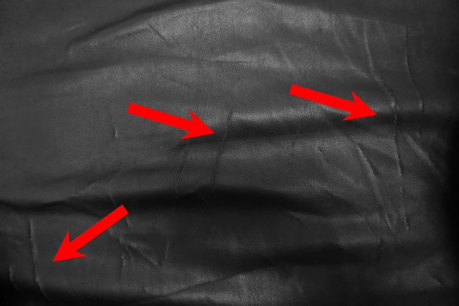 ВНИМАНИЕ!! От взаимодействия появляются трещины на коже см. фото. Можно использовать замшевую сторону для изготовления аксессуаров и декора. Очень интересная и шикарная позиция - двусторонняя экокожа с замшей в классическом черном цвете. Сторона с экокожей, гладкая, скользящая, с красивым блеском, замшевая сторона - мягкая. Слои склеены между собой, разделяются с трудом и дефермируются. Материал очень пластичный и эластичный. Тянется прям очень хорошо. Форму держит, а также очень красив в складках. Не просвечивает. Слегка мнется, но восстанавливается. Отличный вариант на кожанки, платья, брюки, юбки, костюмы.
