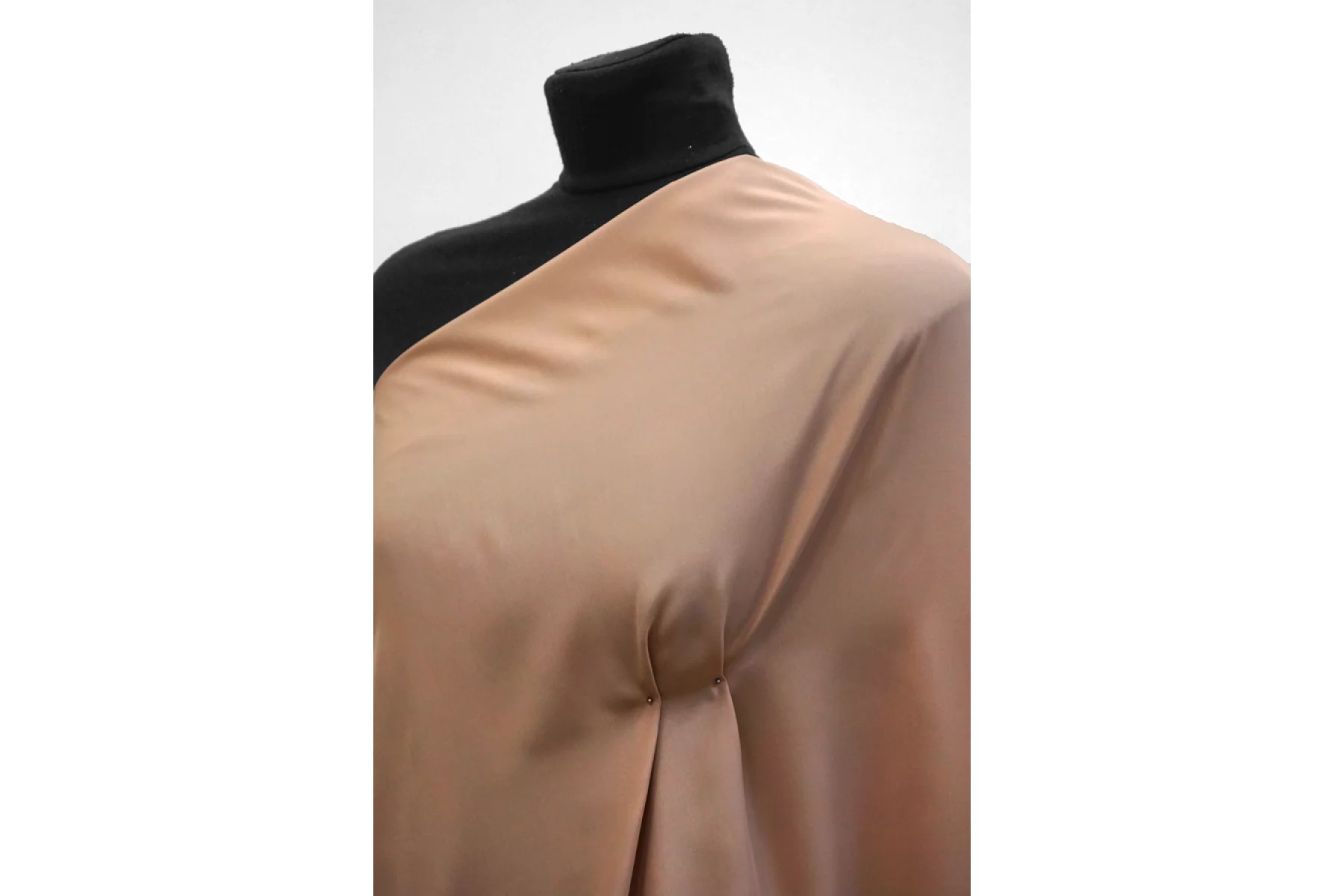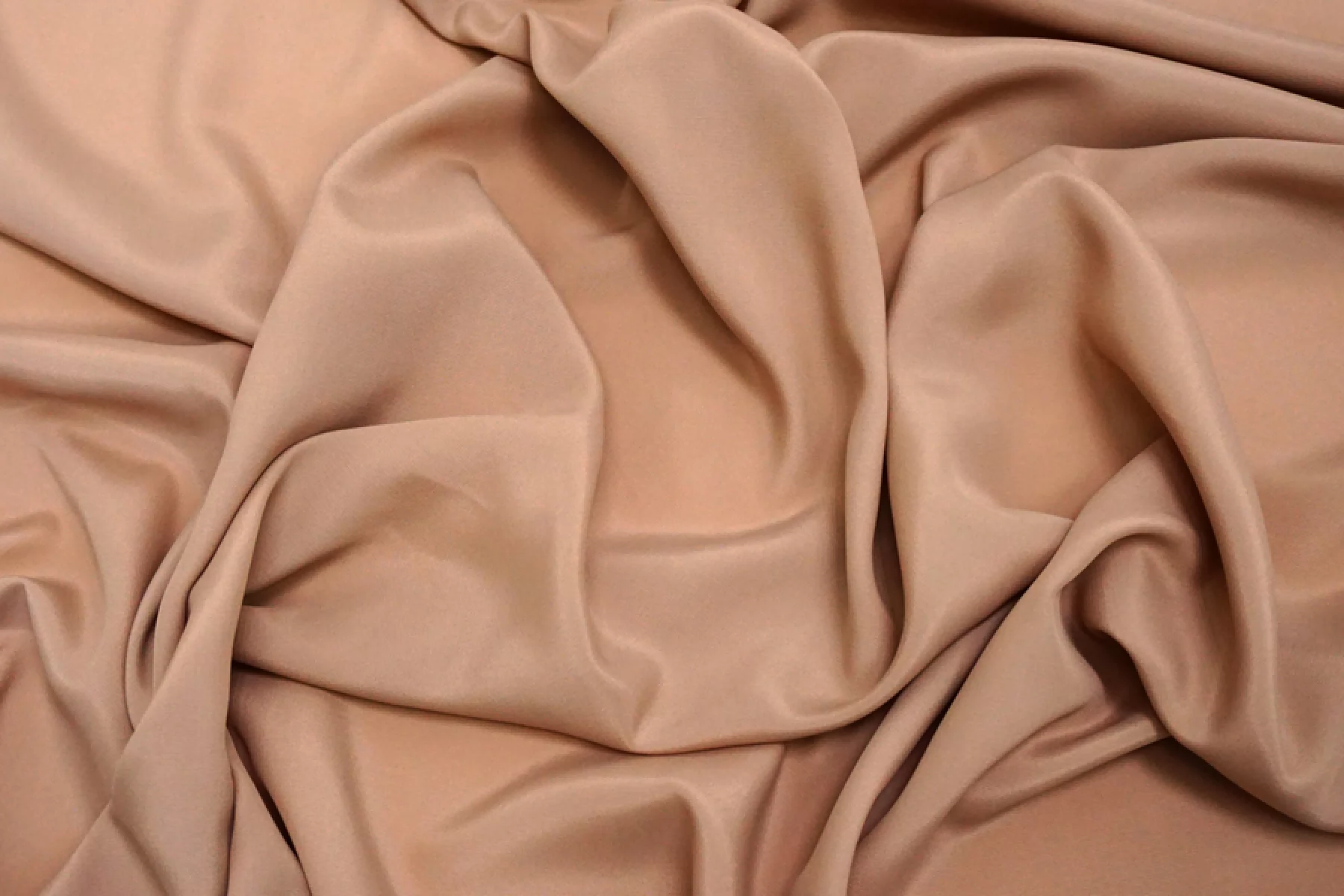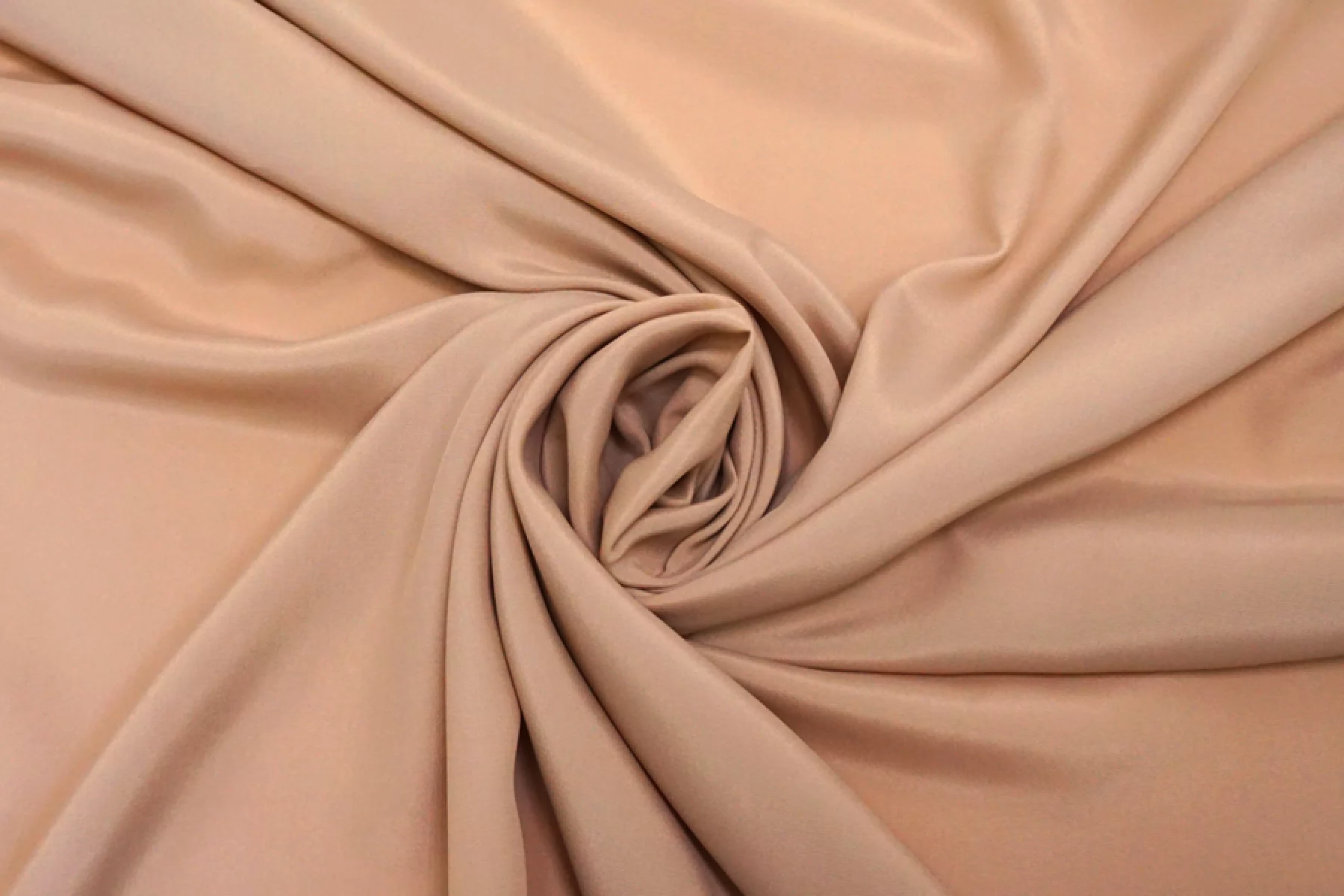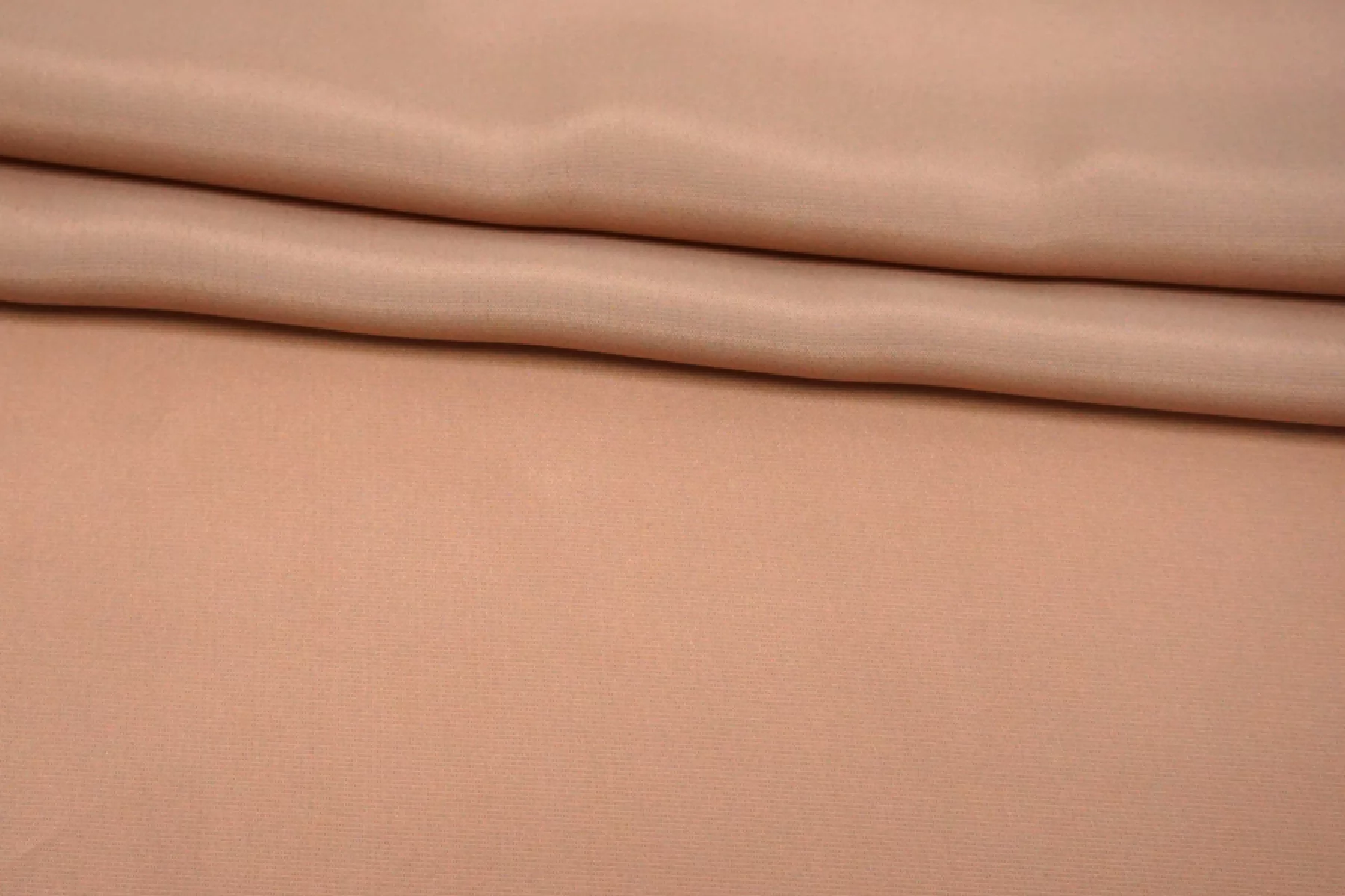 ЦЕНА УКАЗАНА ЗА ОТРЕЗ! (При заказе в метраже указывать 1) Крепдешин плательно-блузочный, шёлк с ацетатом в красивом бежево-розовом оттенке. Присутствует муарный эффект. Тактильно слегка шероховатый, легкий и воздушный. Не тянется. Красив в своей пластике и в складках. Немного просвечивает в один слой. На несколько тонов темнее кожи, но можно использовать в качестве нижнего платья под полупрозрачные ткани. Отлично подойдет на платья, юбки, туники и блузки. Уход - деликатный.