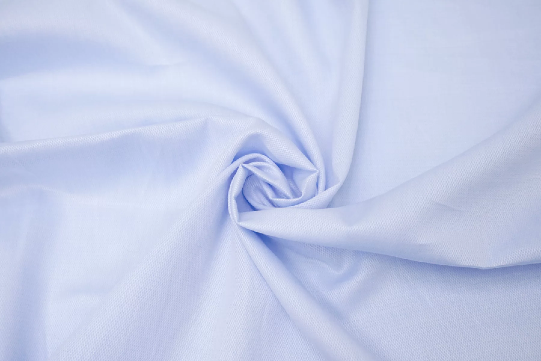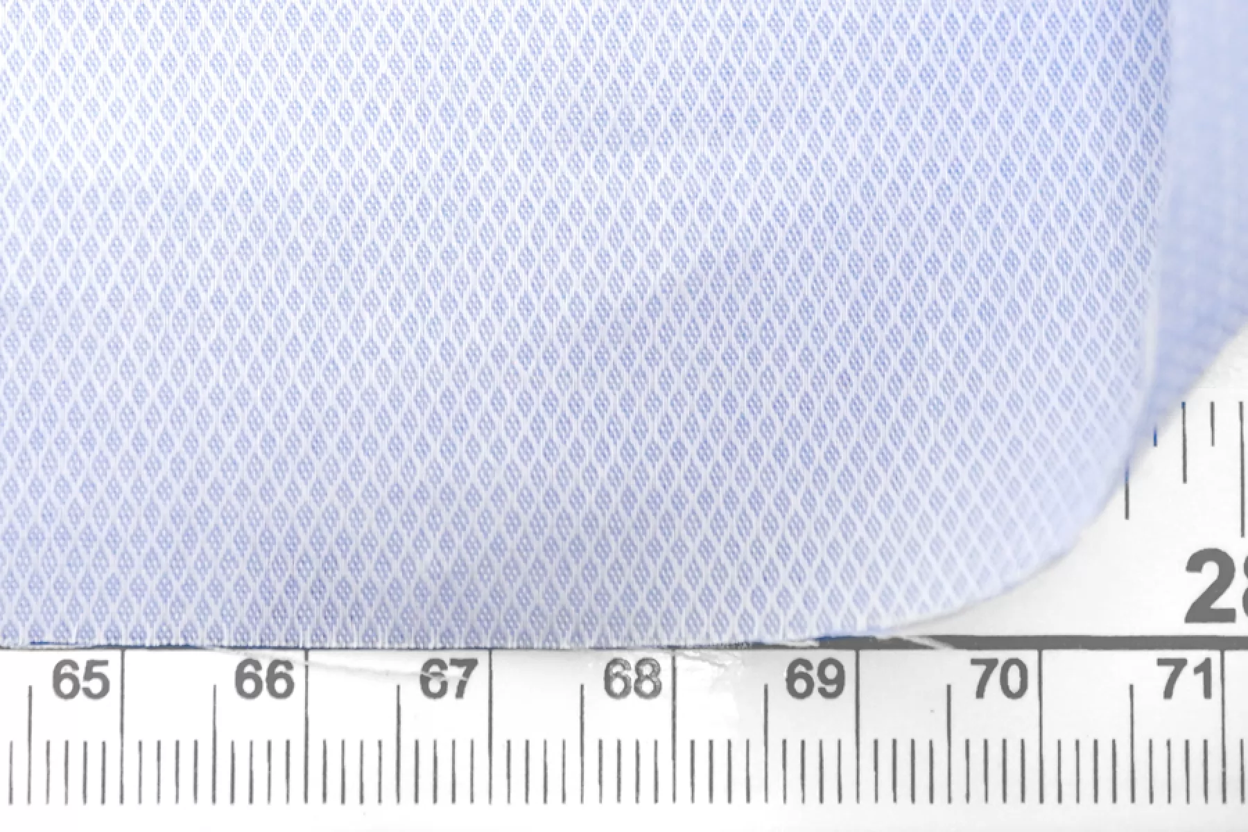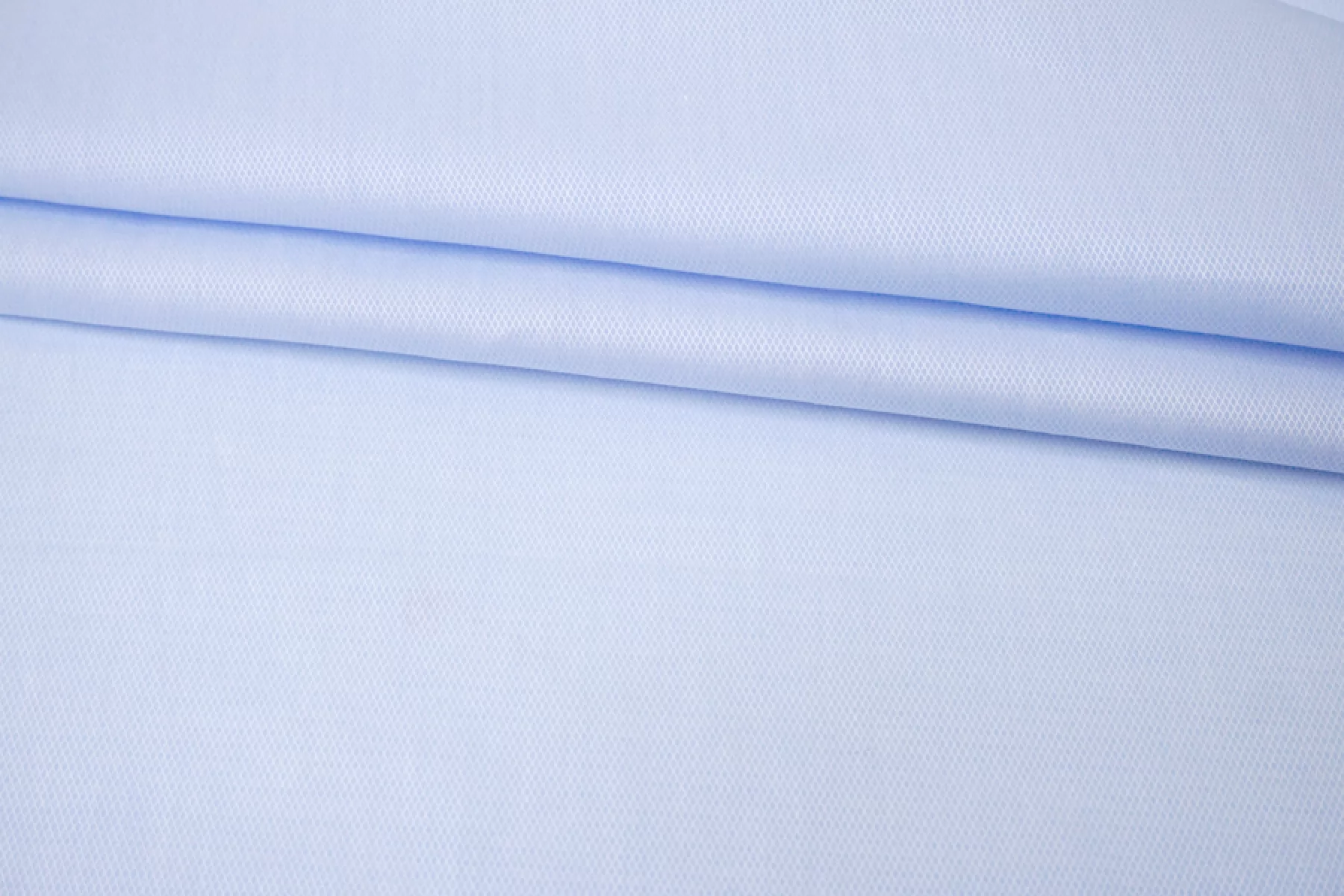 ЦЕНА УКАЗАНА ЗА ОТРЕЗ! (При заказе в метраже указывать 1) Итальянский рубашечный хлопок от Versace, c мелкой жаккардовой выработкой-ромбами, из нитей белого и голубого цвета. Материал гладкий, мягкий, тонкий, с красивым мягким лоском. Немного мнется и слегка просвечивает силуэт. Не тянется. Пластичный но форму держит. Прекрасный вариант на рубашки, юбки, платья. Для платья или юбки может потребоваться подкладка. Материал дает усадку.