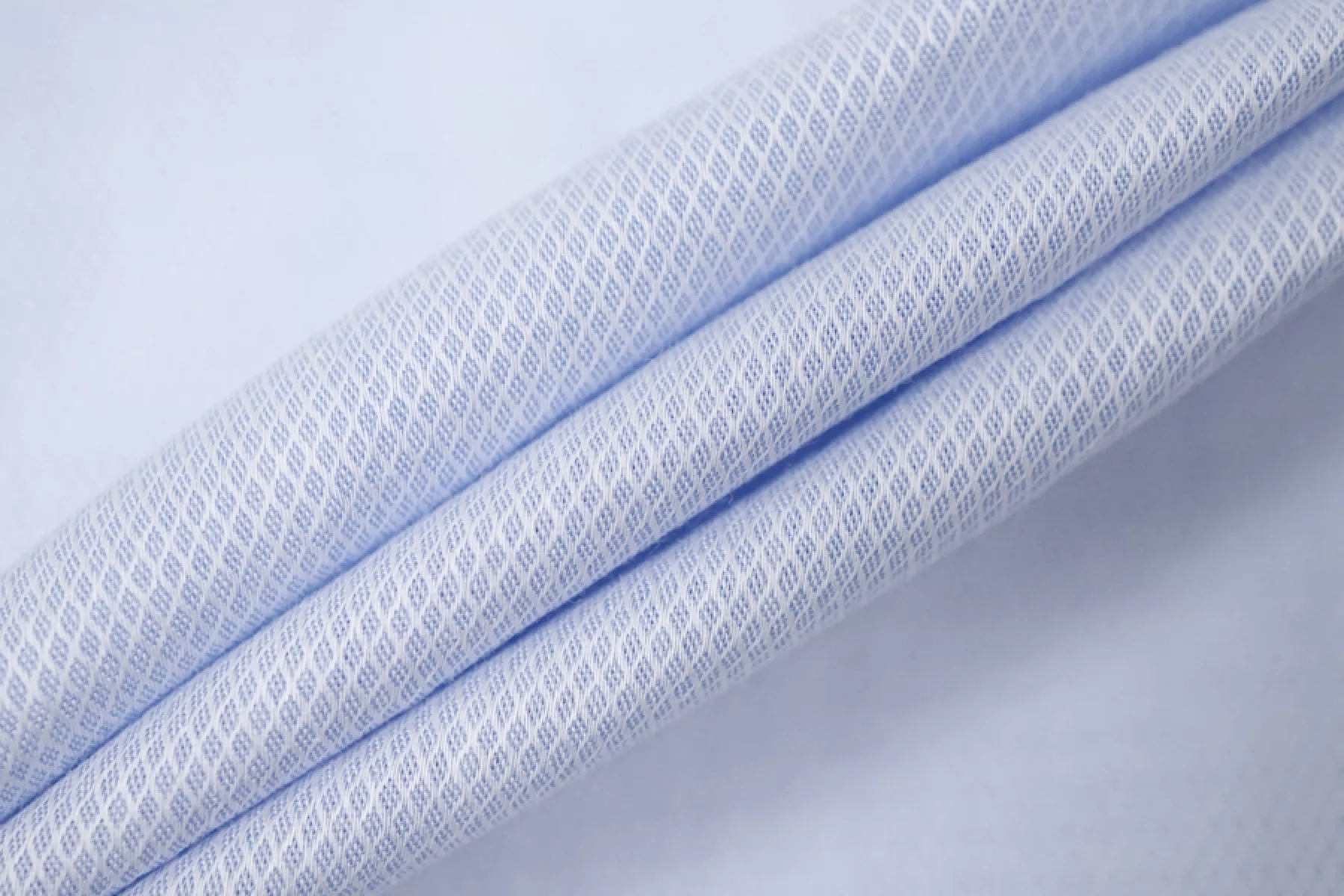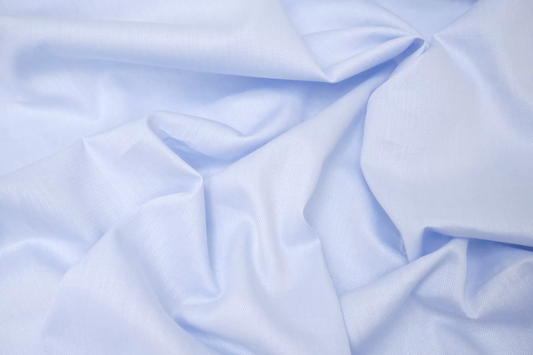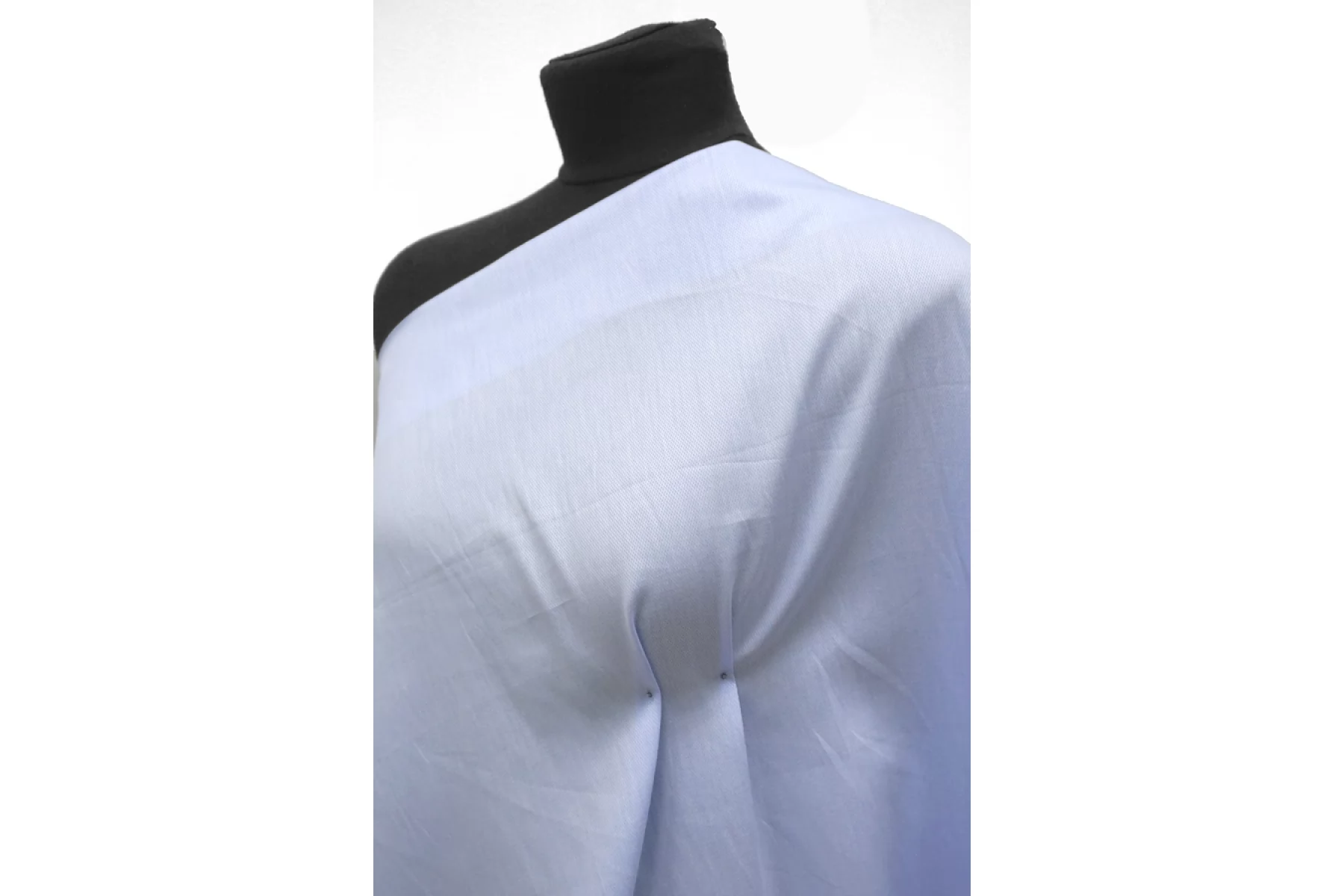 ЦЕНА УКАЗАНА ЗА ОТРЕЗ! (При заказе в метраже указывать 1) Итальянский рубашечный хлопок от Versace, c мелкой жаккардовой выработкой-ромбами, из нитей белого и голубого цвета. Материал гладкий, мягкий, тонкий, с красивым мягким лоском. Немного мнется и слегка просвечивает силуэт. Не тянется. Пластичный но форму держит. Прекрасный вариант на рубашки, юбки, платья. Для платья или юбки может потребоваться подкладка. Материал дает усадку.