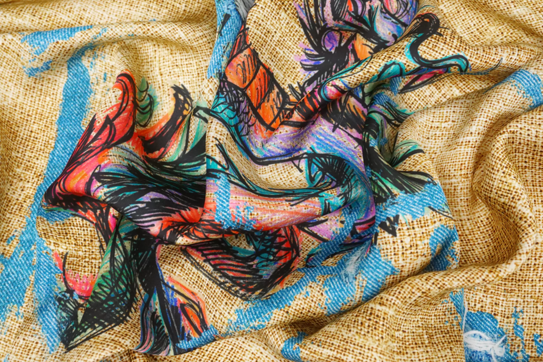 Характеристики: Состав 100% вискоза. Плотность ~ 110 гр/м2. Ширина 133 см. Длина купона 158 см.