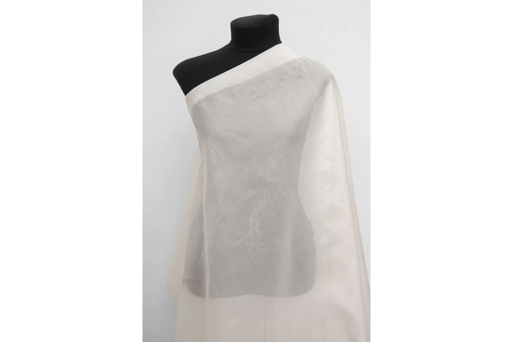 ЦЕНА УКАЗАНА ЗА ОТРЕЗ! (При заказе в метраже указывать 1) Великолепная шелковая органза с хлопком плетение рогожка, молочного оттенка. Шелковистая наощупь, чувствуется плетение. С красивым легким лоском. Просвечивает не тянется. Форм держит. Пластичная. Отличный вариант на нарядные платья и блузки. Уход деликатный