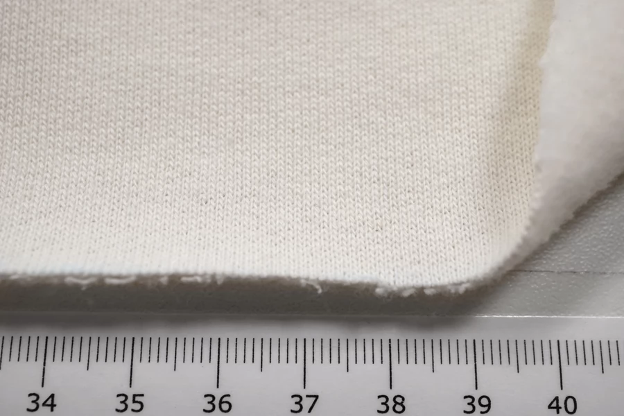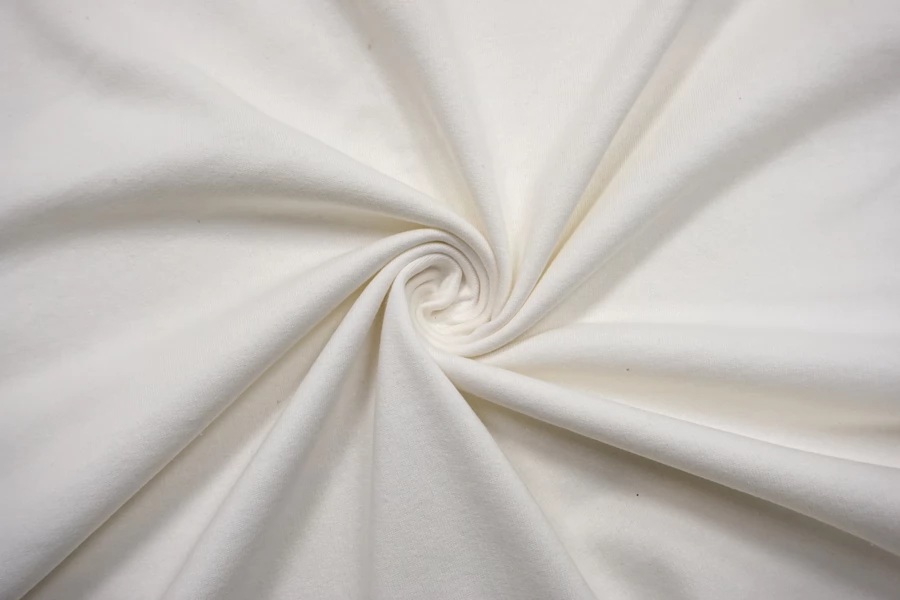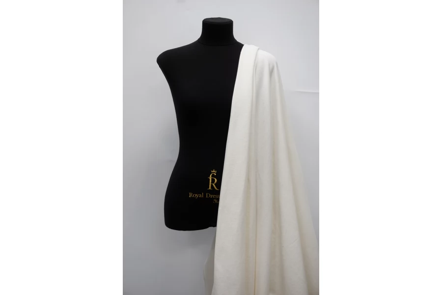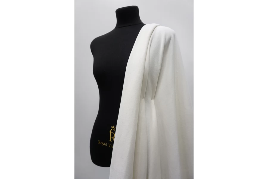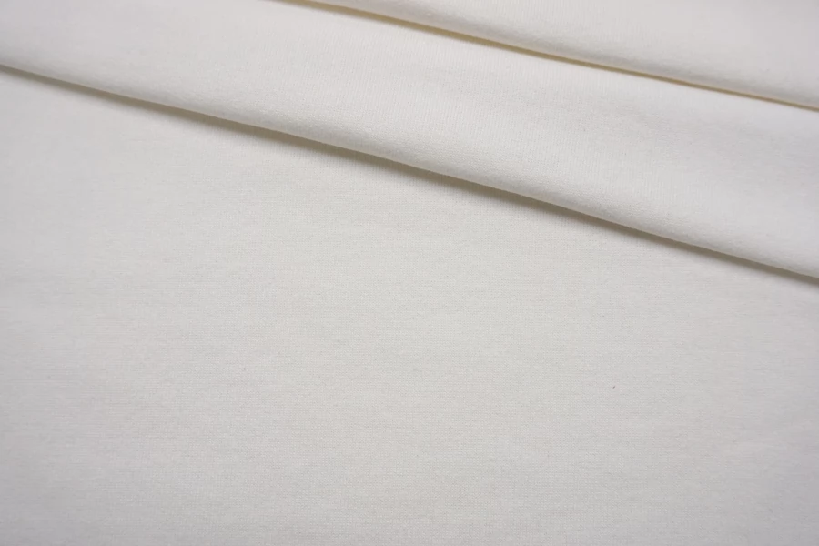 ЦЕНА УКАЗАНА ЗА ОТРЕЗ! (При заказе в метраже указывать 1) Трикотаж-футер из хлопка, в светлом молочном цвете. 3-х нитка. Теплый, с начесом, не просвечивает, тянется не сильно. Подойдет для пошива теплых трикотажных вещей (худи, платья, штанов, толстовки, свитшота).