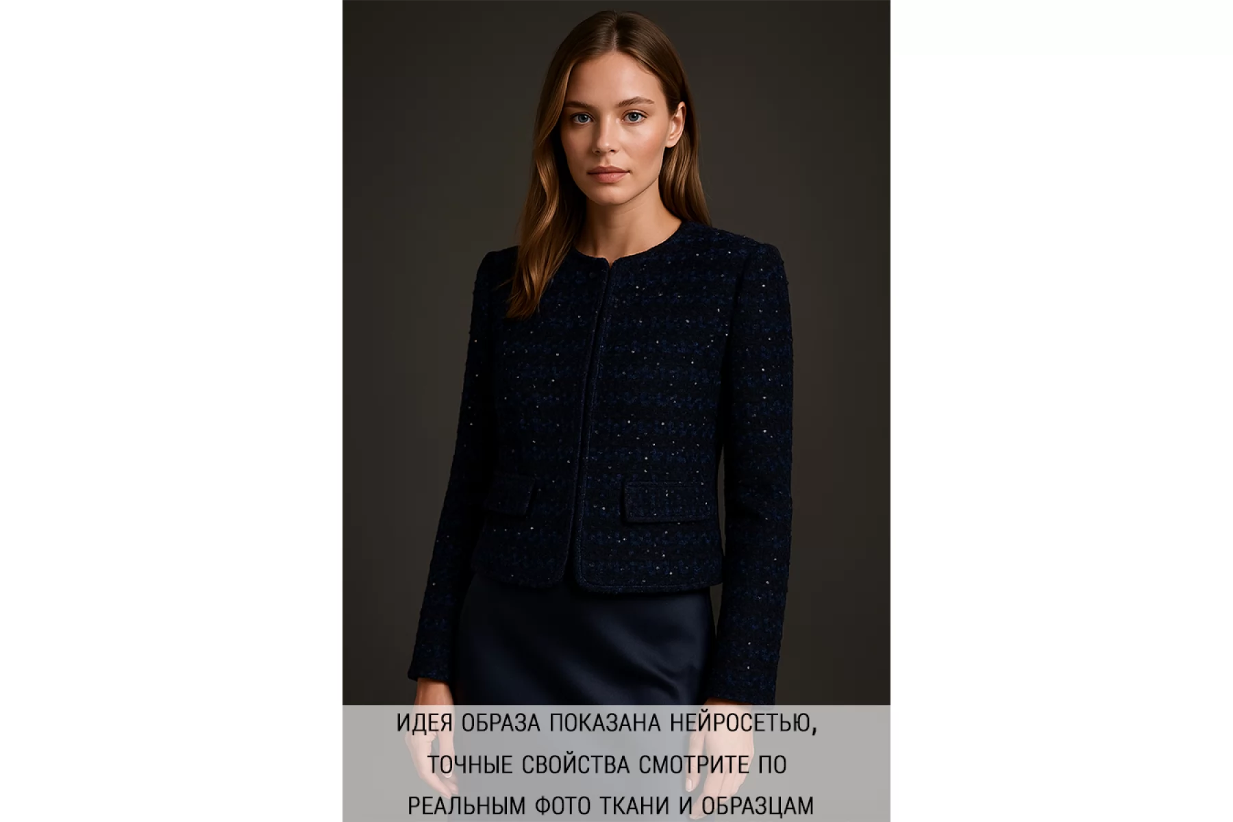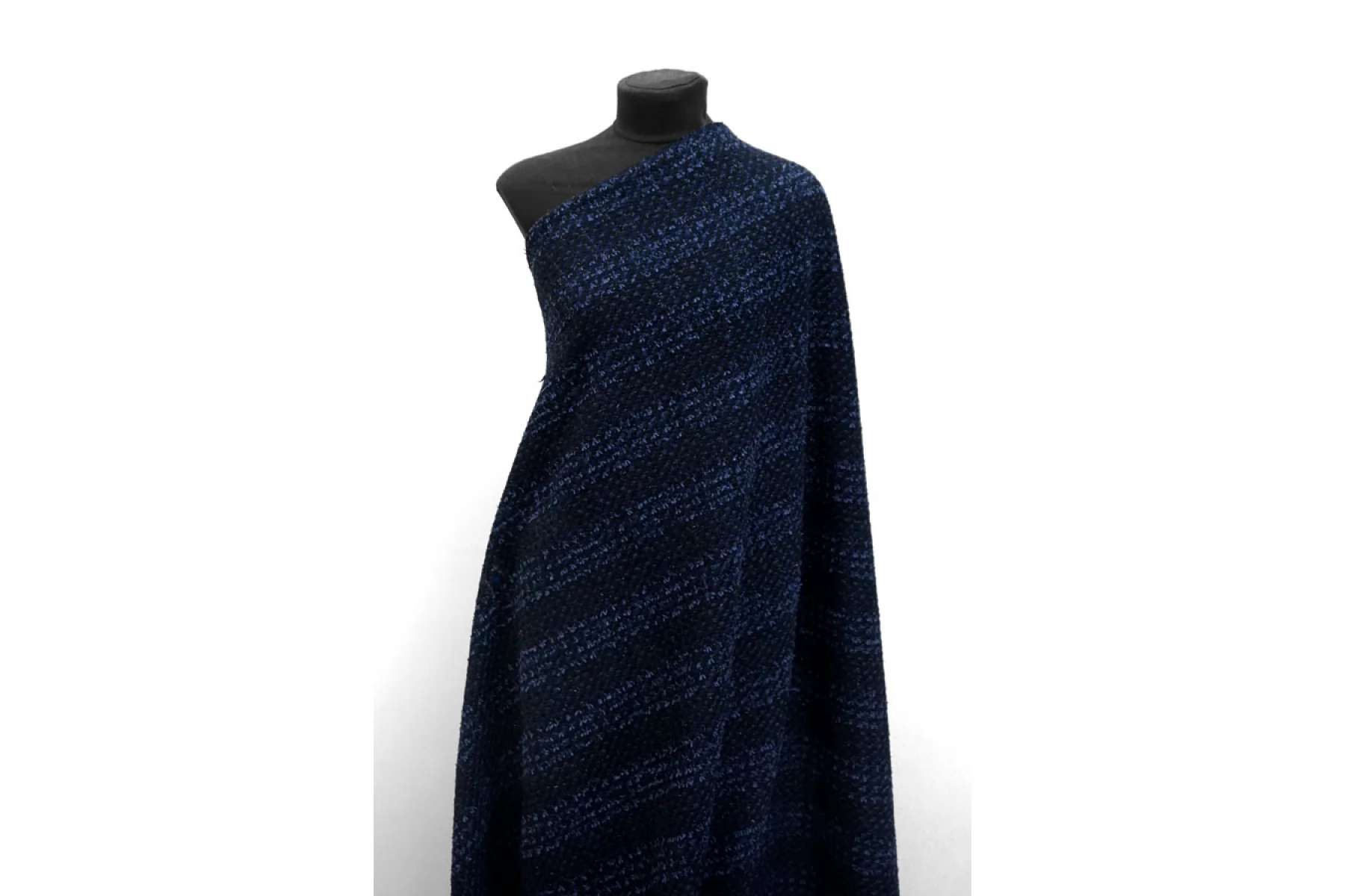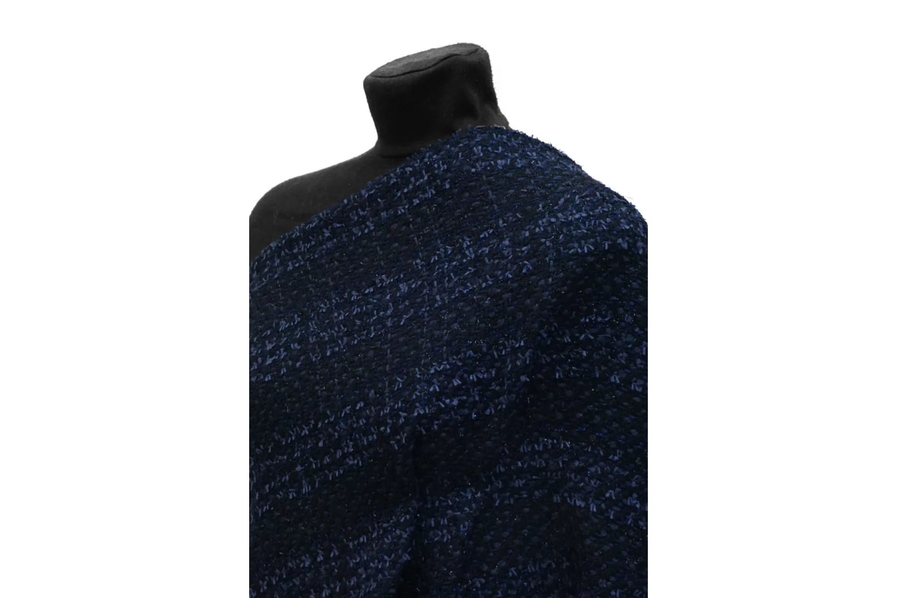 ЦЕНА УКАЗАНА ЗА ОТРЕЗ! (При заказе в метраже указывать 1) Прекрасный твид из хлопка с добавлением шерсти и люрекса из нитей черного и синего цвета. Тактильно немного суховатый, чувствуется фактура плетения. Немного покалывает. Плетение не плотное, немного просвечивает. Не тянется. Не мнется. Форму держит, довольно пластичный. Классный вариант на пальто, жакеты, костюмные варианты, платья, юбки и не только. При необходимости используйте подкладочный материал