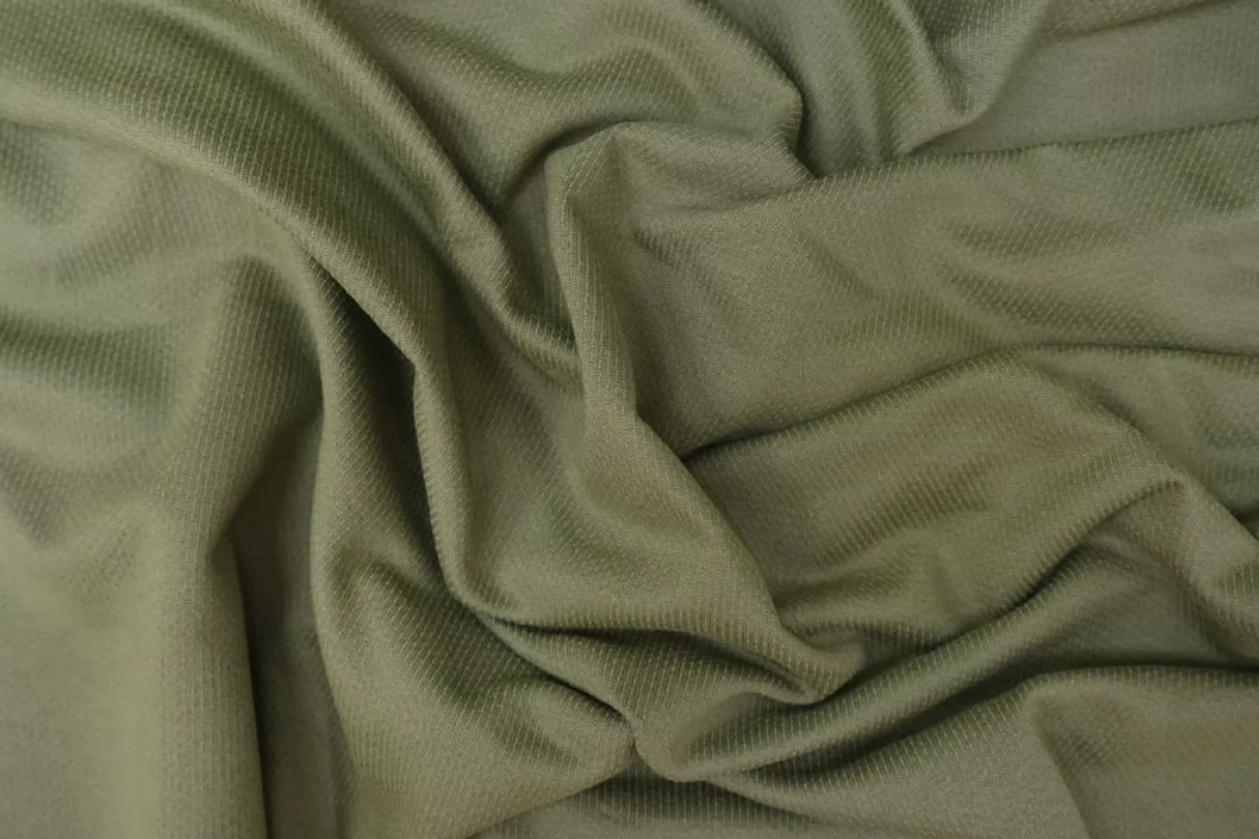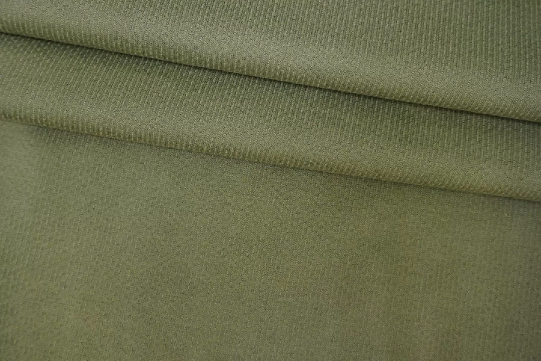 ЦЕНА УКАЗАНА ЗА ОТРЕЗ! (При заказе в метраже указывать 1) Прекрасный фактурный футер зеленого цвета от бренда ETRO. Тонкий, приятный наощупь, чувствуется фактурность наощупь. С легким лоском. Немного тянется. Формодержащий. Не просвечивает. Достаточно пластичный. Слегка сминается, но восстанавливается практически полностью. Отличный вариант для худи, толстовки, свитшота, штанов и платья, а также спортивного костюма. Примерно в середине идет еле заметная полоса по типу уплотнения нити. Обратите внимание на ширину!
