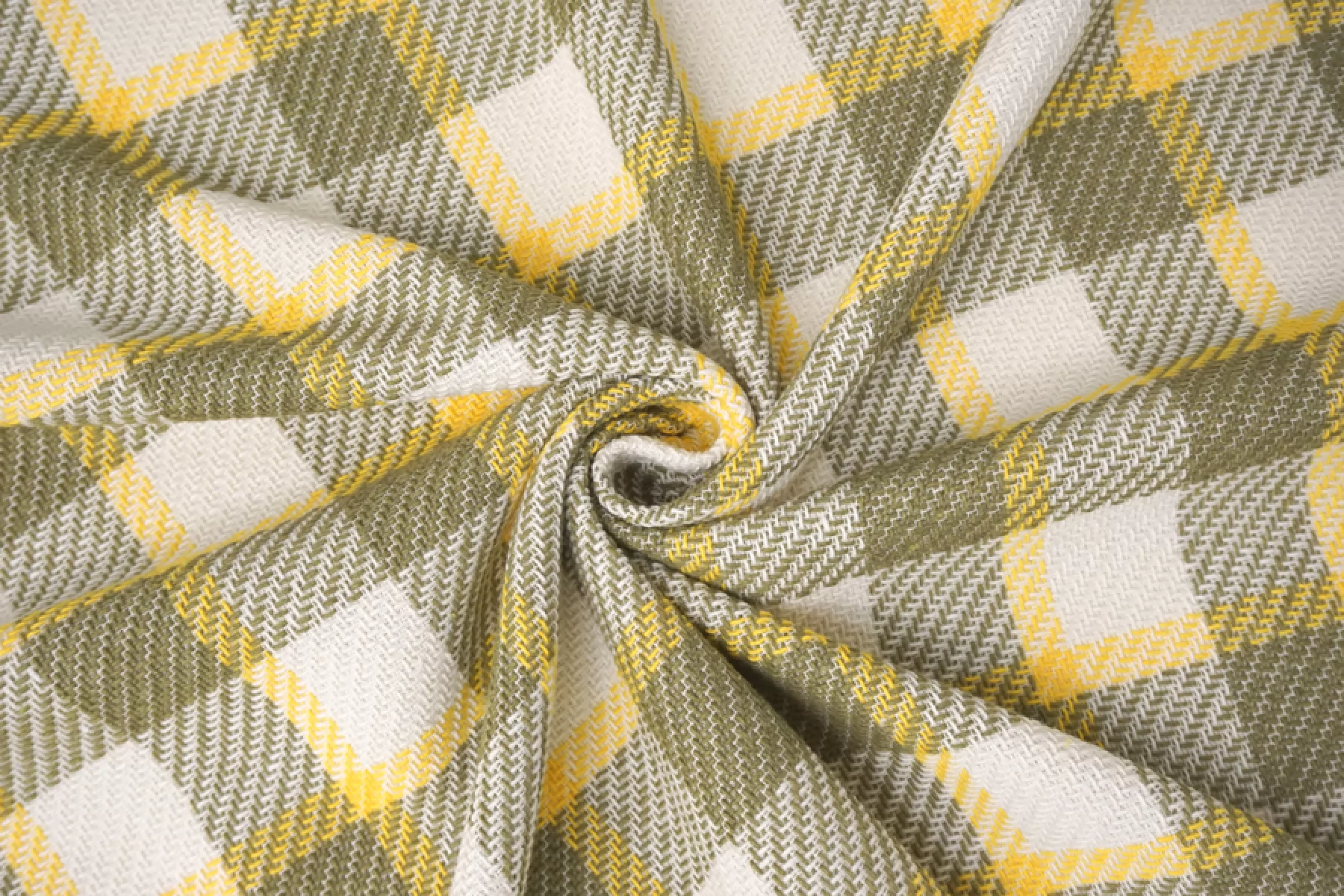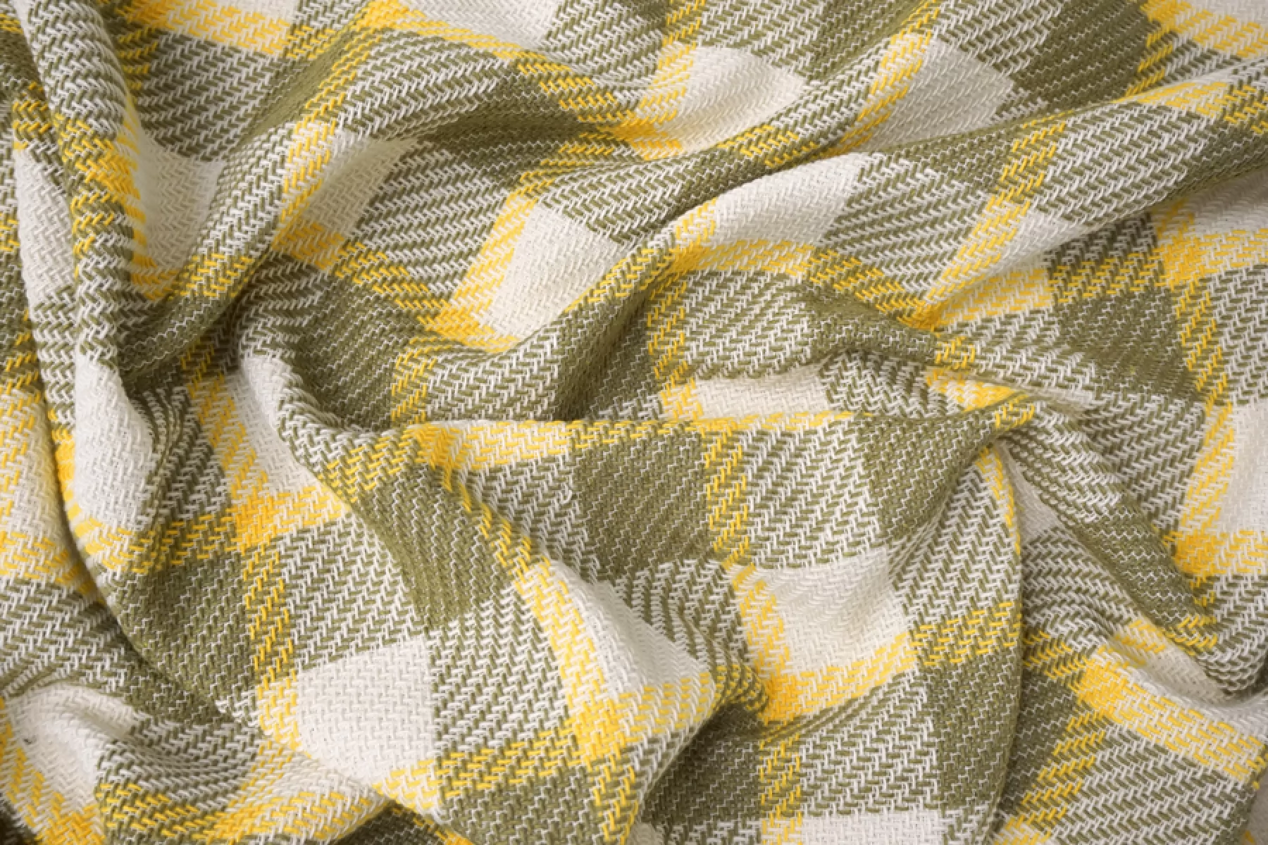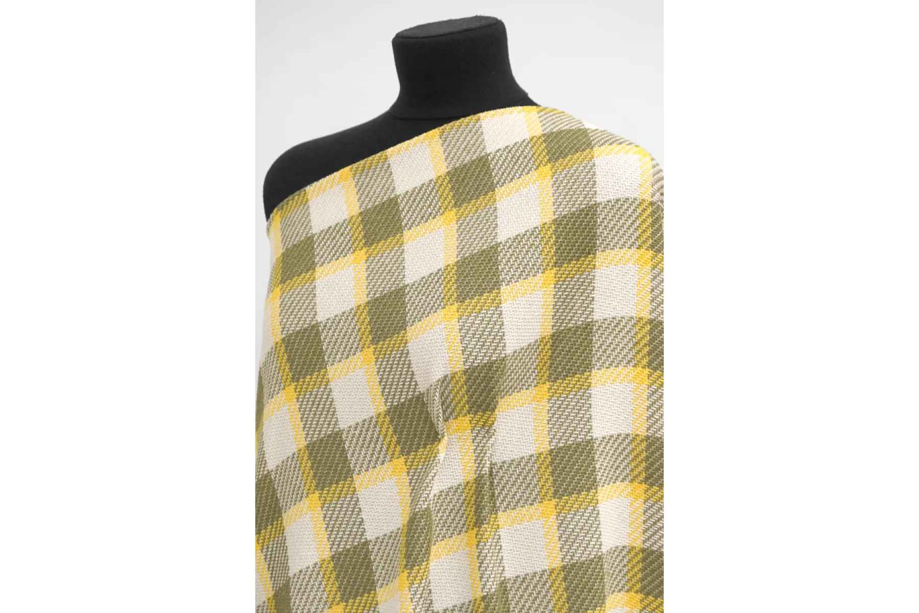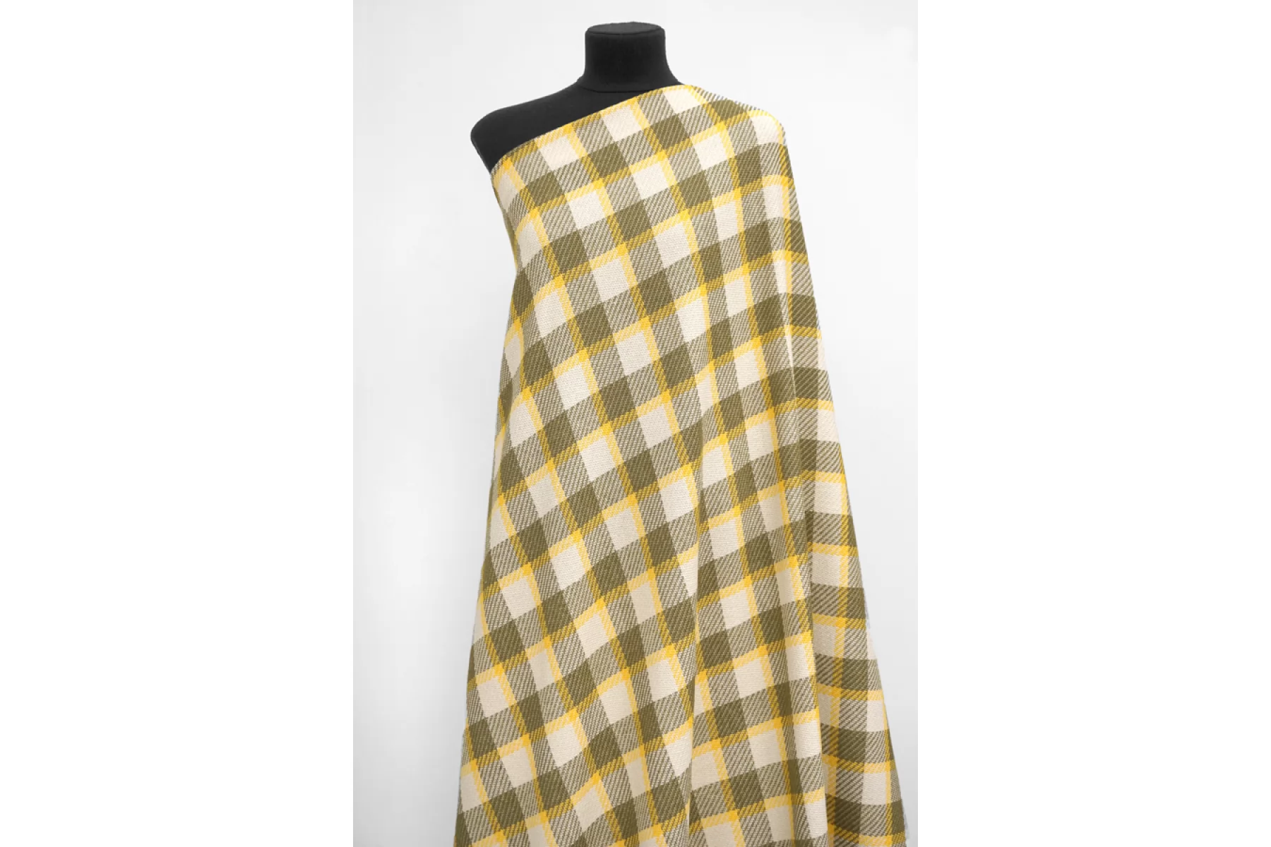 ОТРЕЗ 1,75 М Твид Шанель хлопковый Желто-оливковый Клетка (14) 24032348-1
