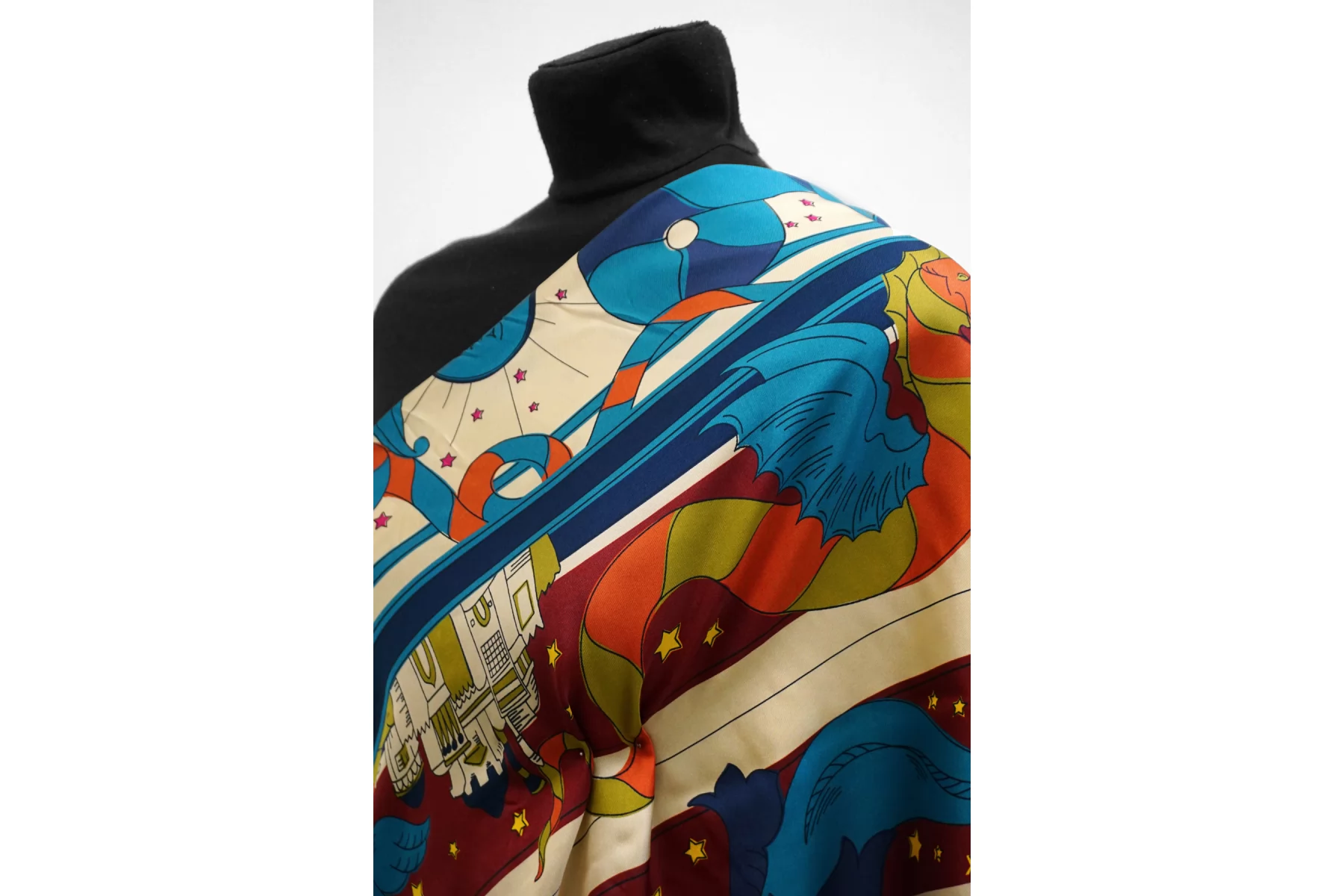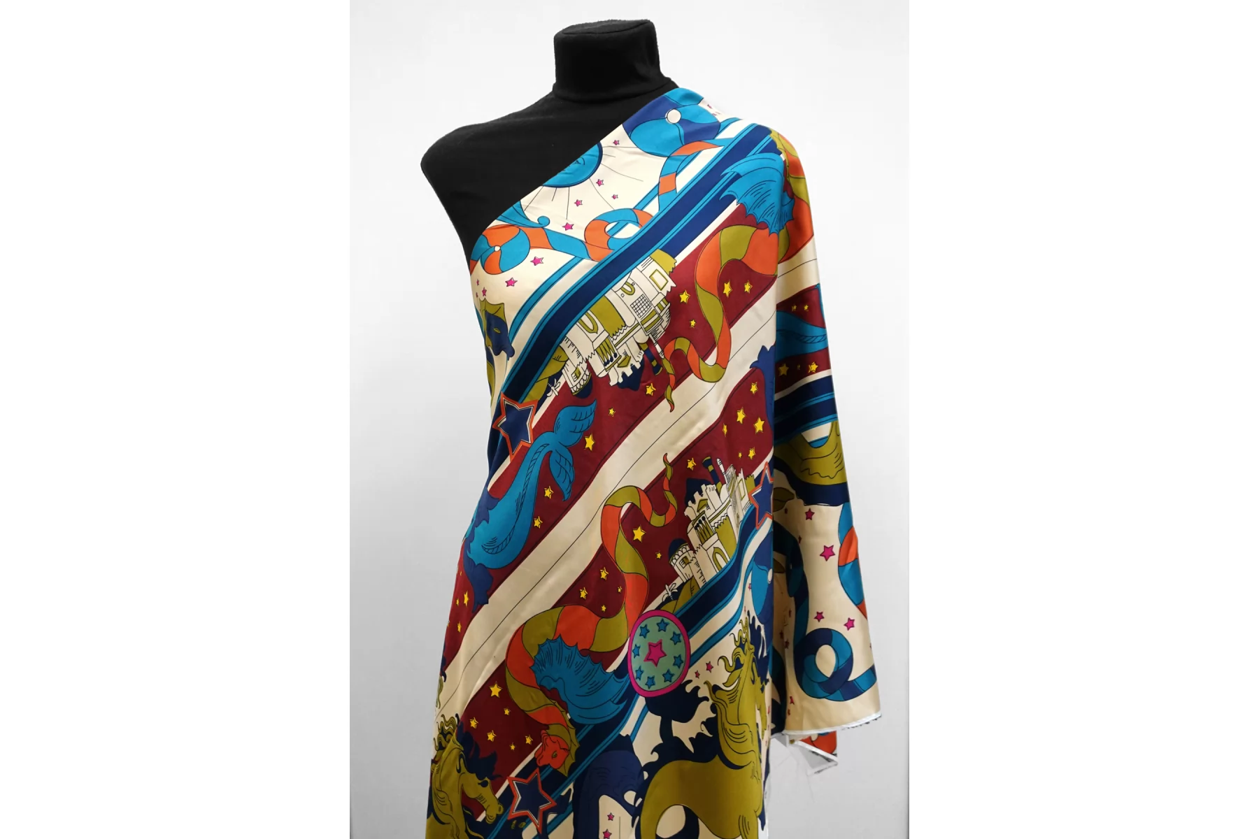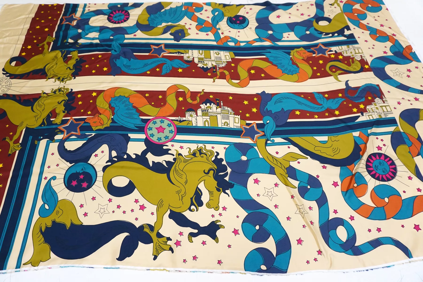 ЦЕНА УКАЗАНА ЗА ОТРЕЗ! (При заказе в метраже указывать 1) Второй купон не полный! ВНИМАНИЕ! Ткань продаётся по купонам, длина купона 88 см, цена за купон -4 440 руб. Твиловый шёлк от Max Mara с ярким фантазийным принтом в виде морских коньков. Очень приятный и мягкий, гладкий. Достаточно плотный, пластичный, струящийся, легкий. Обладает красивым шелковым лоском. Не тянется. Не просвечивает. Не мнется. Форму не держит, но красиво смотрится в драпировке. Прекрасный легкий вариант на блузки, платья и юбки. Уход за шёлком деликатный.