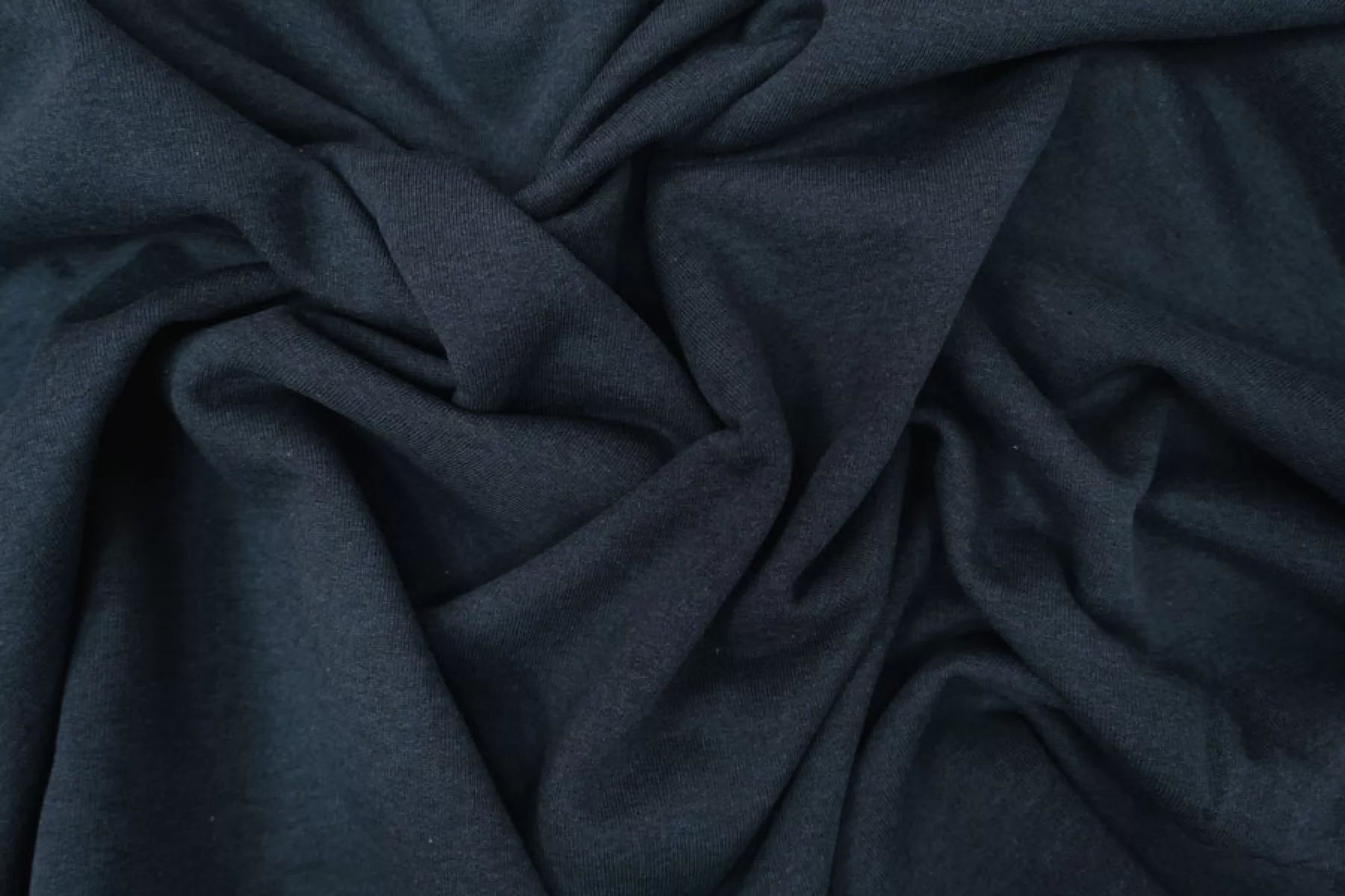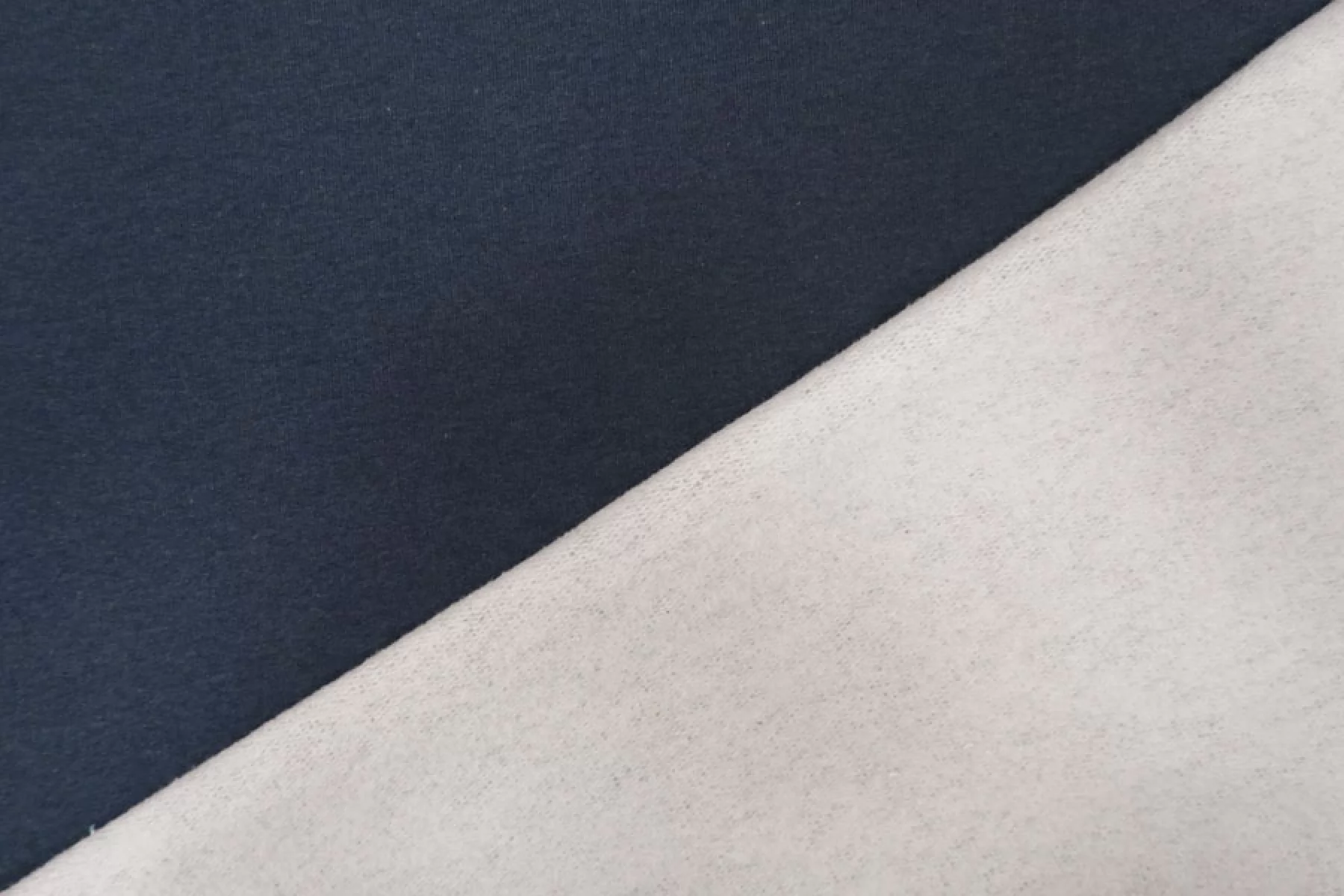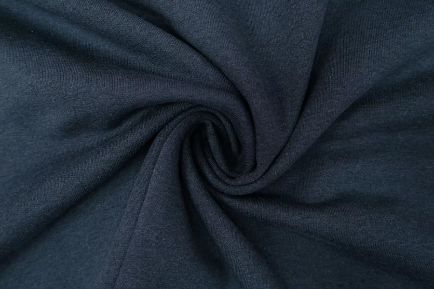 ЦЕНА УКАЗАНА ЗА ОТРЕЗ! (При заказе в метраже указывать 1) Прекрасный футер с начесом от бренда DIOR темно-синего оттенка, изнаночная сторона белого цвета. Плотный, мягкий, приятный наощупь. Не тянется. Формодержащий. Не просвечивает. Слегка сминается, но восстанавливается практически полностью. Отличный вариант для худи, толстовки, свитшота, штанов и платья, а также спортивного костюма. Обратите внимание на отличную ширину!