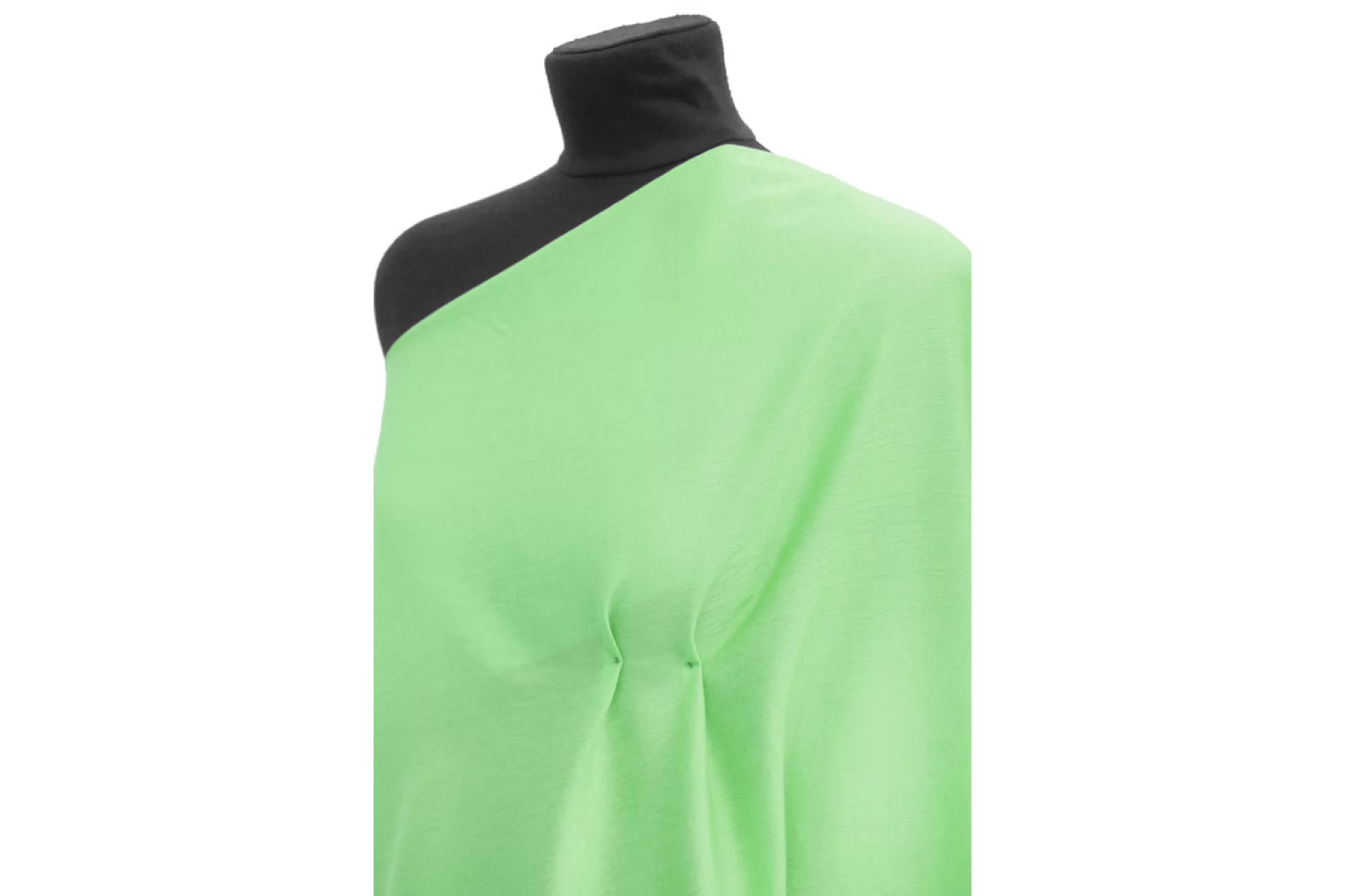ЦЕНА УКАЗАНА ЗА ОТРЕЗ! (При заказе в метраже указывать 1) Плательная вискоза яркого фисташкового оттенка. Тактильно приятная, мягкая, со слегка шероховатой и слегка жатой поверхностью. Обладает красивой пластикой, красива в складках. Форму практически не держит. Немного просвечивает контур силуэта. Не тянется. Несильно сминается. С легким приятным лоском. Прекрасный вариант на платья, блузки, юбки и не только. Обязательно учитывайте возможную усадку 5-10%