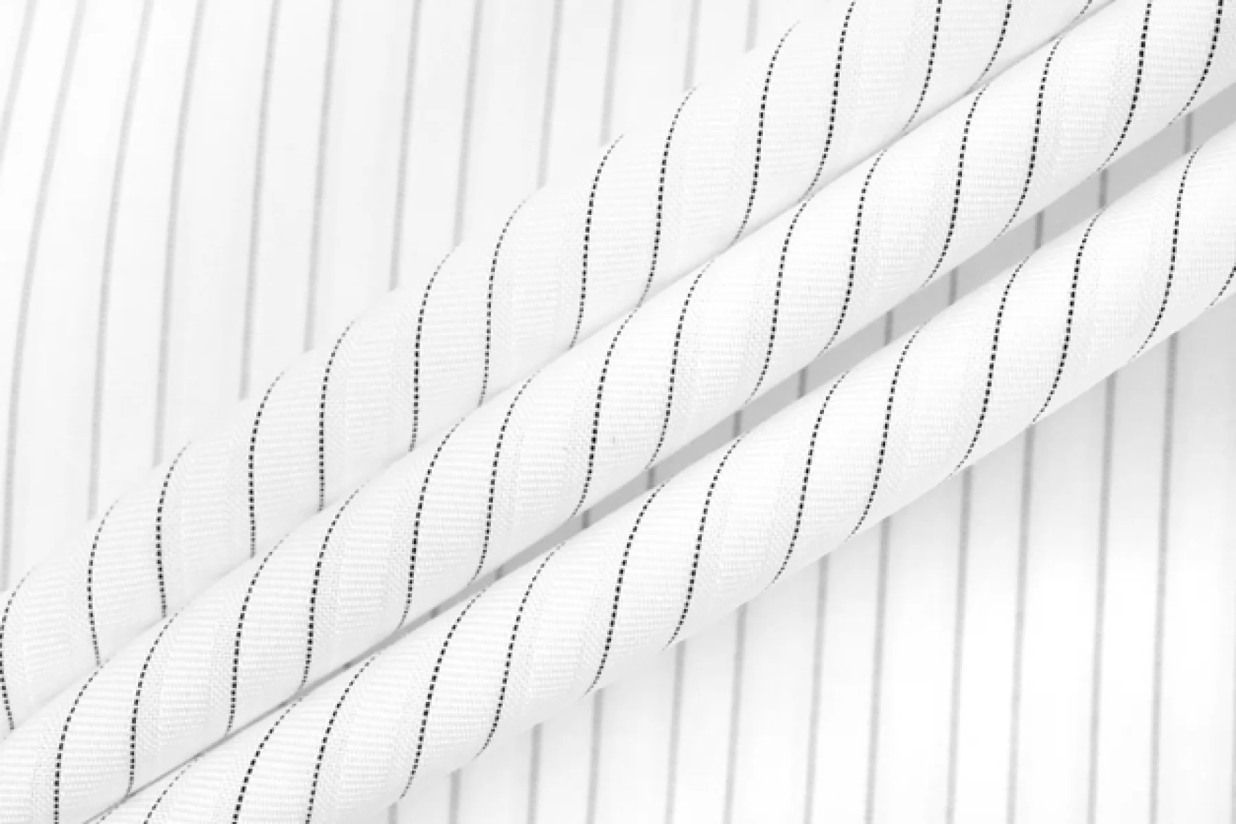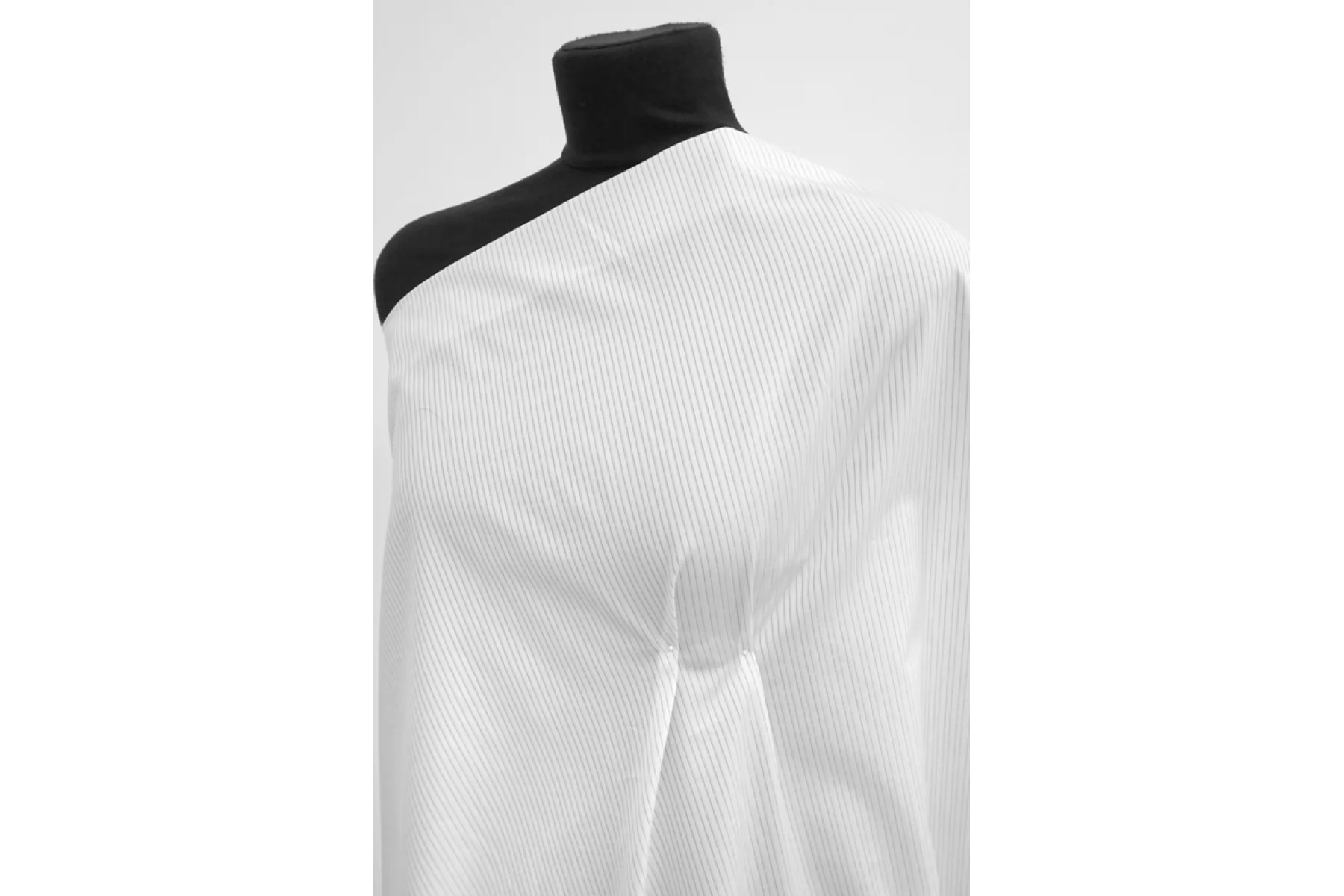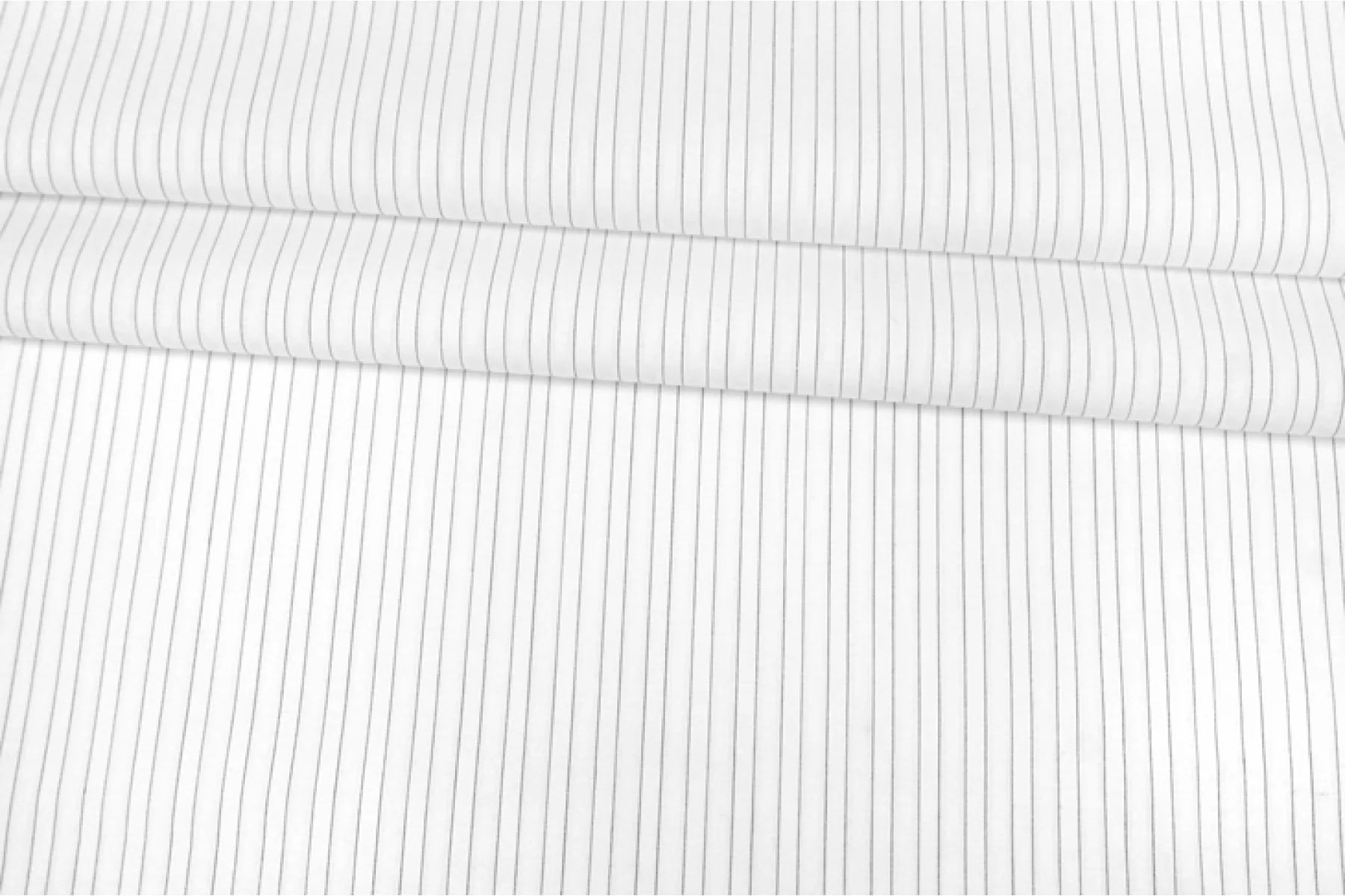 ЦЕНА УКАЗАНА ЗА ОТРЕЗ! (При заказе в метраже указывать 1) Рубашечный хлопок FENDI с жаккардовой выработкой более плотной, напоминающей репсовое плетения, полоски в молочном оттенке с тонкой черной нитью. Тактильно приятный, слегка ощущается выработка. Достаточно плотненький, неплохо держит форму. Мнется. Просвечивает силуэт на просвет. Не тянется. Отличный вариант рубашки, платья, юбки и не только. При необходимости используйте подкладочный материал.