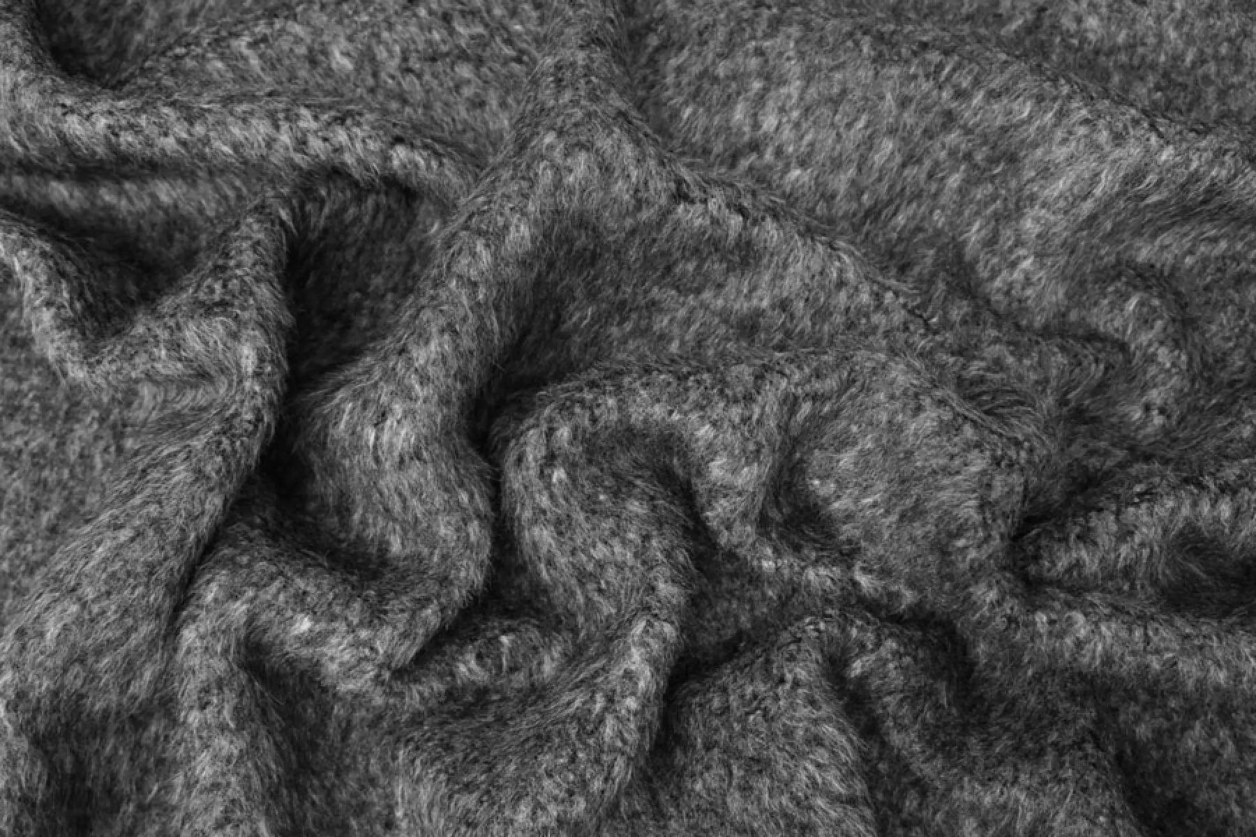 ЦЕНА УКАЗАНА ЗА ОТРЕЗ! (При заказе в метраже указывать 1) Прекрасная шерсть с мохером пальтовой плотности, фактурная, со средней длинны ворсом, серого цвета. Ворс направленный. Изнаночная сторона фактурная в черном и сером цвете. Материал очень мягкий и приятный, хотя немножко колется. Толщина примерно 2-3 мм. Не тянется. Форму немного держит. Отличный вариант на бомберы или пальто. Уход деликатный.