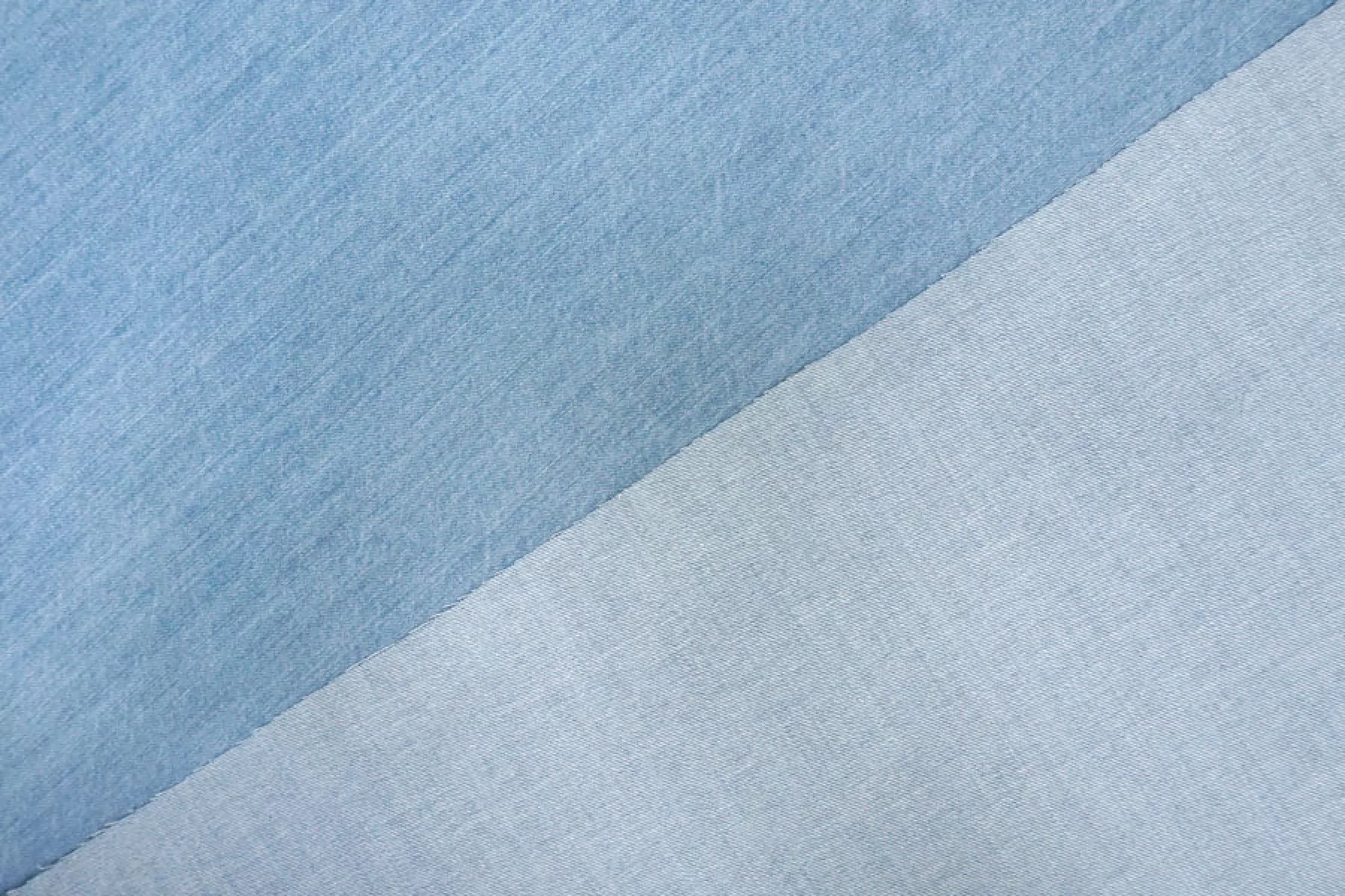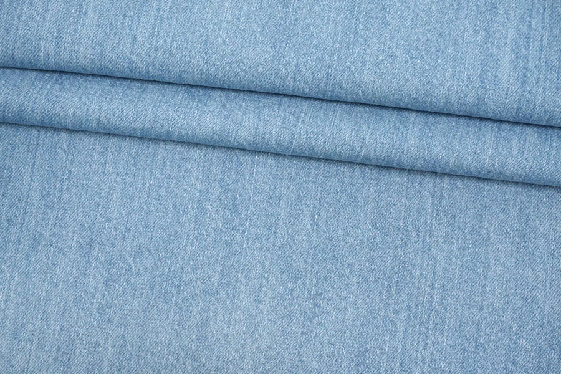 ЦЕНА УКАЗАНА ЗА ОТРЕЗ! (При заказе в метраже указывать 1) Хлопковая джинса костюмно-плательной плотности с легким эффектом варенки в голубом цвете (с белыми нитями в плетении). Мягкая и приятная. Слегка тянется за счет небольшого содержания эластана. Не просвечивает. Неплохо держит форму. Немного сминается. Отлично подойдет на пошив куртки, шорт, платья, джинс или юбки.