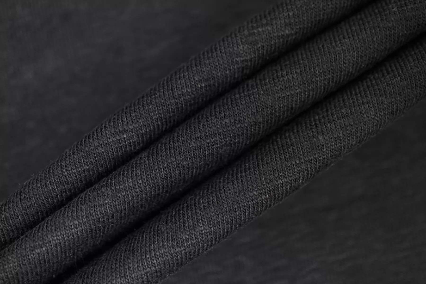 ЦЕНА УКАЗАНА ЗА ОТРЕЗ! (При заказе в метраже указывать ) Льняной трикотаж - кулирная гладь черного оттенка. Материал тактильно приятный, мягкий, совсем слегка суховат как лен. Обладает легким лоском и красивой пластикой. Хорошо и упруго тянется за счет плетения и эластана. Тонкий,но плотненький, просвечивает на просвет и при растяжении. Сминается, но восстанавливается. Обладает естественными уплотнениями для льна. Отличный вариант для пошива майки, футболки, топа, платья, юбки, брюк на резинке, особенно в летний период. При необходимости используйте подкладочный материал.
