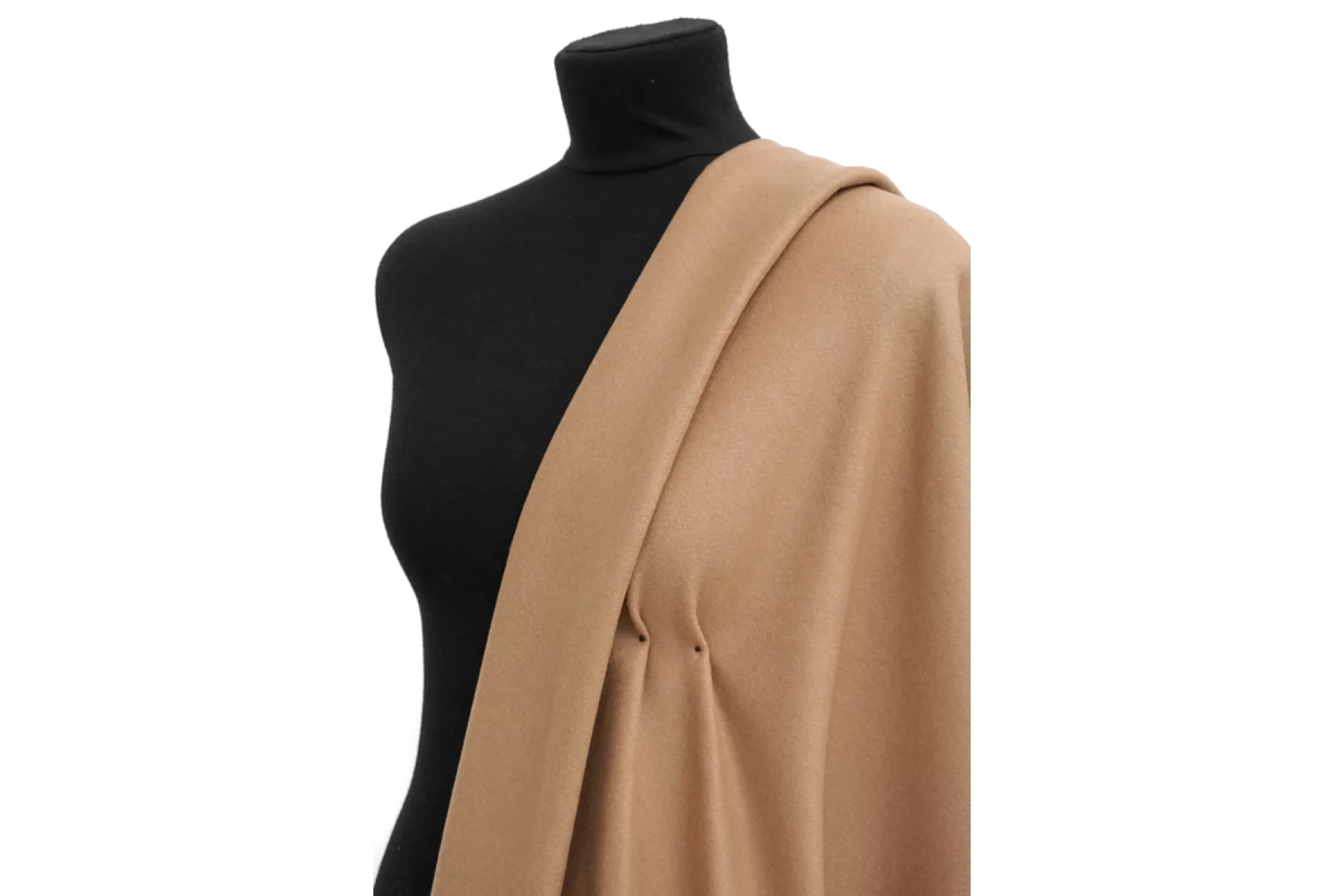 ЦЕНА УКАЗАНА ЗА ОТРЕЗ! (При заказе в метраже указывать 1) Мягкая пальтовая шерсть красивого бежевого оттенка. Приятная. Суховатая - чувствуется, что шерсть, но не колется. Лицевая сторона слегка ворсовая, но ворс прижат. Красива в пластике. Не просвечивает. Не тянется. Материал плотненький ~1 мм. Хорошо драпируется и держит форму. Сминается, но восстанавливается практически полностью. Прекрасно подойдет для пошива пальто любого кроя - от классического до пальто-рубашки.