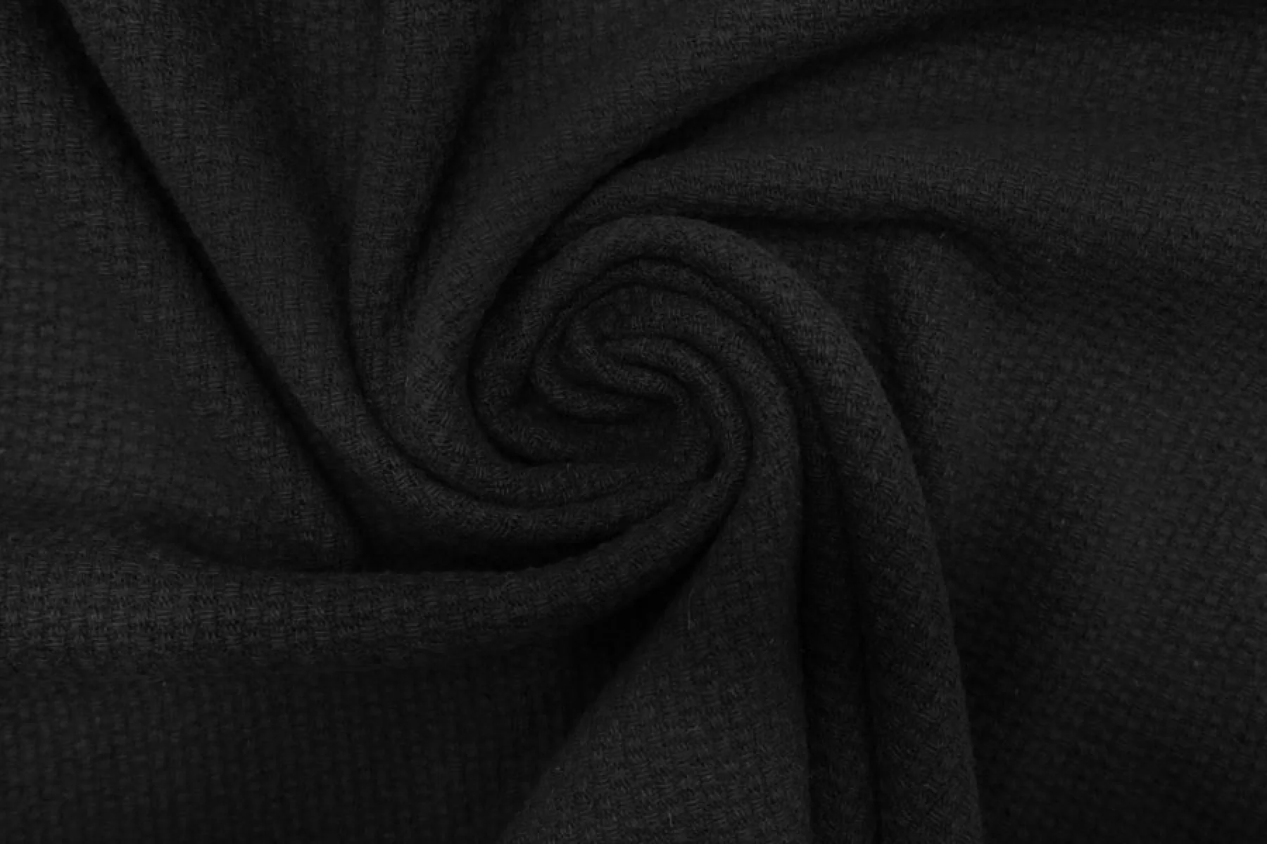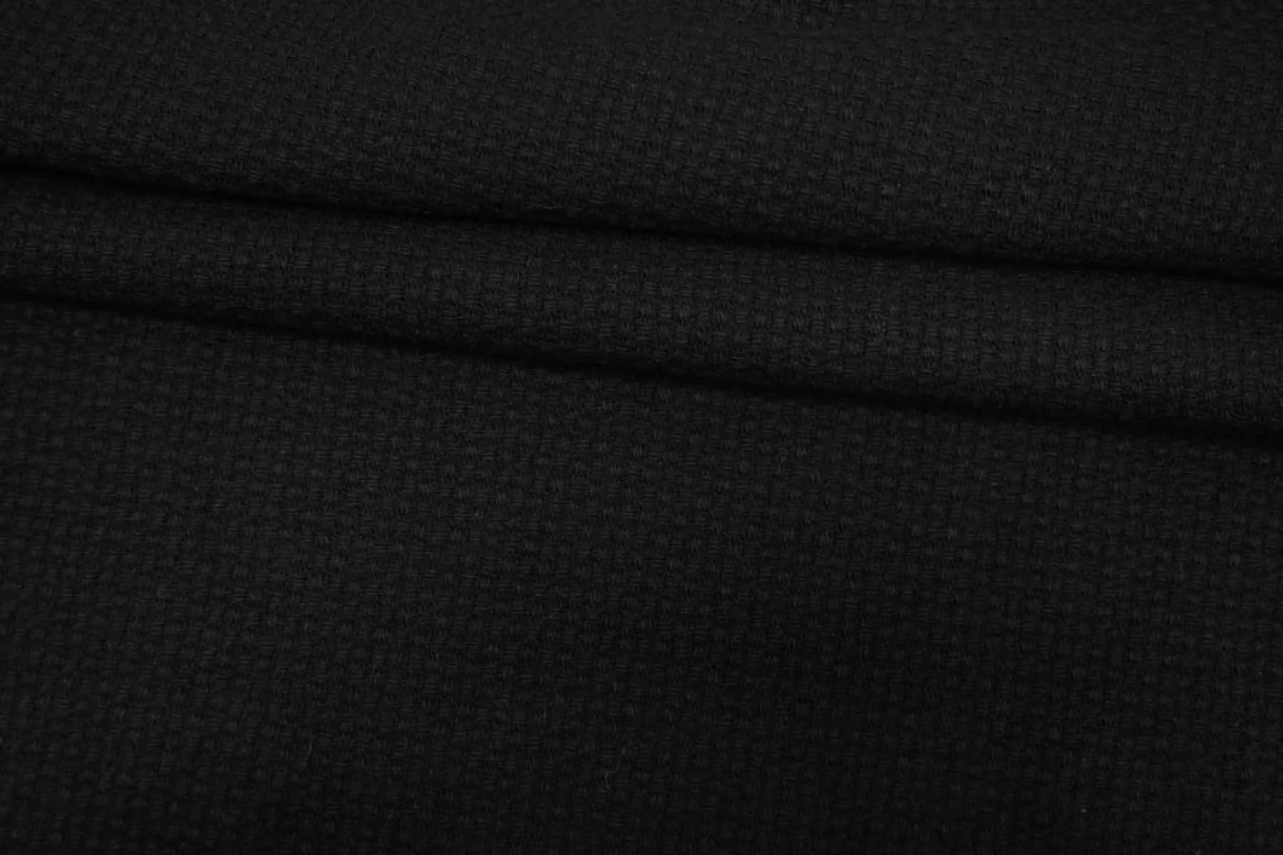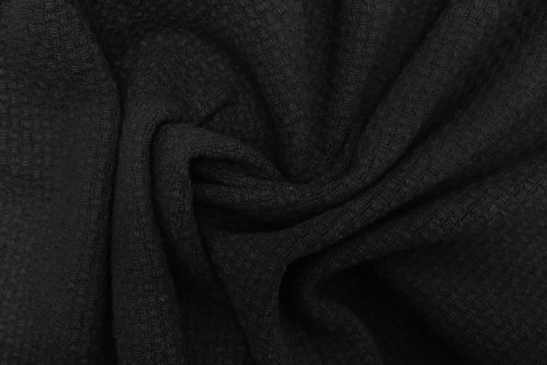 ЦЕНА УКАЗАНА ЗА ОТРЕЗ! (При заказе в метраже указывать 1) Прекрасный шрстяной твид шанель в классическом черном цвете от бренда MARINA RINALDI. Тактильно суховатый и немного жестковатый, ощущается фактура. Покалывает. Плетение плотное, не просвечивает. Не тянется. Не мнется. Драпируется, хорошо держит форму. Классный вариант на демисезонные пальто, жакеты, костюмные варианты, платья и не только. При необходимости используйте подкладочный материал