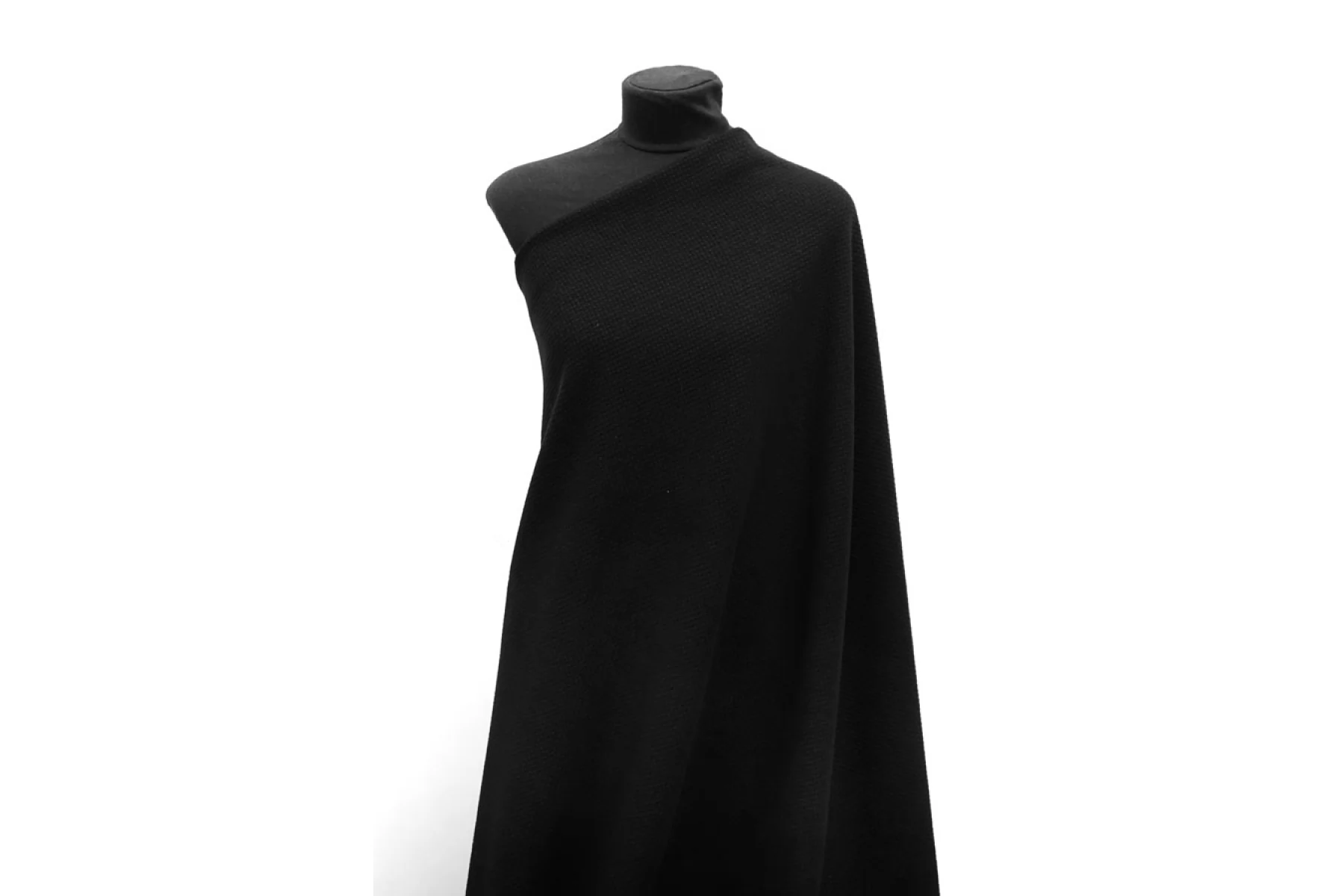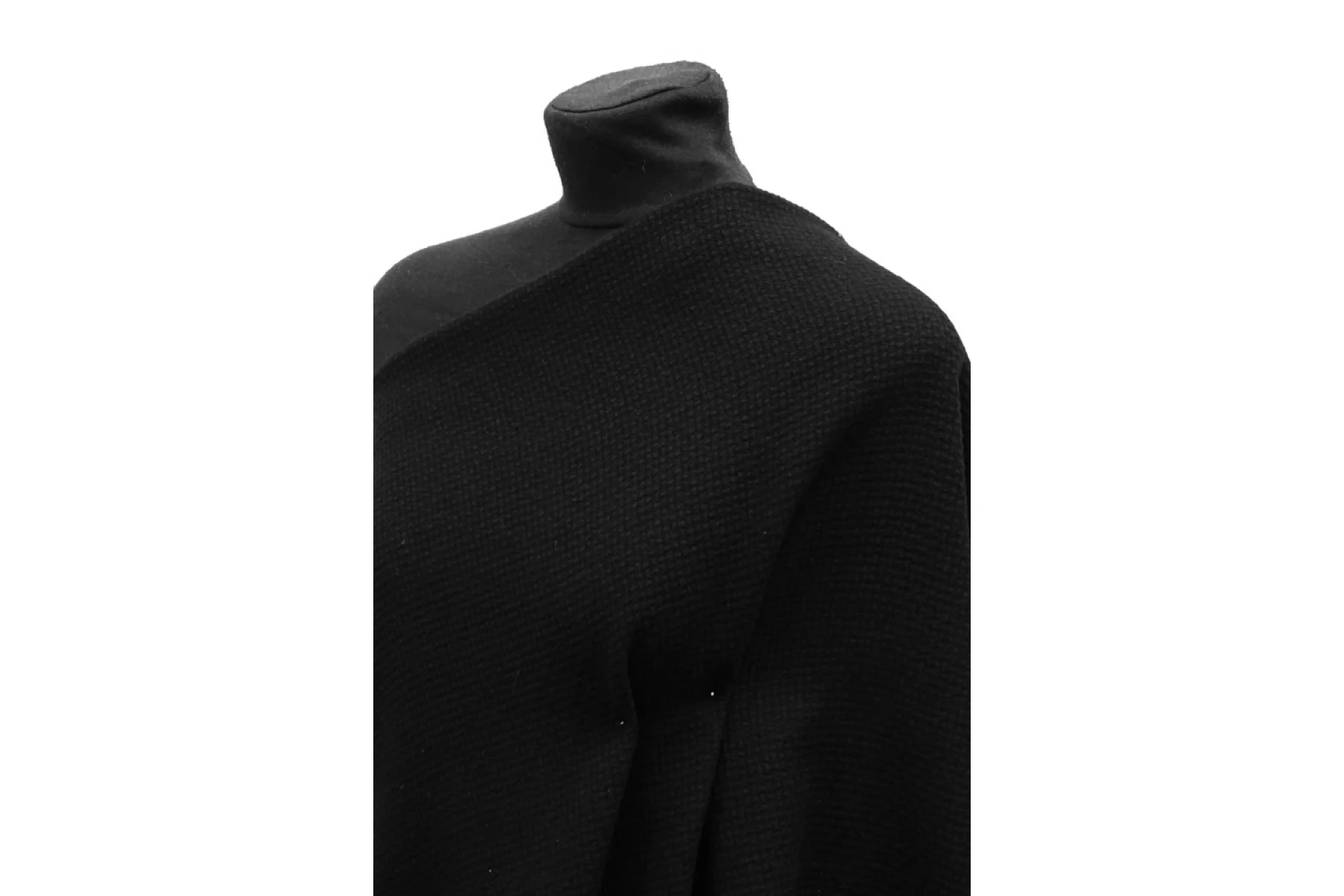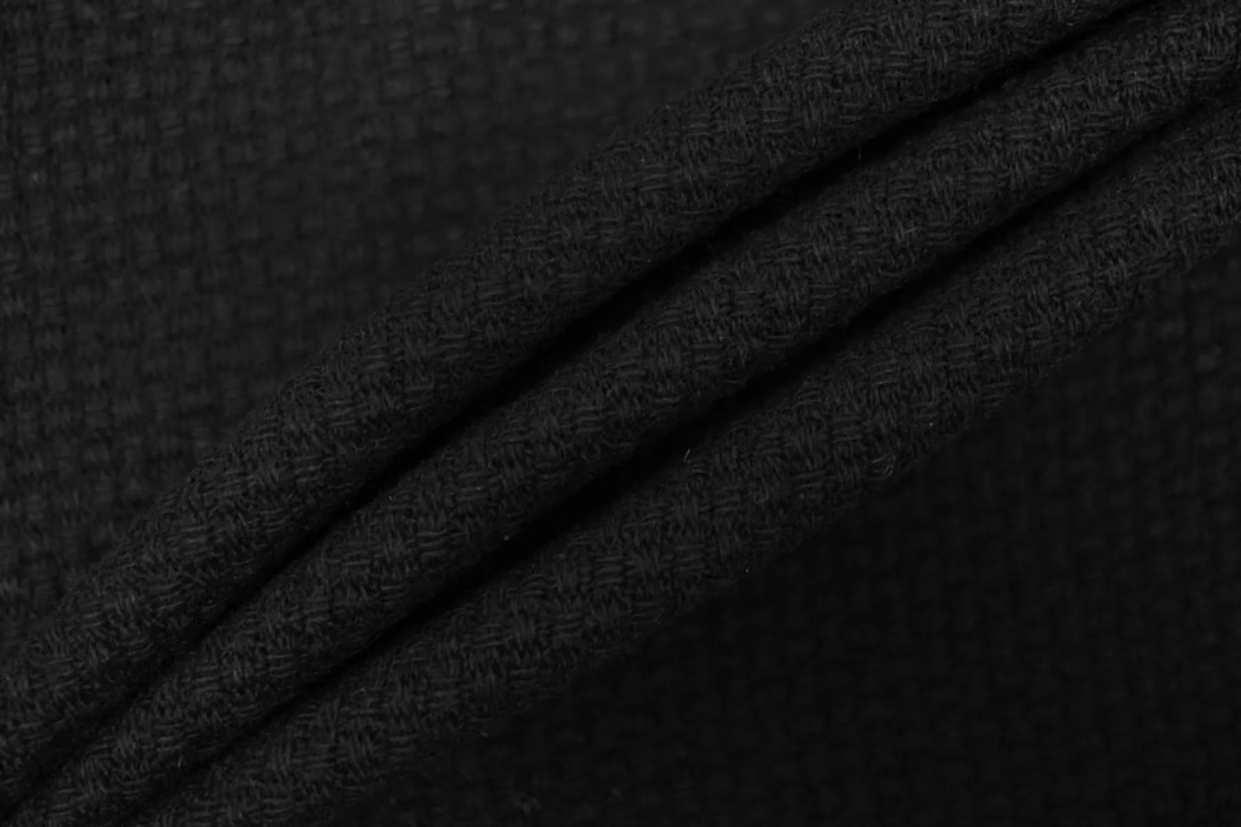 ЦЕНА УКАЗАНА ЗА ОТРЕЗ! (При заказе в метраже указывать 1) Прекрасный шрстяной твид шанель в классическом черном цвете от бренда MARINA RINALDI. Тактильно суховатый и немного жестковатый, ощущается фактура. Покалывает. Плетение плотное, не просвечивает. Не тянется. Не мнется. Драпируется, хорошо держит форму. Классный вариант на демисезонные пальто, жакеты, костюмные варианты, платья и не только. При необходимости используйте подкладочный материал