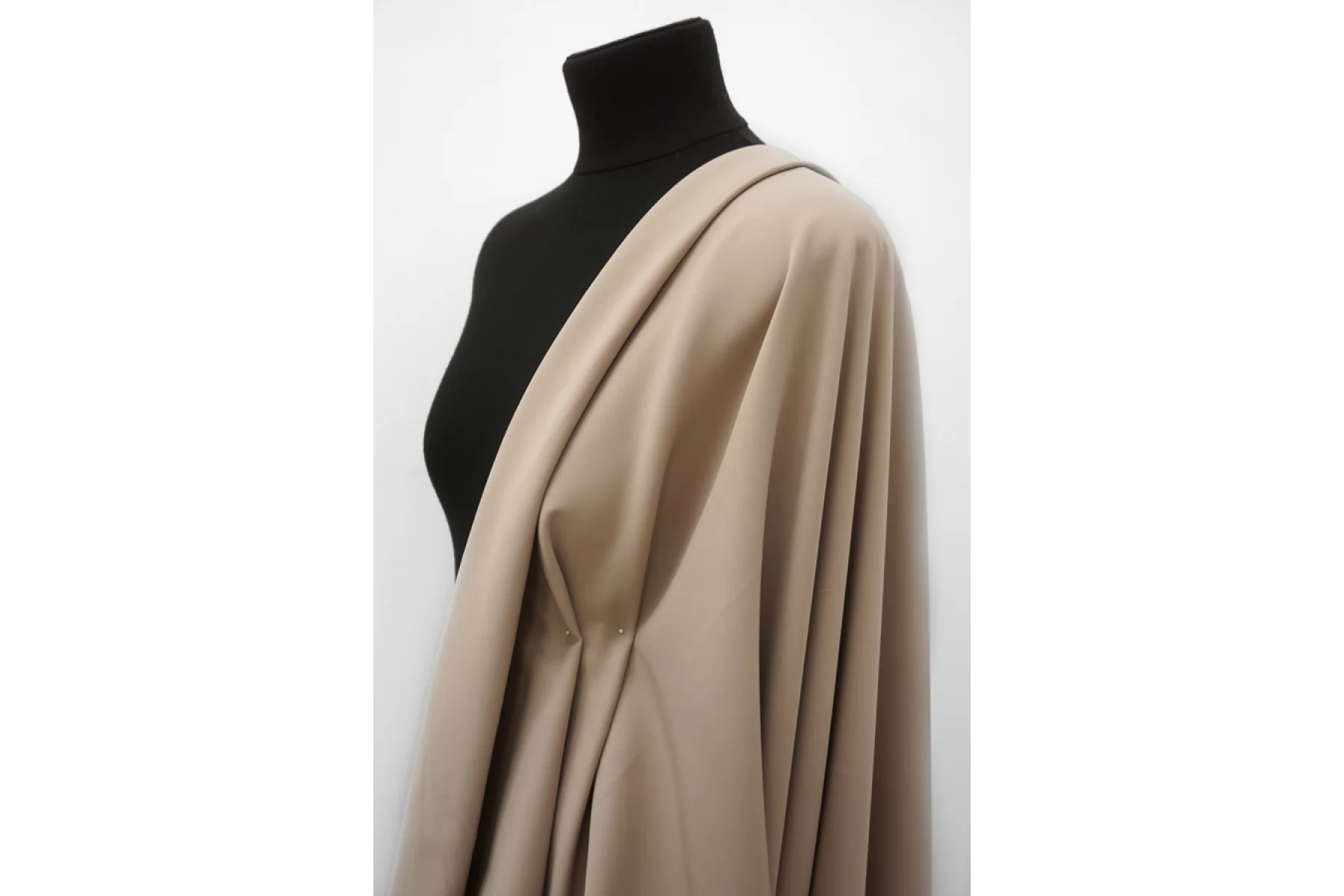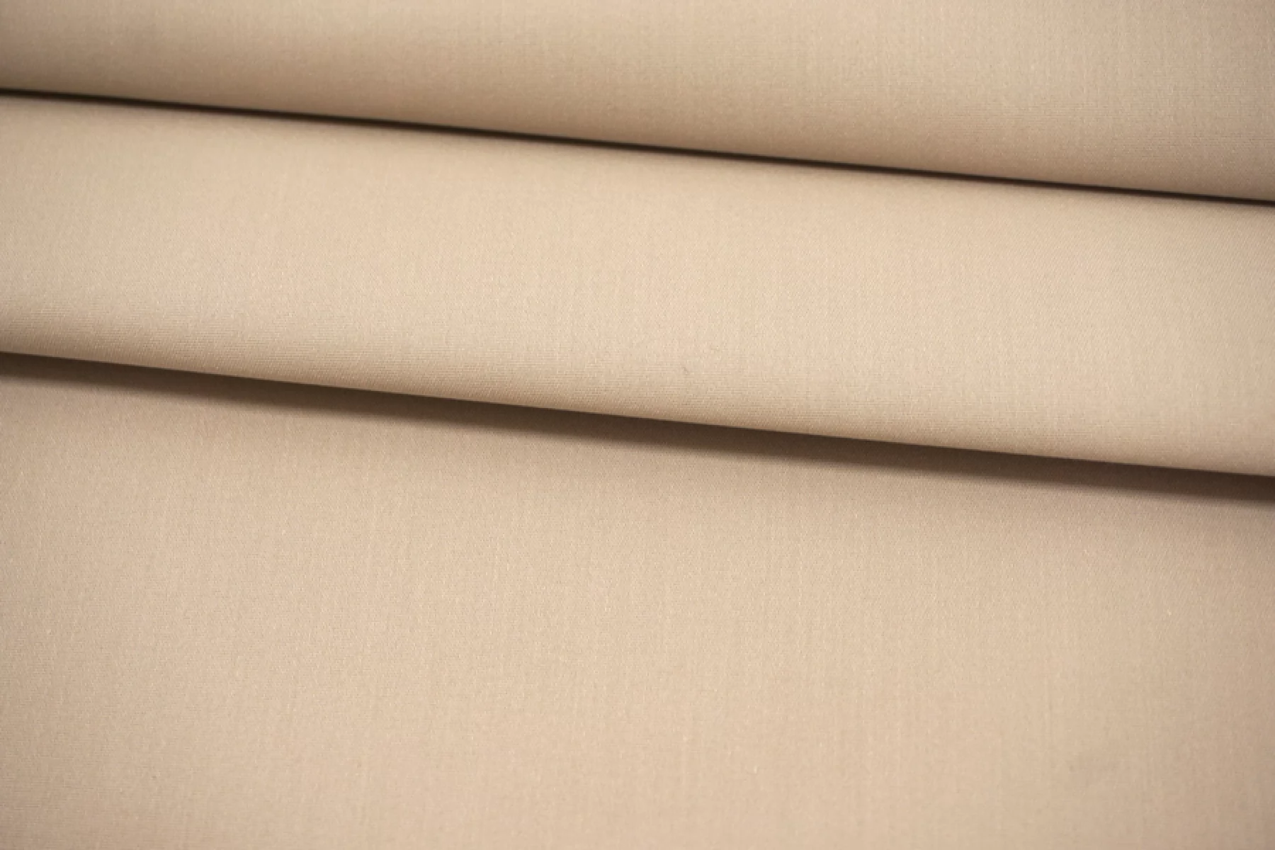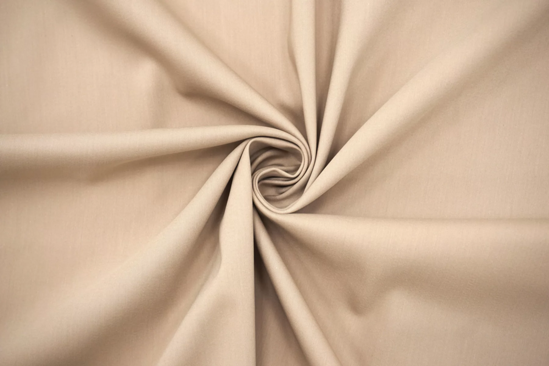 ЦЕНА УКАЗАНА ЗА ОТРЕЗ! (При заказе в метраже указывать 1) Итальянский костюмный хлопок-стрейч с добавлением полиэстера в бежевом оттенке. Держит форму но при этом пластичный, хорошо тянется, не просвечивает. Подойдет для пошива костюма, платья держащего форму, тренча, юбки.