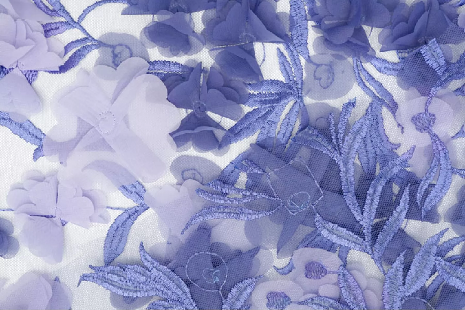 ОТРЕЗ 2,55 М Сетка с вышивкой и 3D-аппликацией Фиалковая (14) 17032429-1