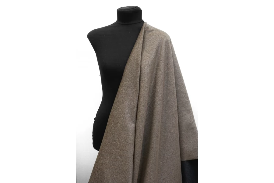 Пальтовая шерсть с альпакой в красивом дымчато-коричневом оттенке. Материал с коротким направленным ворсом, длина около 4 мм. Тактильно сухой, но мягкий и приятный, немного покалывает. Не тянется и не мнется. Не просвечивает. Хорошо держит форму. Отлично подойдет для пошива пальто любого кроя, а также современной вариации жакета. Уход за материалом деликатный.