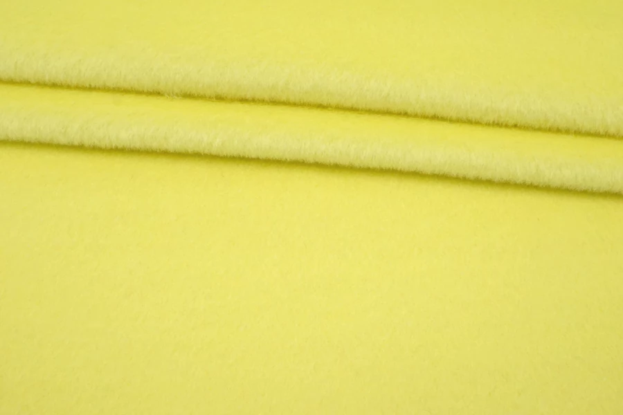 Шикарная пальтовая альпака в красивом лимонном оттенке (чуть высветленном из-за лоска материала). Материал с направленным ворсом, длина около 5 мм. Тактильно очень мягкий и приятный. С красивым благородным лоском. Не тянется и не мнется. Не просвечивает. Пластичный, умеренно держит форму. Отлично подойдет для пошива облегченного пальто любого кроя, а также современной вариации жакета. Уход за материалом деликатный.