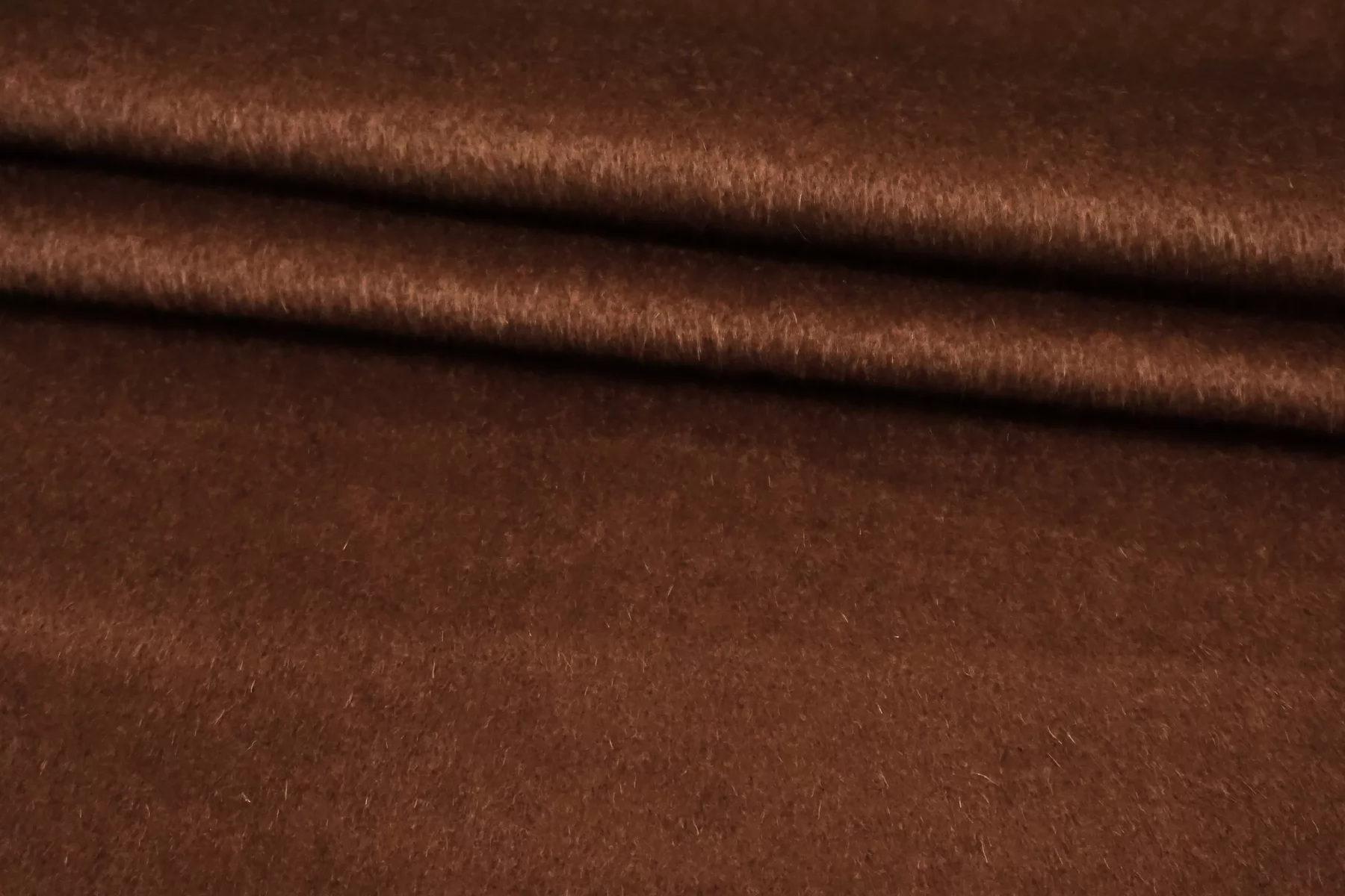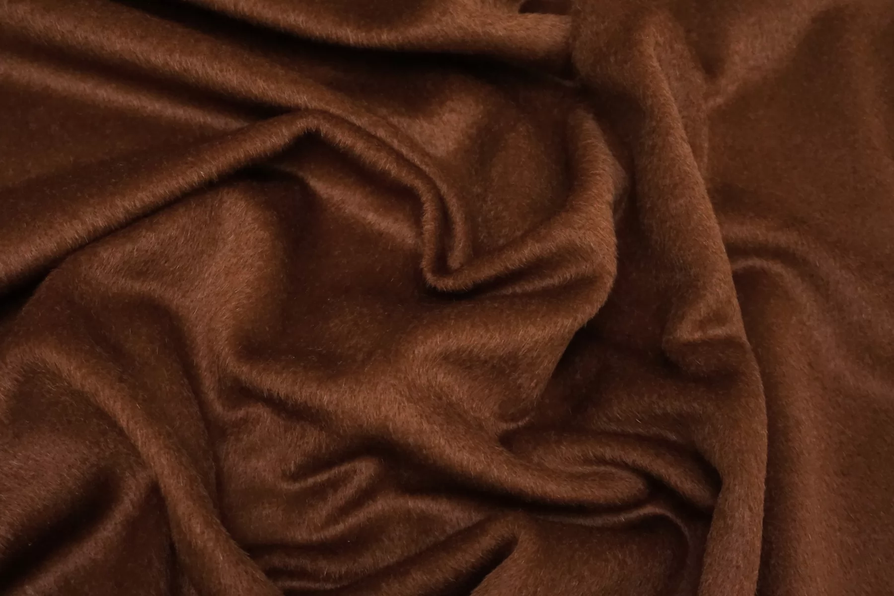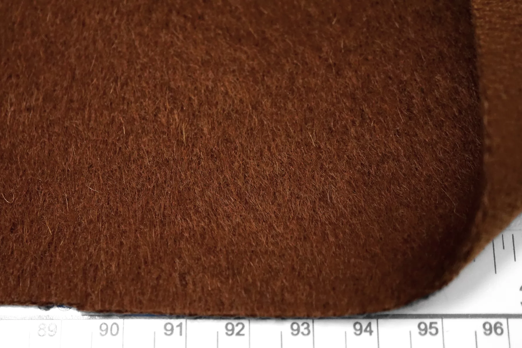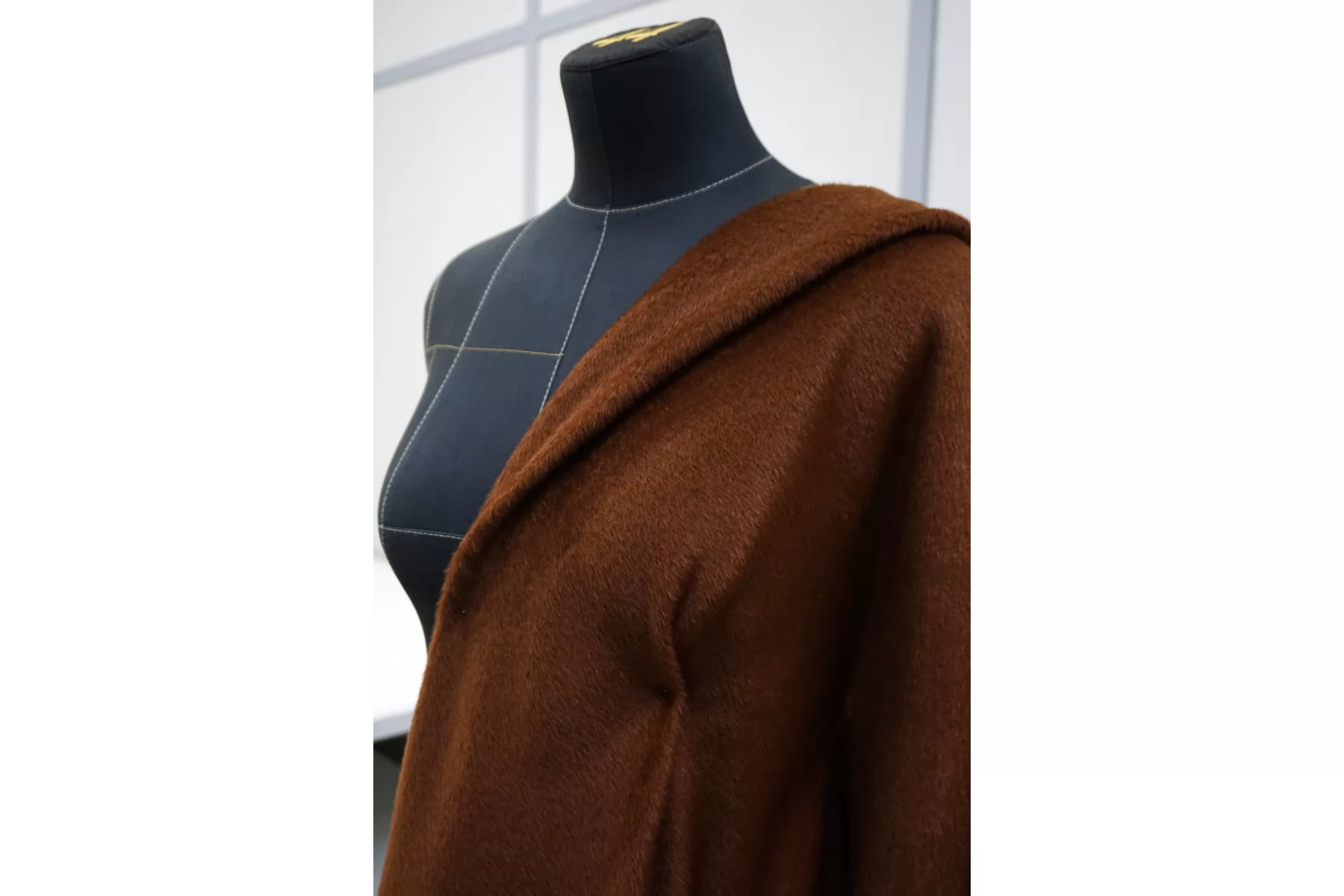 Редкая позиция: пальтовая шерсть из альпаки породы сури. Цвет очень красивый коричневый с желтинкой. Материал с направленным ворсом, длина около 4 мм. Тактильно мягкий и приятный. Не тянется и не мнется. Не просвечивает. Хорошо держит форму. Отлично подойдет для пошива пальто. Уход за материалом деликатный.