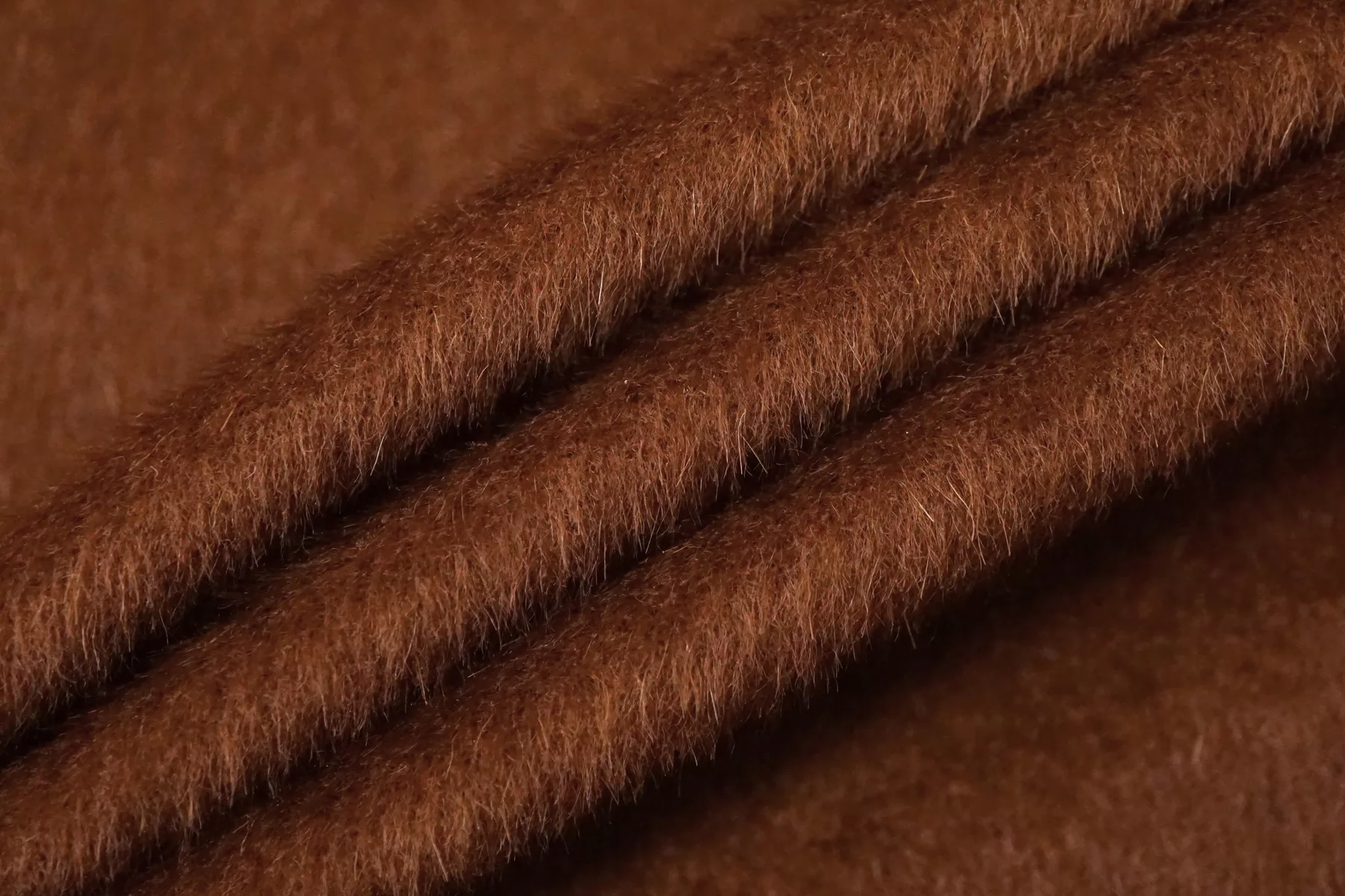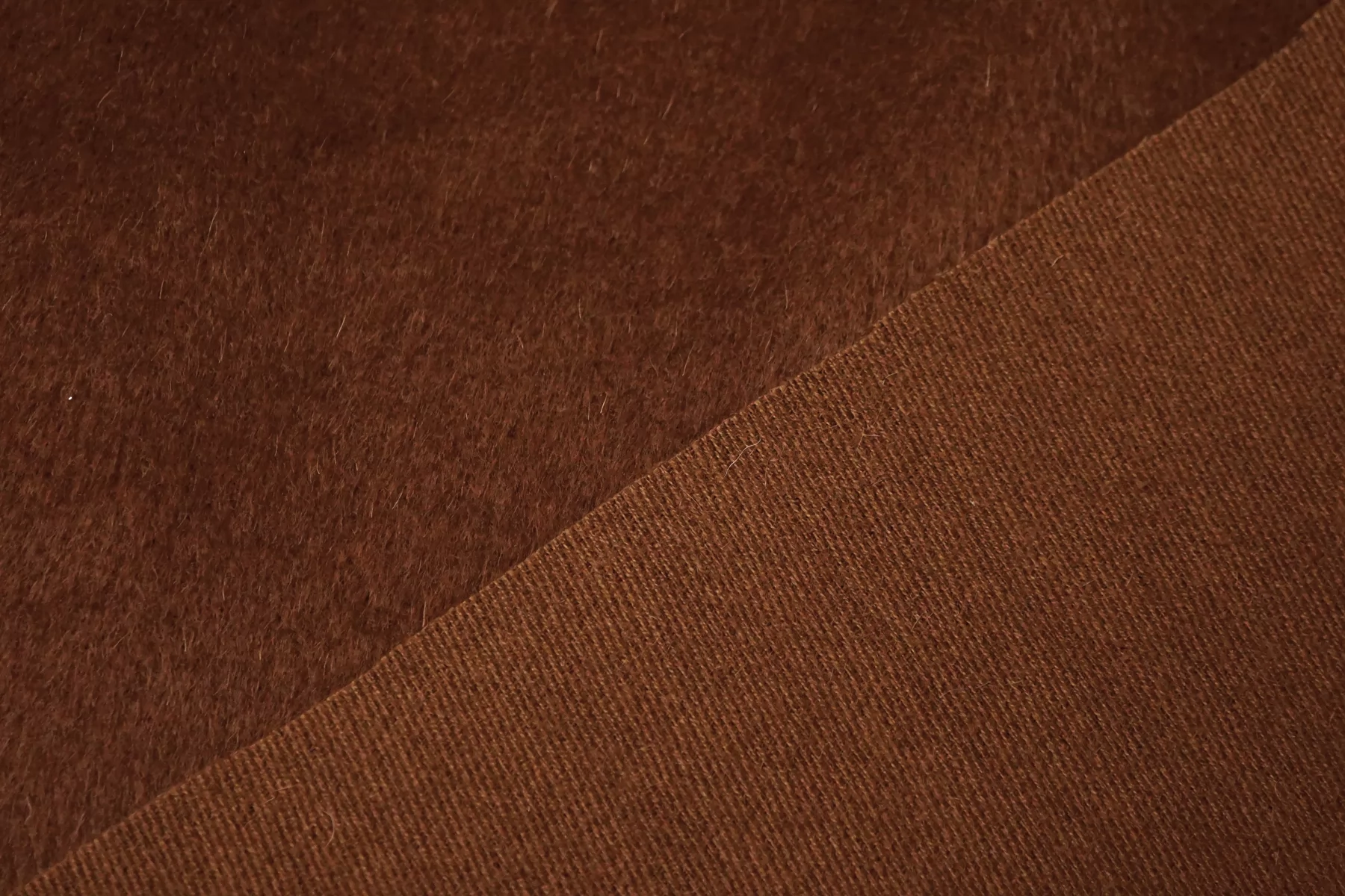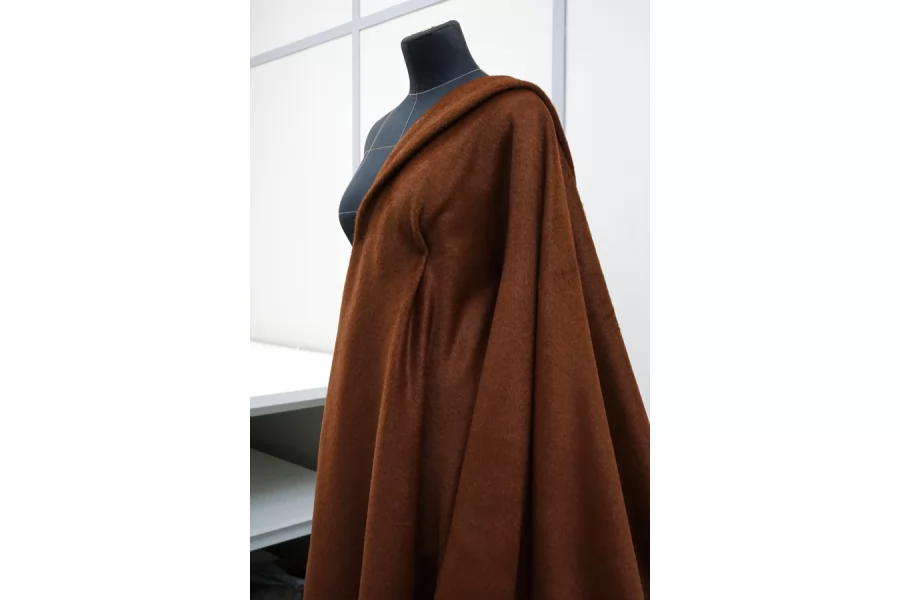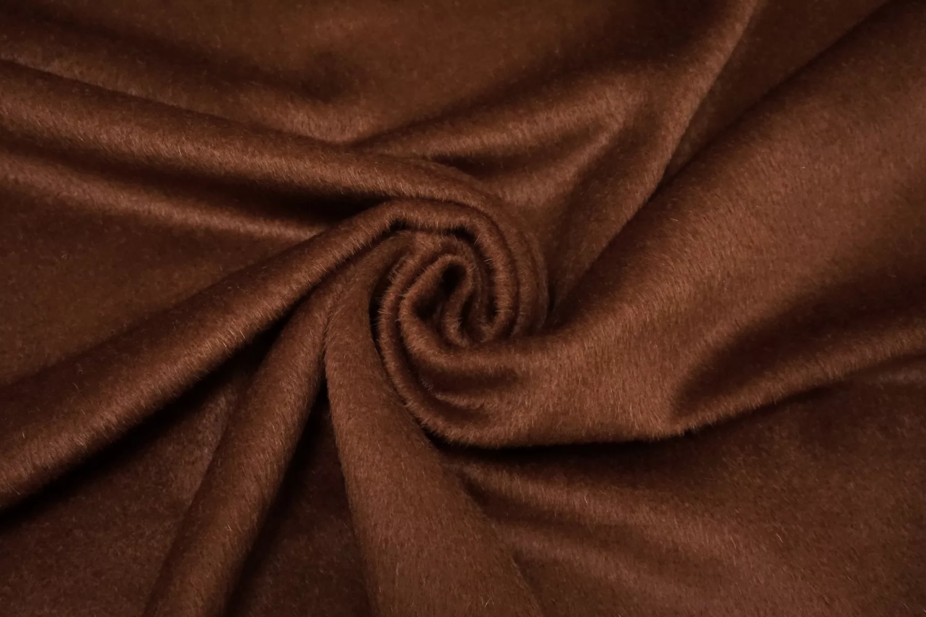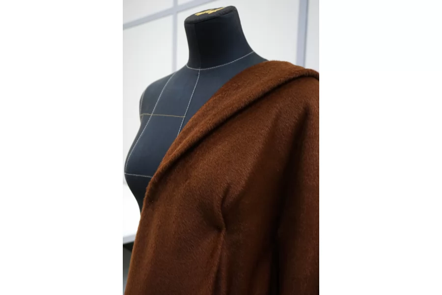 Редкая позиция: пальтовая шерсть из альпаки породы сури. Цвет очень красивый коричневый с желтинкой. Материал с направленным ворсом, длина около 4 мм. Тактильно мягкий и приятный. Не тянется и не мнется. Не просвечивает. Хорошо держит форму. Отлично подойдет для пошива пальто. Уход за материалом деликатный.