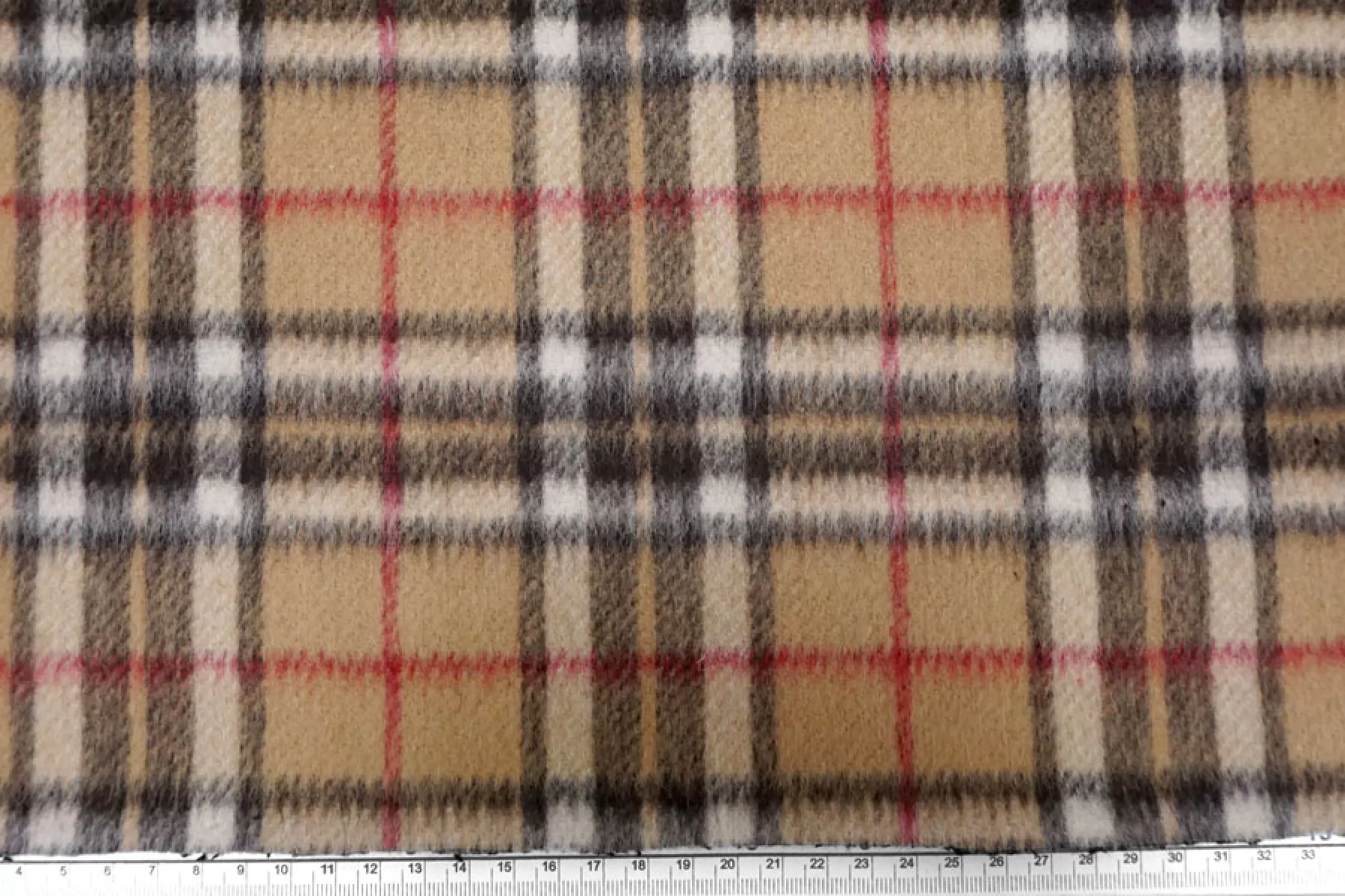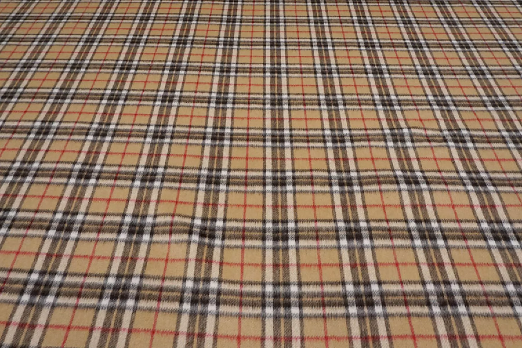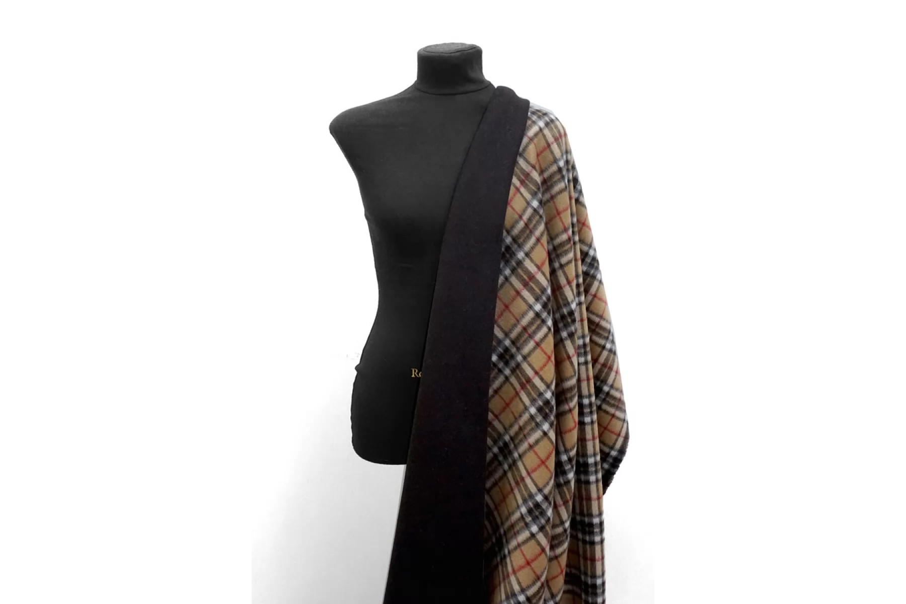 Пальтовая двухслойная шерсть Burberry в крупную бежевую клетку. Слои разделяются. Один слой с направленным ворсом, изнаночный слой в крупную диагональ с легким начесом. Материал тактильно приятный и мягкий, слегка суховатый. Чувствуется, что шерсть, но не колется. Не просвечивает - сам плотненький и толстенький. Немного тянется плетение. Хорошо держит форму. Подойдет для пошива пальто. Уход деликатный.
