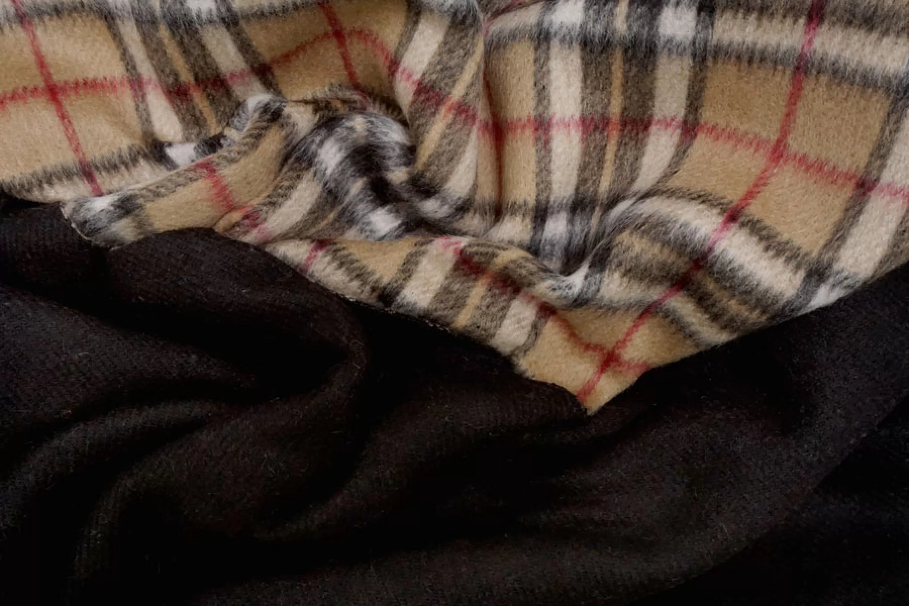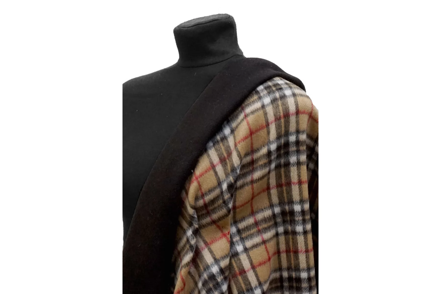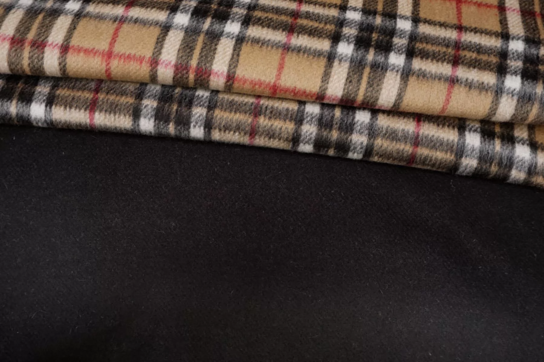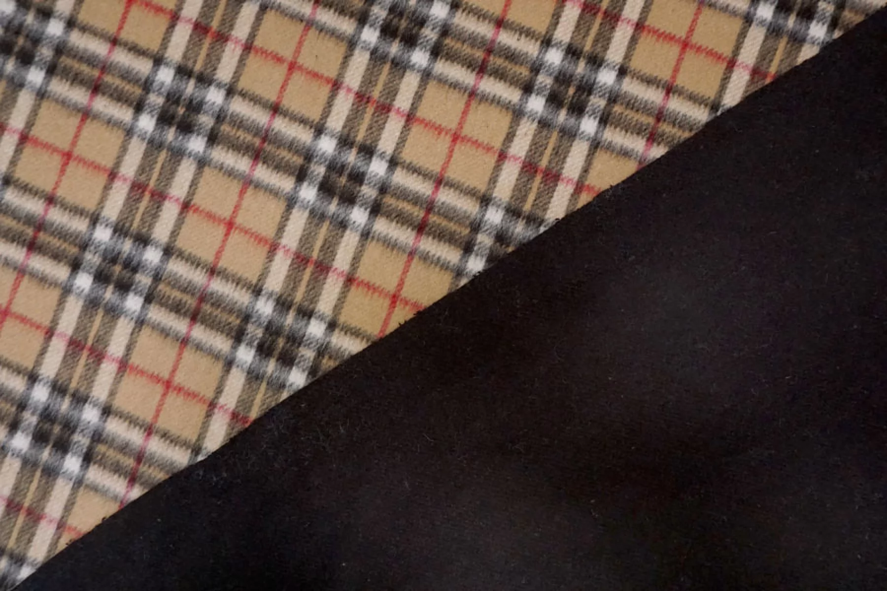 Пальтовая двухслойная шерсть Burberry в крупную бежевую клетку. Слои разделяются. Один слой с направленным ворсом, изнаночный слой в крупную диагональ с легким начесом. Материал тактильно приятный и мягкий, слегка суховатый. Чувствуется, что шерсть, но не колется. Не просвечивает - сам плотненький и толстенький. Немного тянется плетение. Хорошо держит форму. Подойдет для пошива пальто. Уход деликатный.