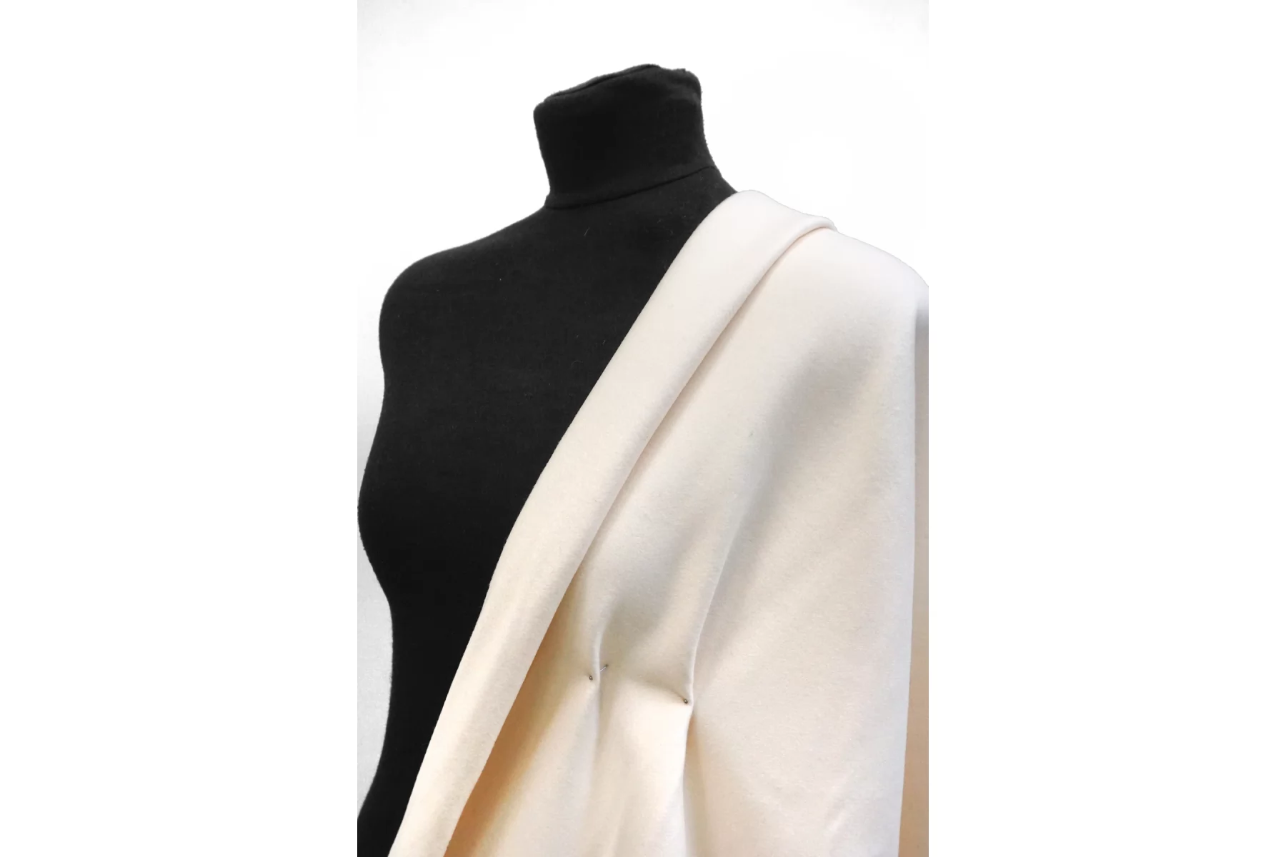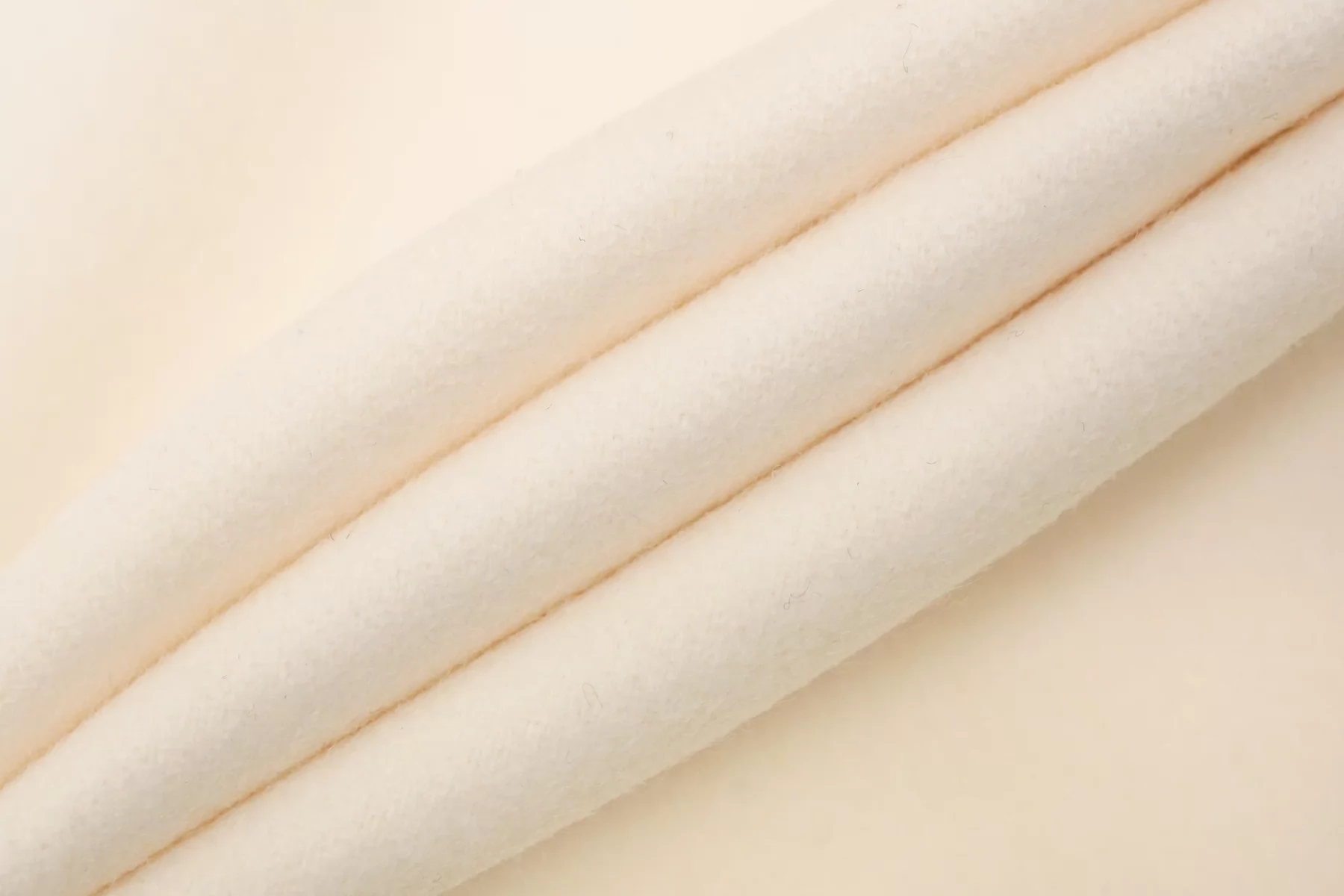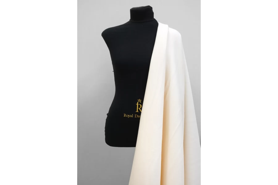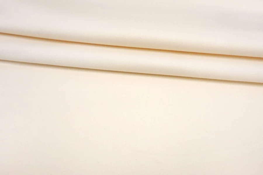 Шикарная двусторонняя дабл шерсть качества virgin пальтовой плотности с добавлением кашемира в нежном оттенке пломбир. Слои сшиты между собой, разделяются. Не ярко выраженный, прижатый ворс, с направленностью. Очень мягкий, нежный и приятный наощупь, немного суховатый. Не колется. Тонкий, примерно 1,5-2 мм толщиной. Пластичный, форму держит, не мнется. Чуть-чуть тянется плетение. Работать можно на обе стороны. Шьем рубашки, теплые жакеты и облегченные пальто. Уход - деликатный.