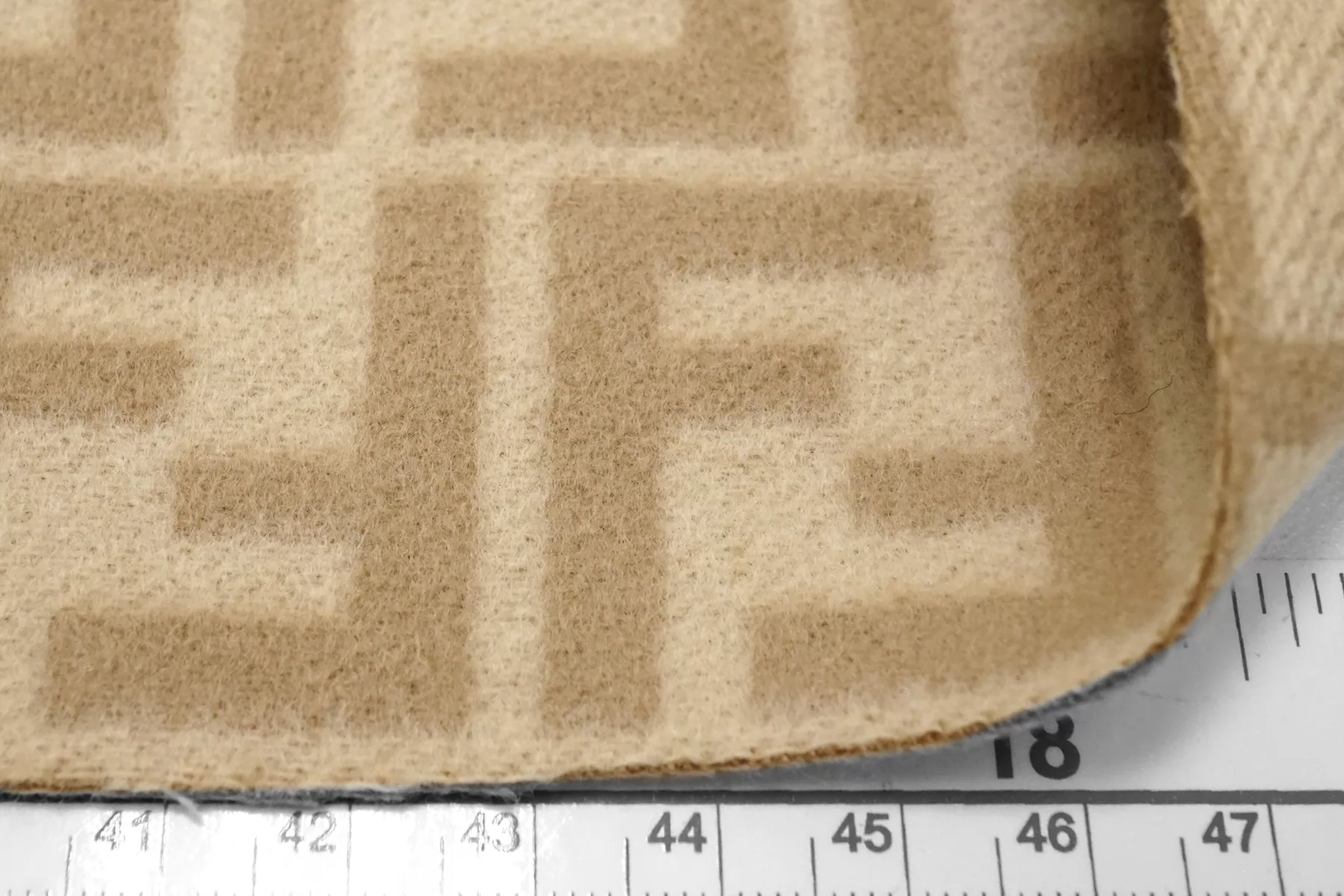 Шикарная пальтовая шерсть от Fendi с монограммой бренда, в бежевых тонах, с одной стороны есть лёгкая ворсистость, с другой не так выражена. Приятная тактильно. Не тянется. Форму держит. Не мнется. Отличный вариант для пошива пальто. Уход деликатный.