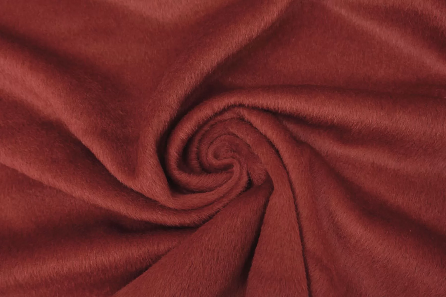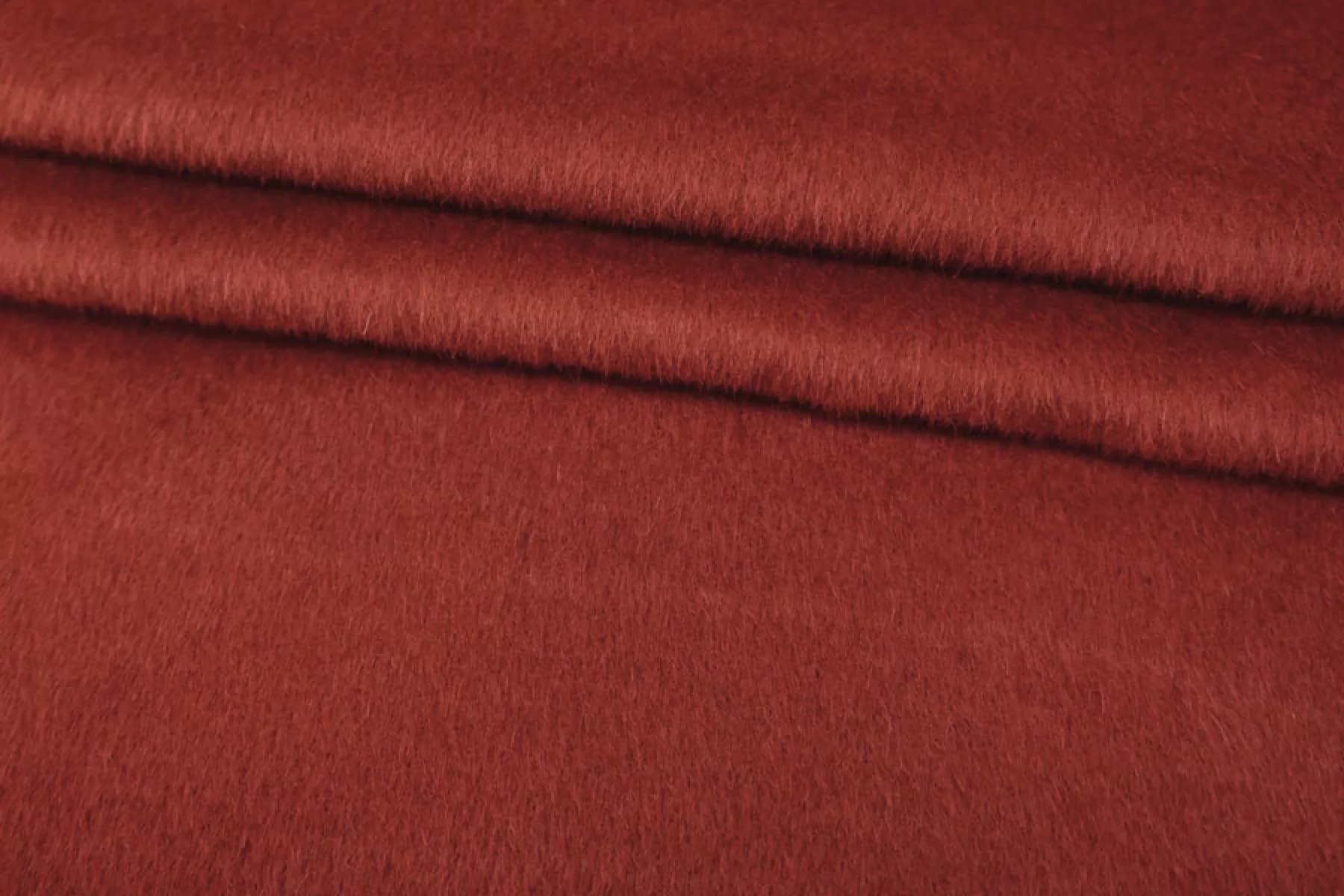 Пальтовая шерсть с альпакой шикарного качества в очень интересном и благородном брусничном оттенке. Материал с направленным ворсом - длина около 5 мм. Красиво выглядит в сгибах и складках, с красивым лоском. Немножко покалывает. НЕ тянется Плотненький и толстенький примерно 2мм толщиной. Подойдет как на классические модели пальто, халата, двубортного пальто, так и для современной вариации пальто-рубашки. Уход за материалом деликатный. Рекомендуется химчистка.