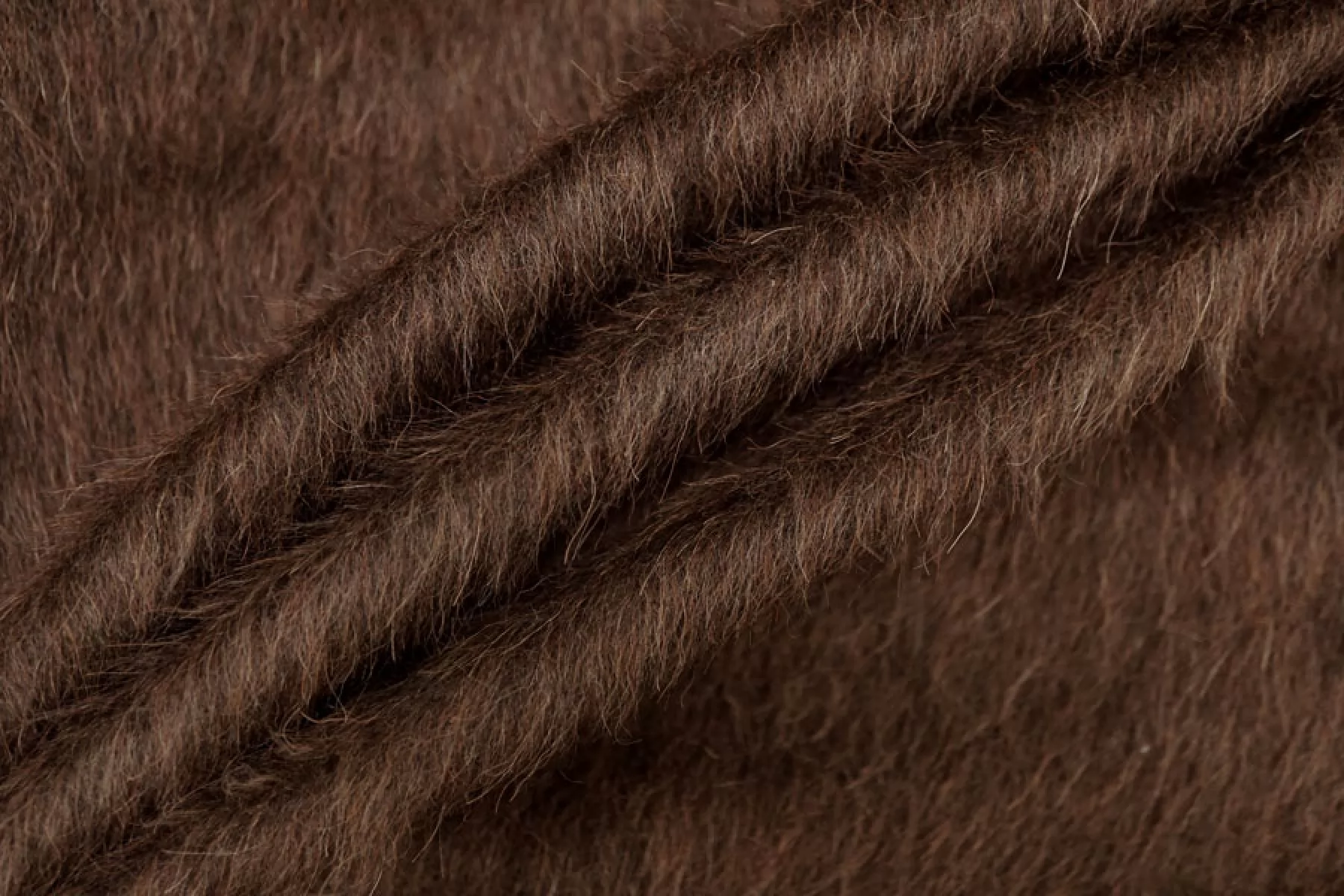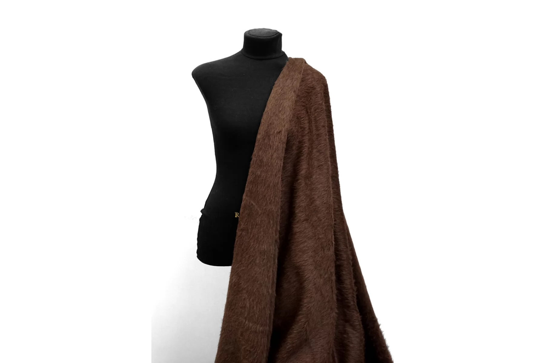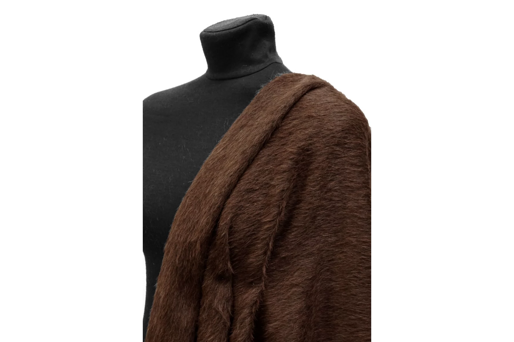 Пальтовая шерсть с альпакой в актуальном коричневом оттенке. Материал с направленным ворсом, длина около 10 мм. Тактильно сухой, но мягкий и приятный. Немного покалывает. Не тянется и не мнется. Не просвечивает. Хорошо держит форму. Отлично подойдет для пошива пальто любого кроя, а также современной вариации жакета. Уход за материалом деликатный.