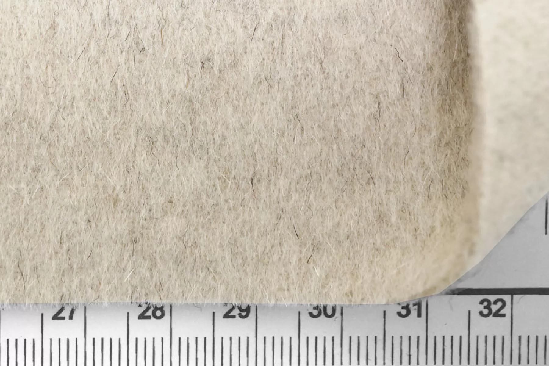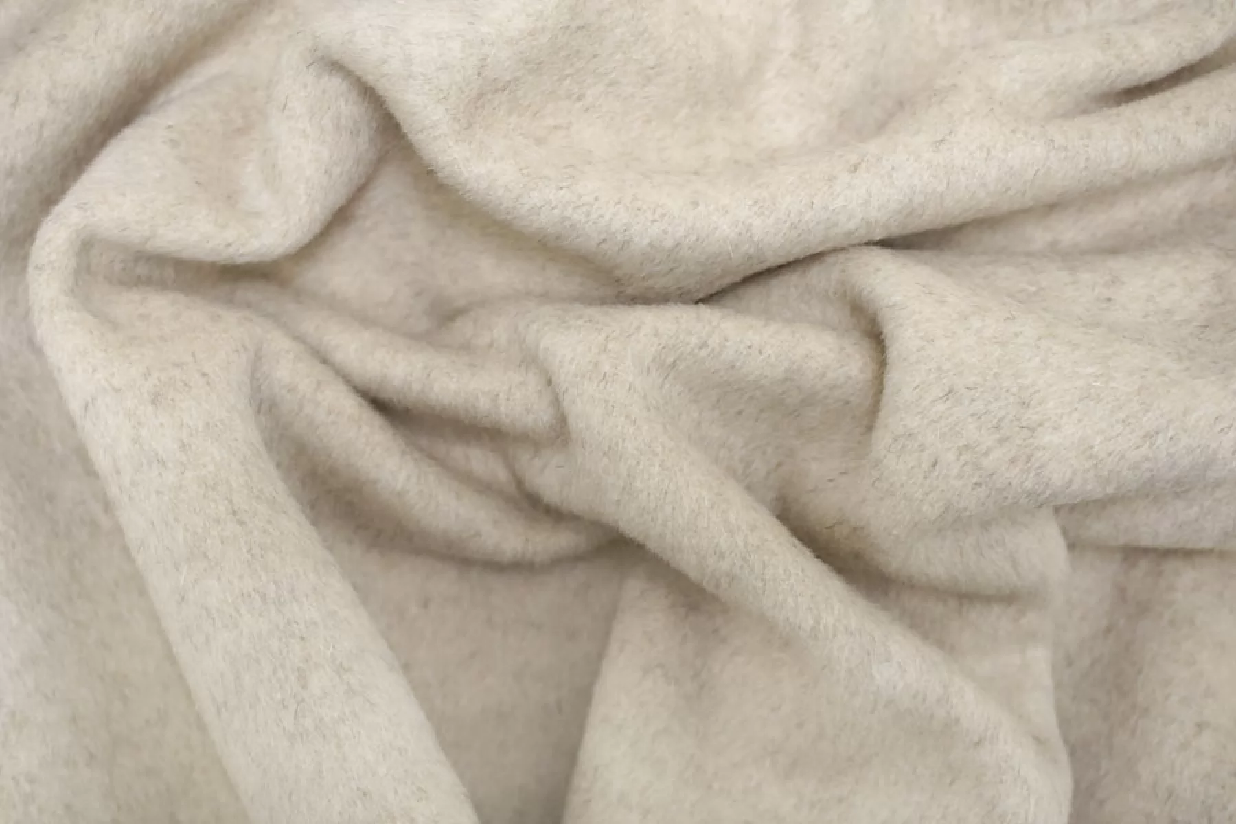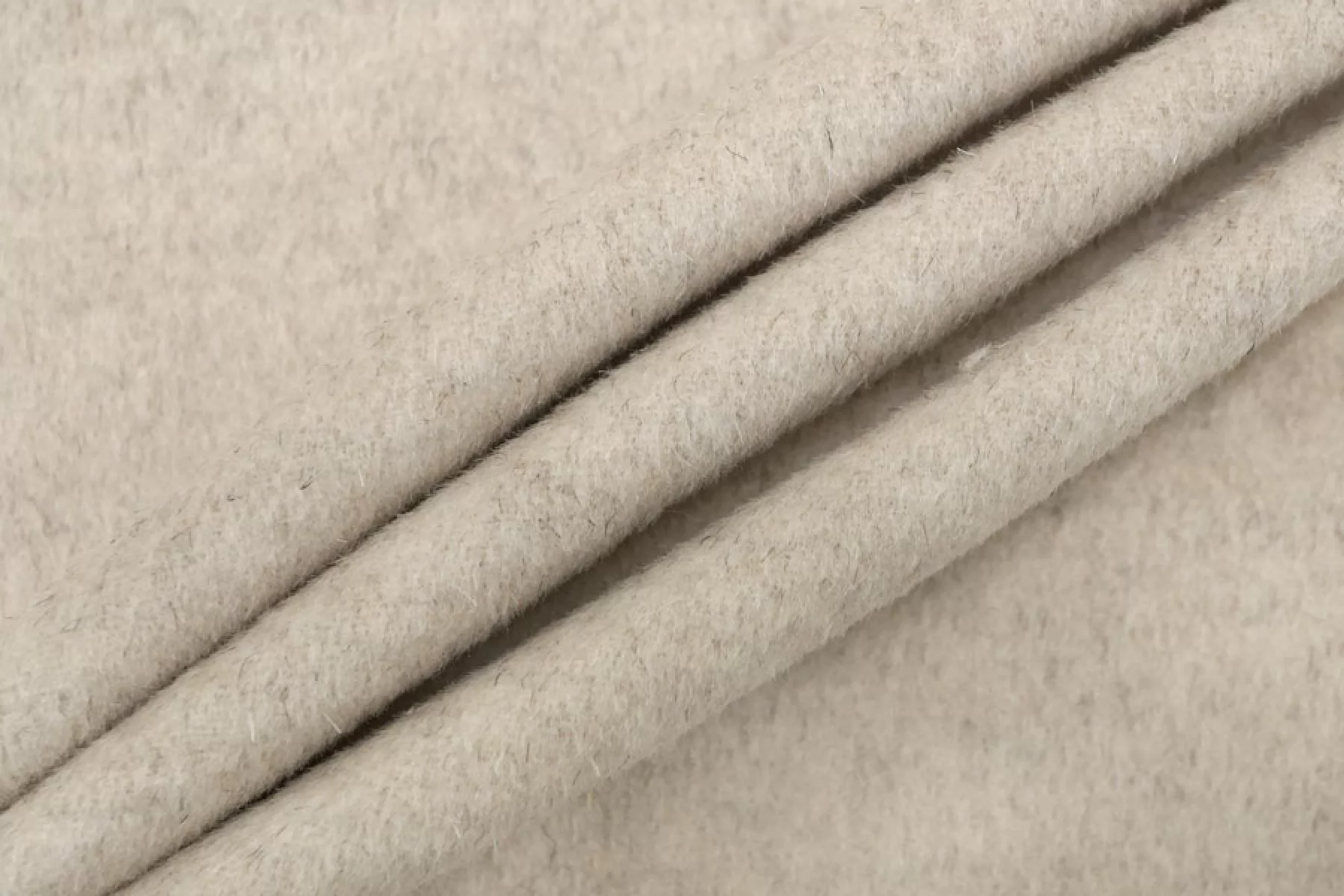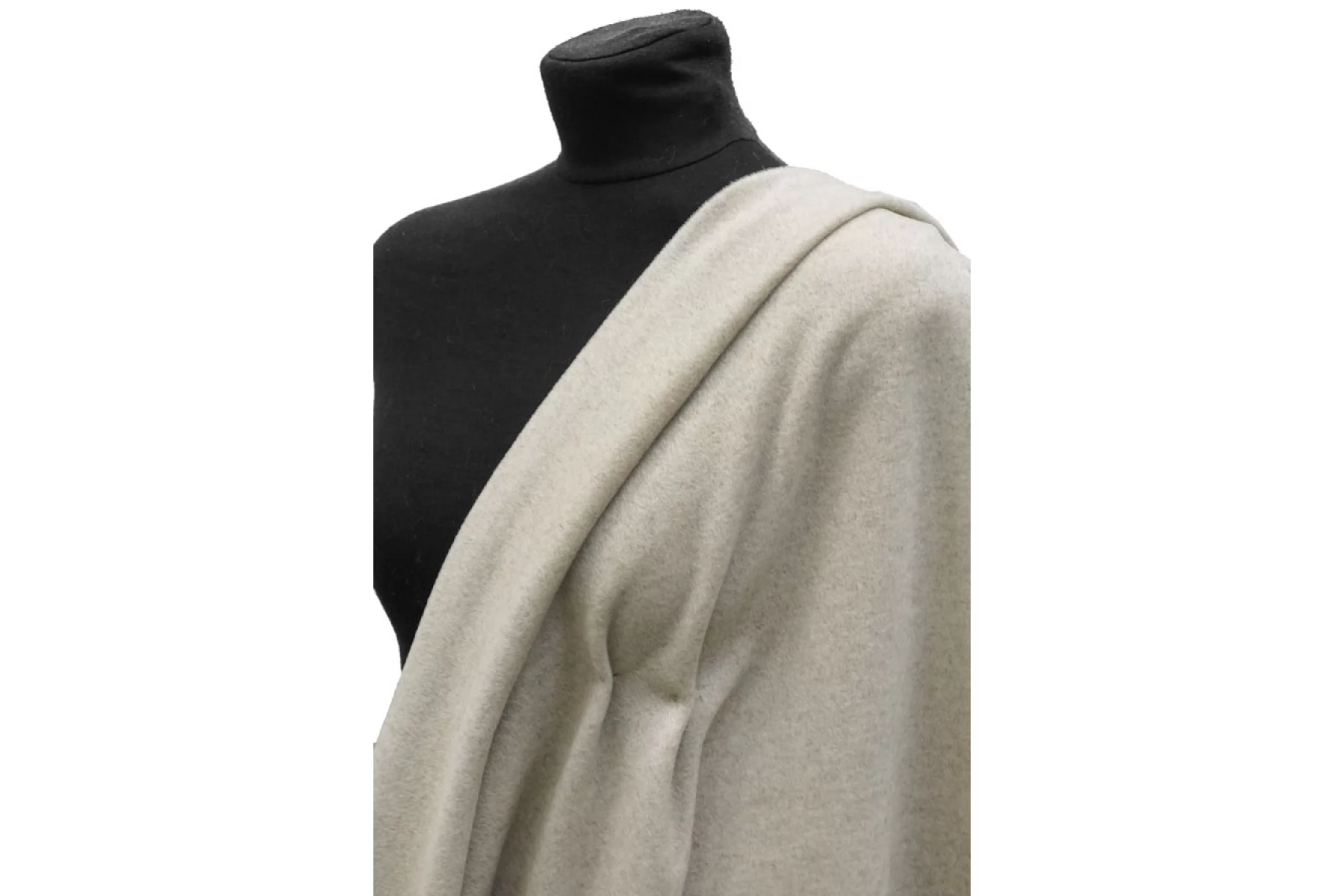 Пальтовая шерсть с альпакой в красивом светло-бежевом оттенке. Материал с направленным коротким ворсом. Тактильно сухой, но мягкий и приятный. Не тянется и не мнется. Не просвечивает. Хорошо держит форму. Отлично подойдет для пошива пальто любого кроя, а также современной вариации жакета. Уход за материалом деликатный.