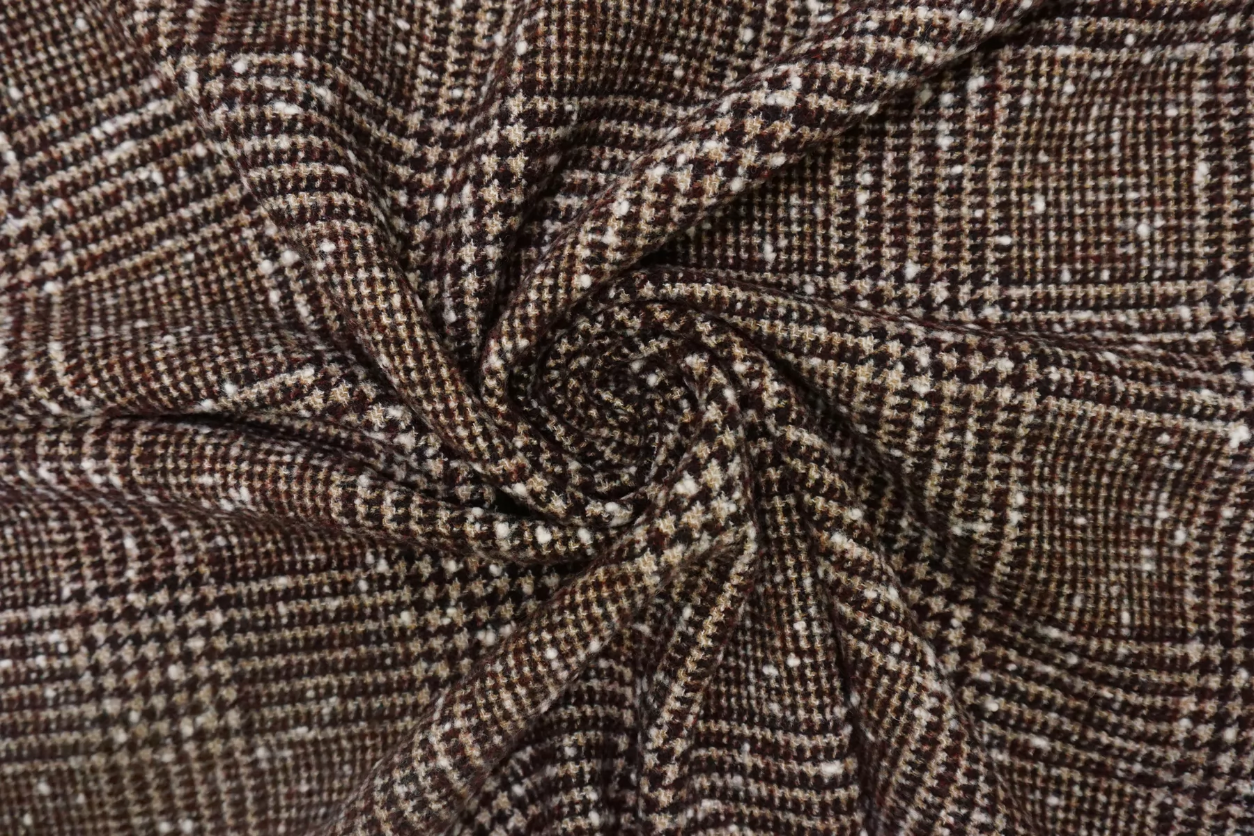 Пальтовая шерсть с альпакой Винно-чёрно-бежевая клетка-гленчек BL H56 EE60 10022652