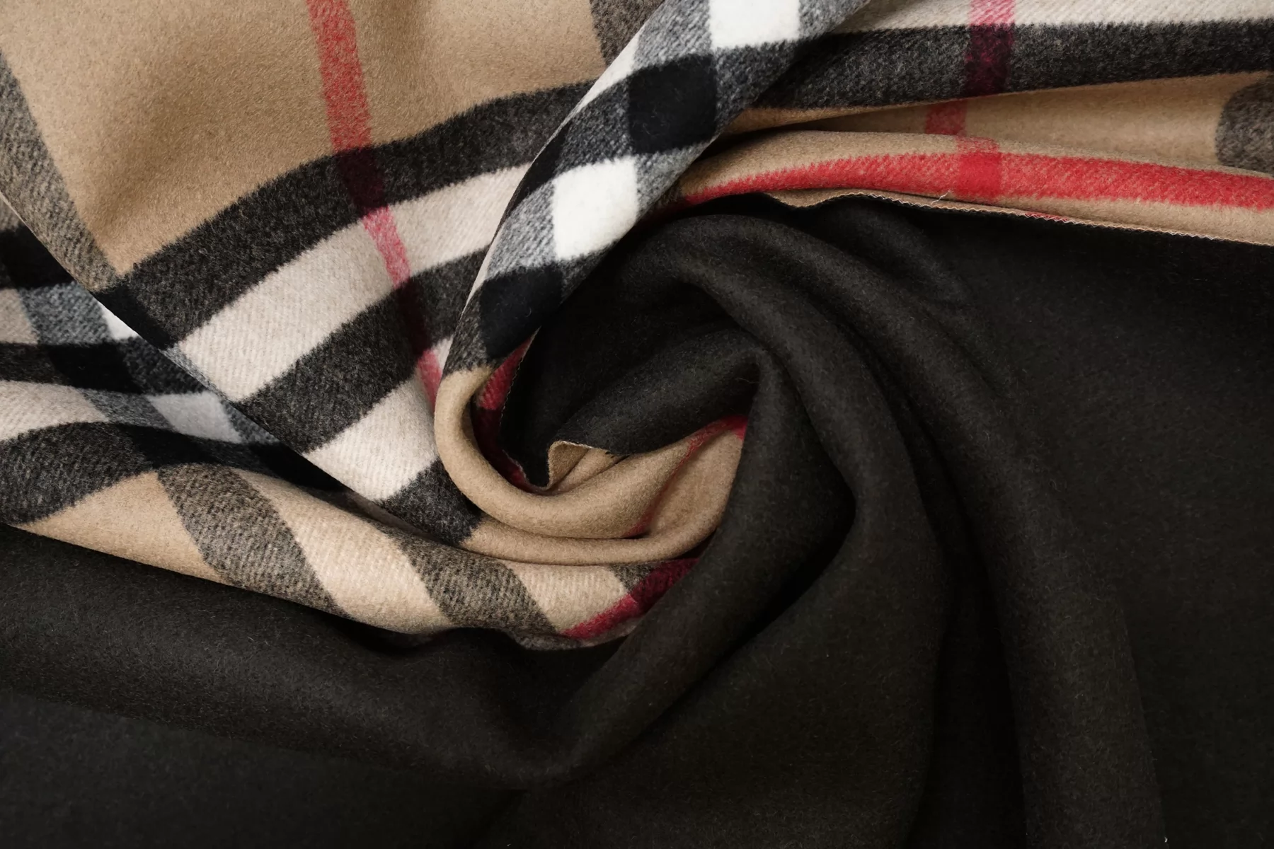 Пальтовая шерсть с кашемиром двусторонняя двухслойная дабл BURBERRY Крупная клетка с тёмно-коричневой стороной FRM H56 BB60 17122511