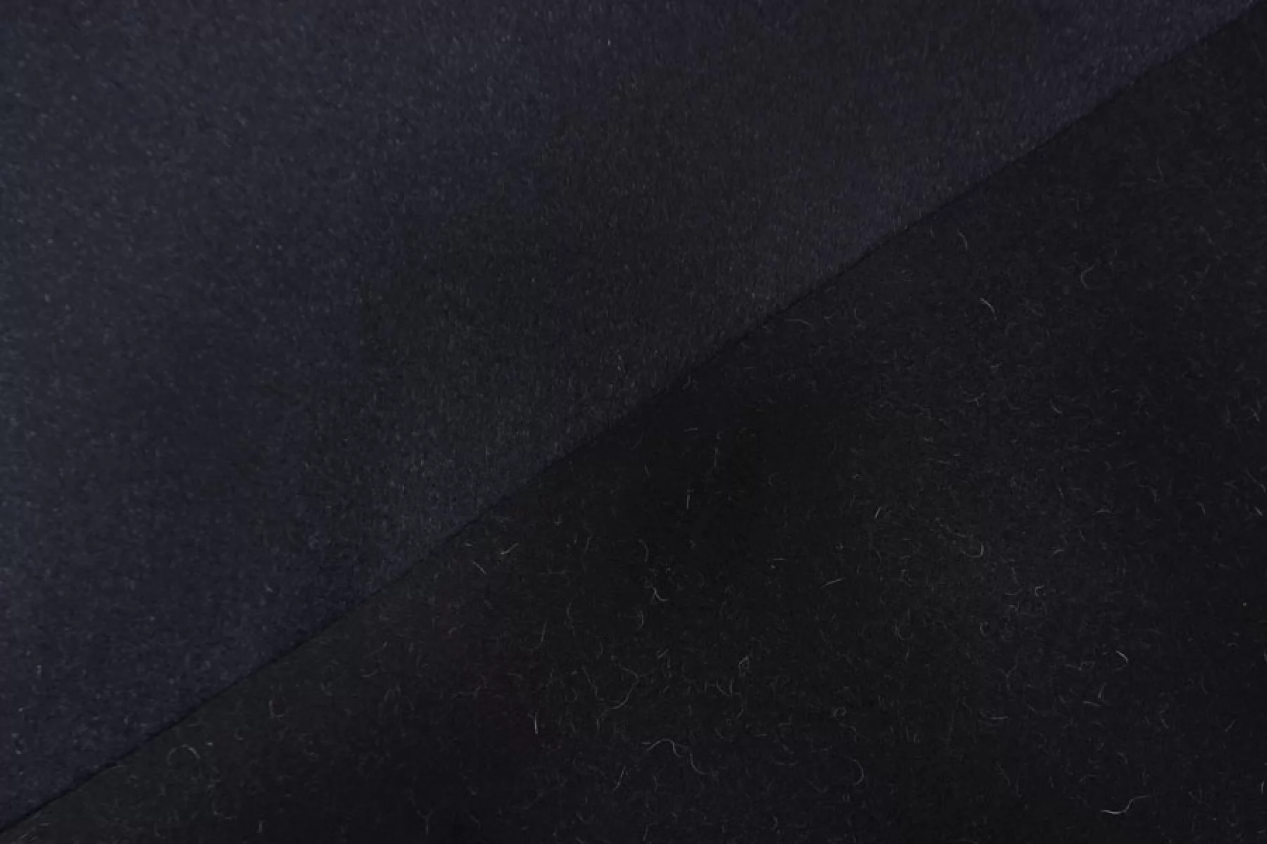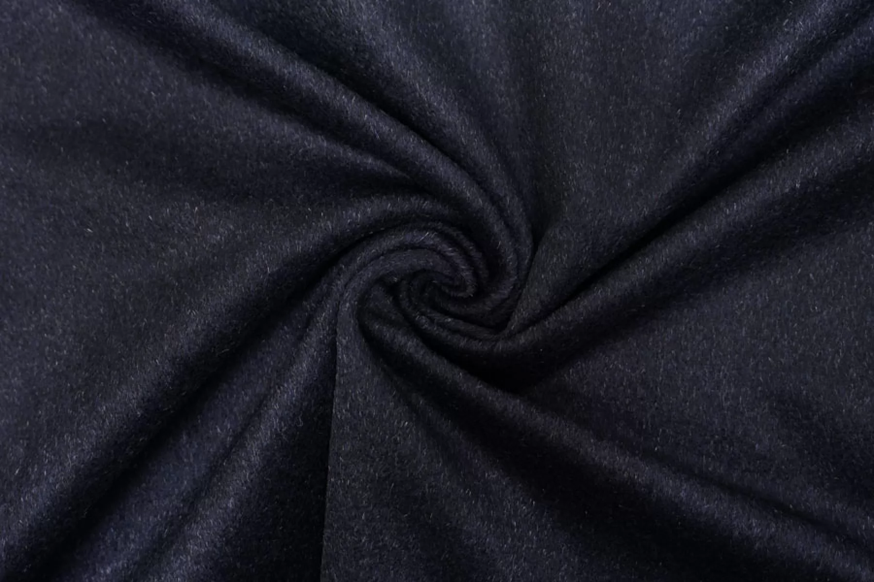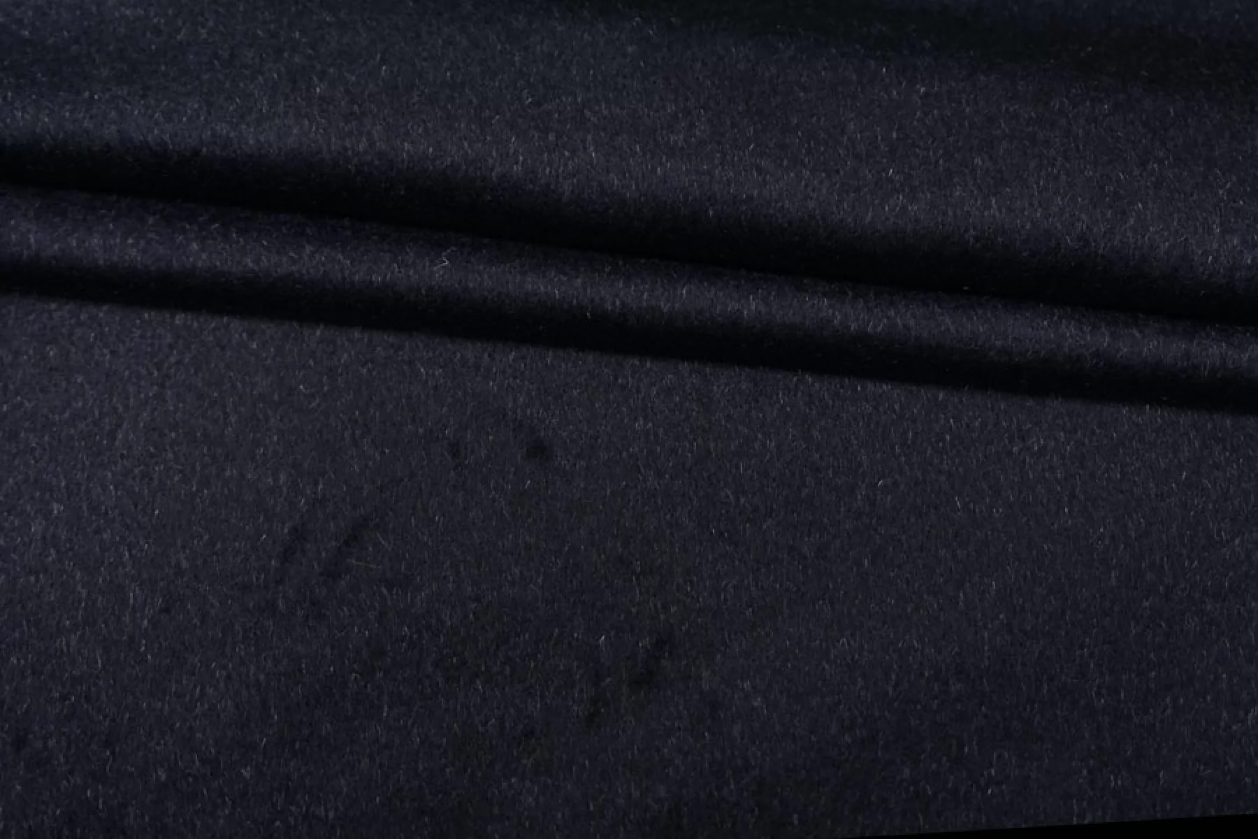 Прекрасная итальянская пальтовая шерсть с кашемиром темно-синего цвета. Примерно 1,5 мм, пластичная, не просвечивает. С коротким направленным ворсом. Наощупь суховатая, колется. Форму держит. Сминается, но восстанавливается. Подойдет для пошива пальто. Уход деликатный.