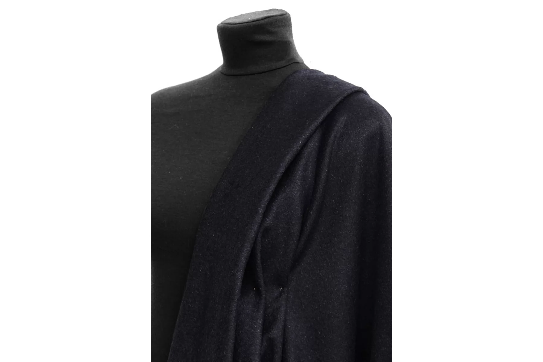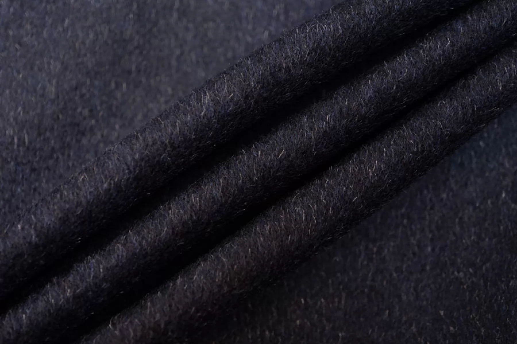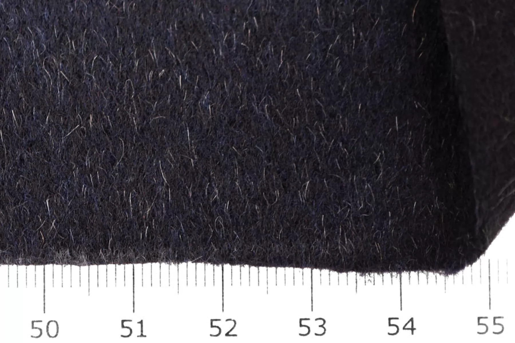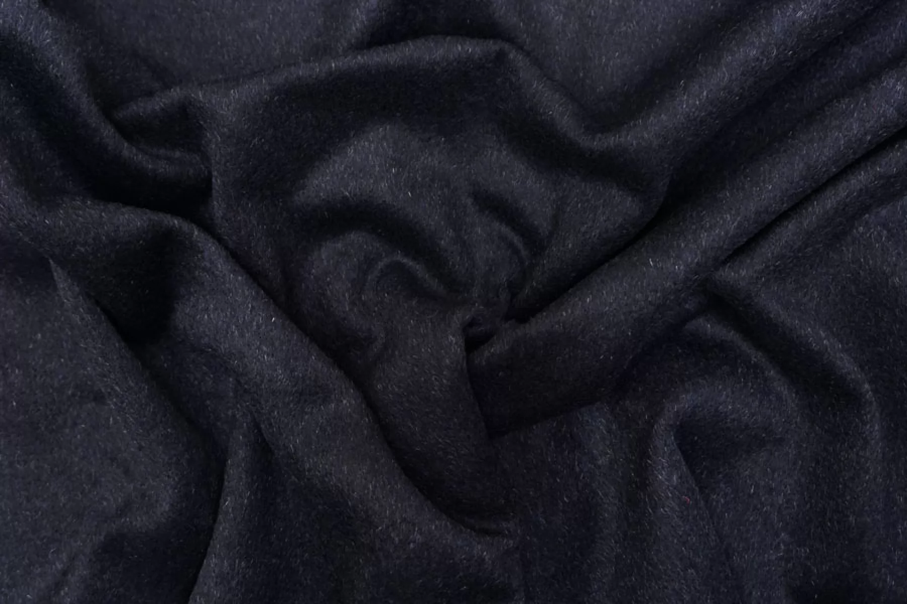 Прекрасная итальянская пальтовая шерсть с кашемиром темно-синего цвета. Примерно 1,5 мм, пластичная, не просвечивает. С коротким направленным ворсом. Наощупь суховатая, колется. Форму держит. Сминается, но восстанавливается. Подойдет для пошива пальто. Уход деликатный.