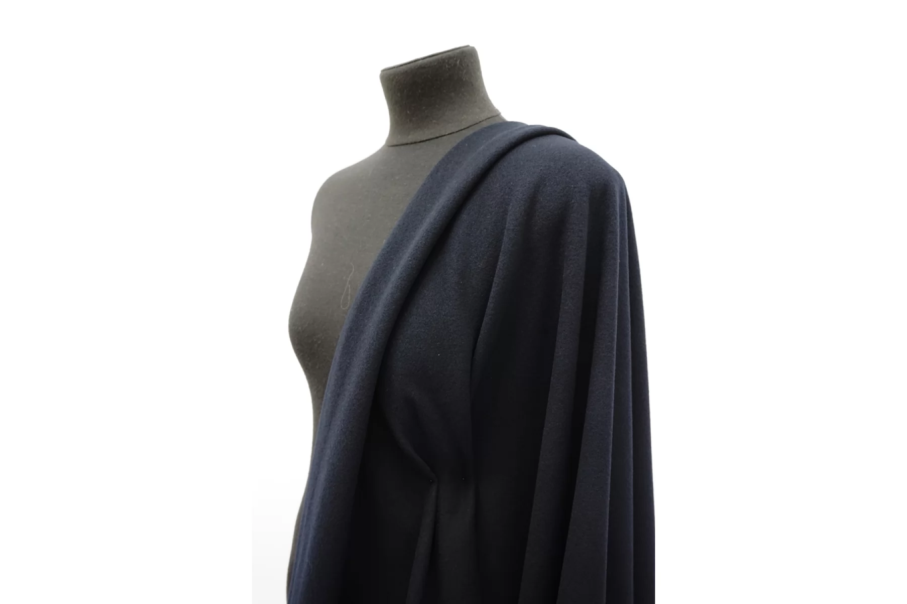 Пальтовая шерсть темно-синего цвета, достаточно тонкая - около 1 мм в толщину, поверхность велюровая, тактильно приятная. Подойдет для изделий зимнего сезона - пальто-халат, классическое пальто, пальто-рубашка - для женского и мужского гардероба.